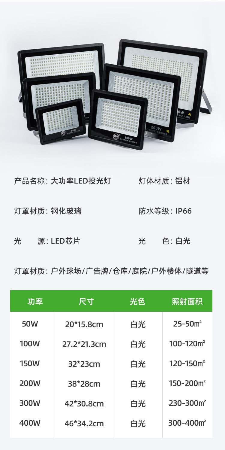 Proyector LED Yaming de fábrica, IP66, aluminio, para publicidad exterior, de potencia completa.