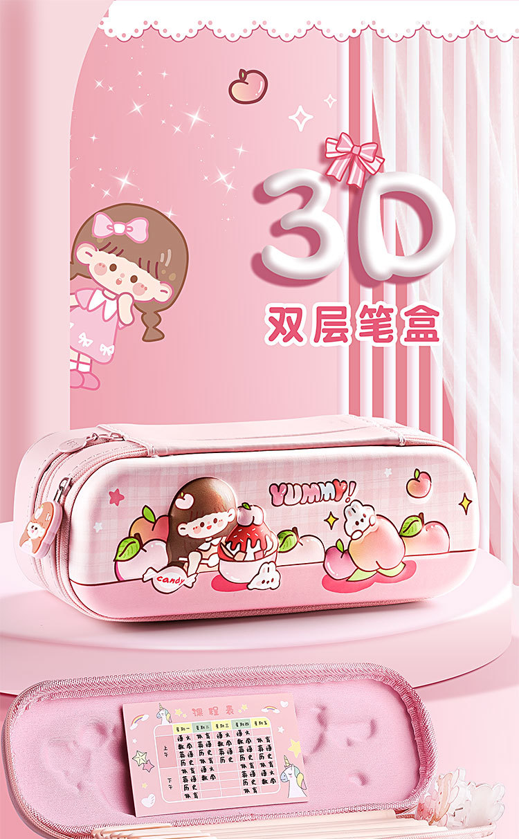 Super lindo 3D de doble capa EVA caja de lápices de gran capacidad patrón de dibujos animados caja de lápices de alta apariencia para los estudiantes de la escuela primaria
