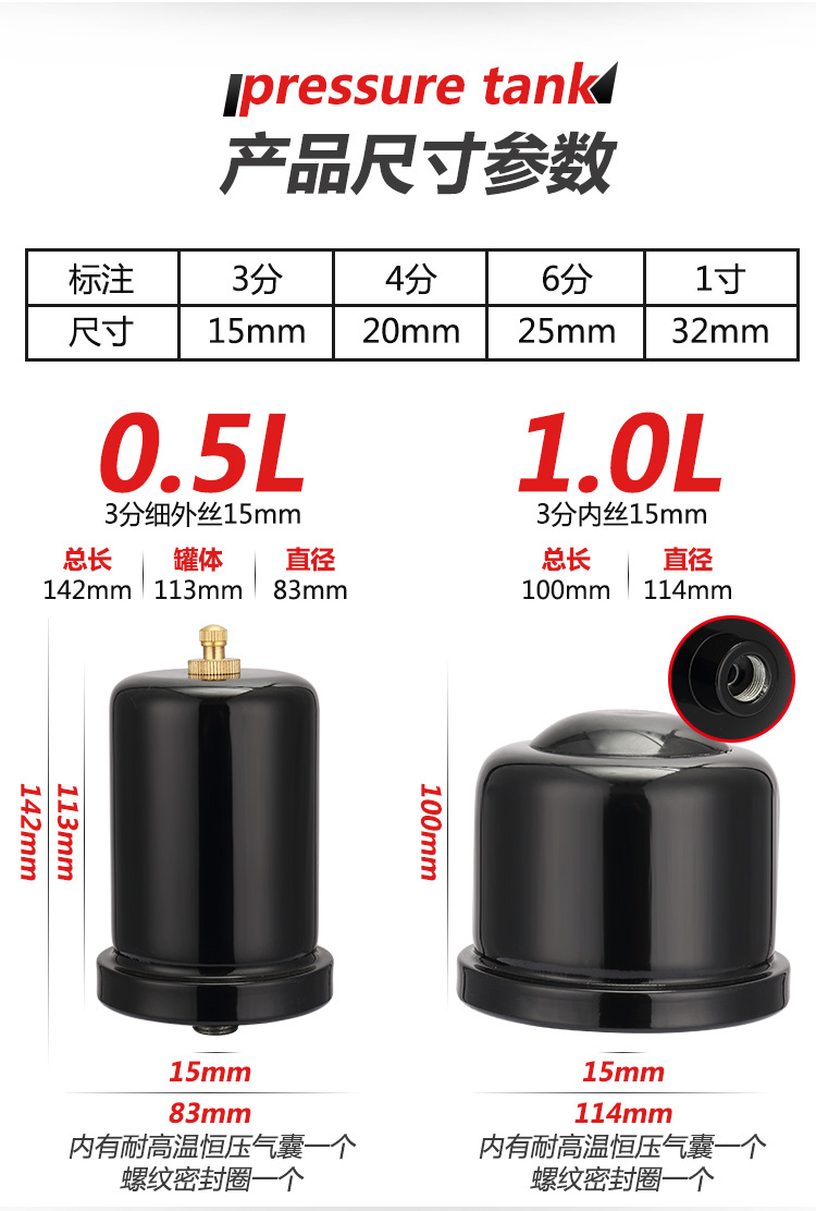 Bomba autocebante Tanque de presión Bomba de refuerzo automática doméstica 1L2L5L19L24L Tanque de presión Tanque de almacenamiento de gas Bomba de agua Bolsa de gas