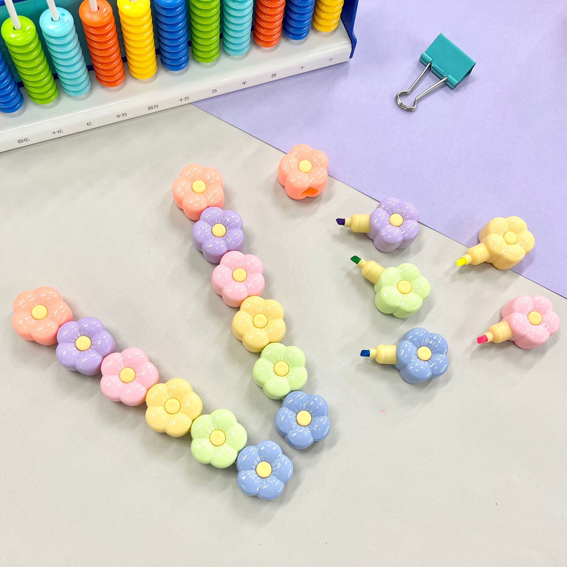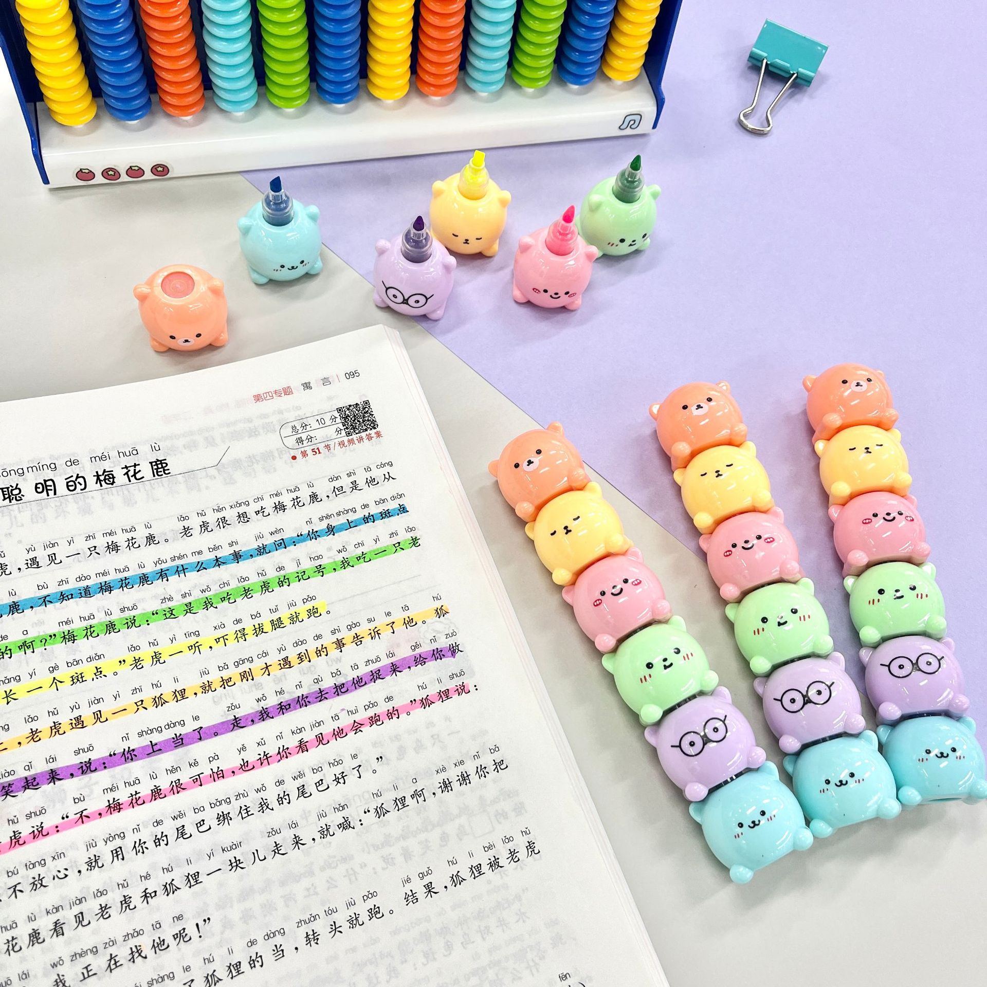 Creativo resaltador de dibujos animados 6 colores traje multi-Pila de flor forma marcador lindo gato pata impresión amor mano cuenta pluma