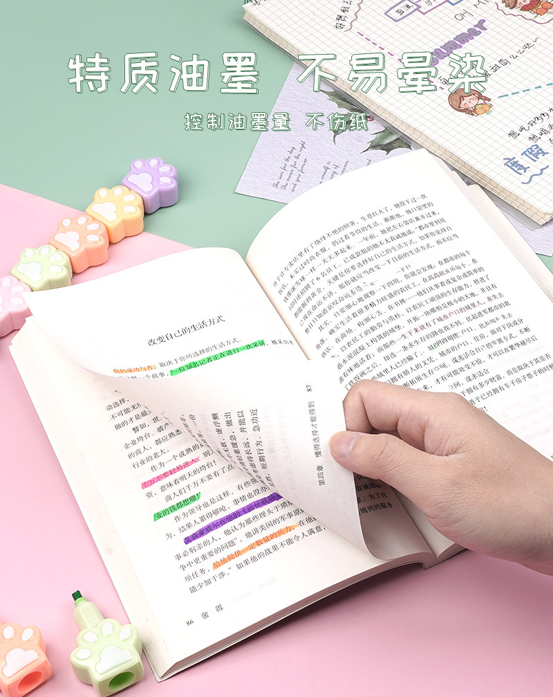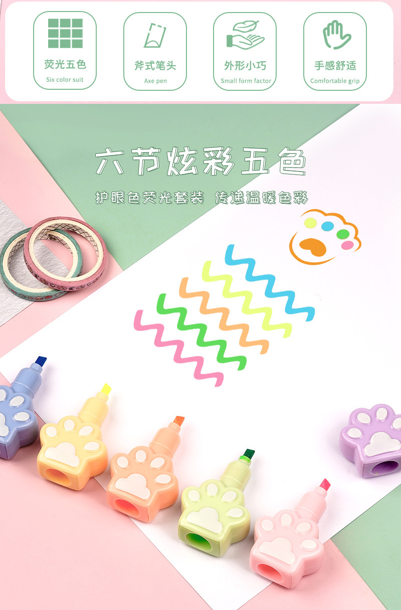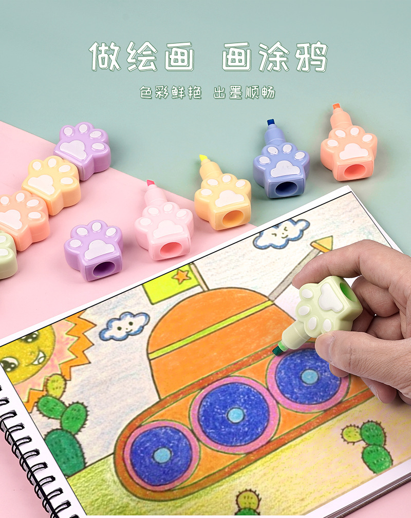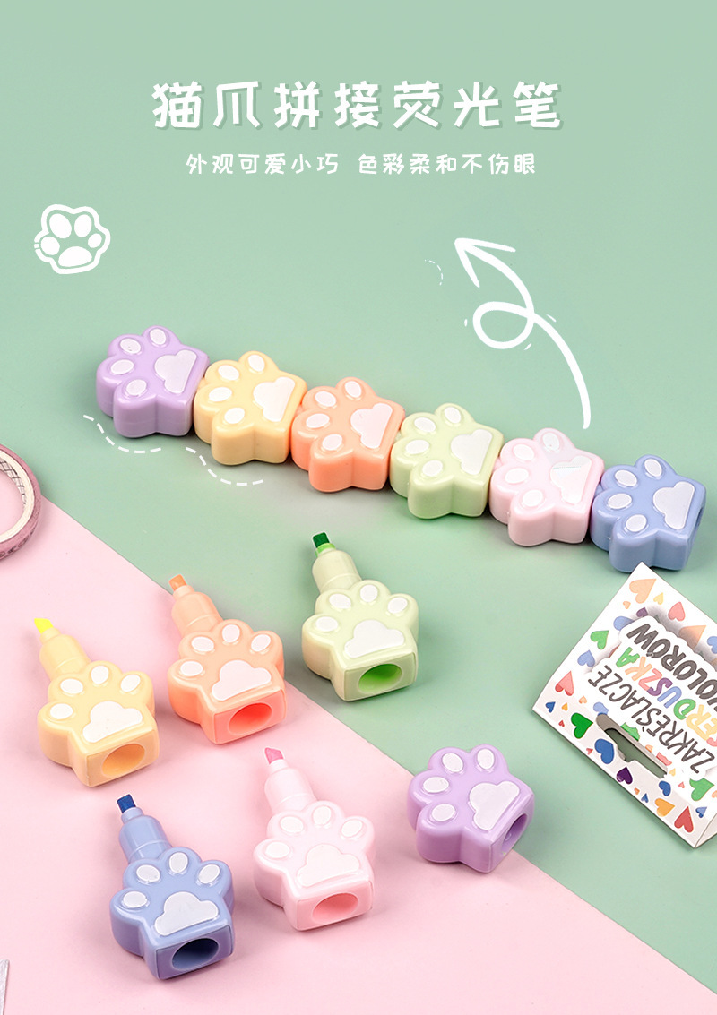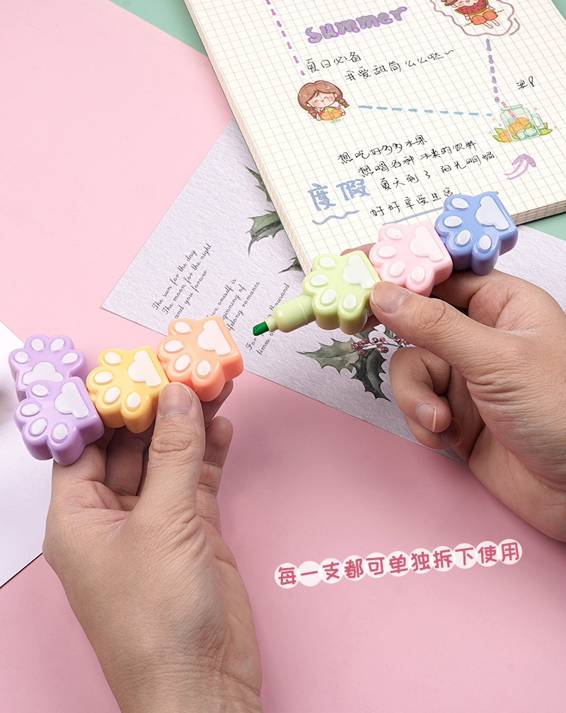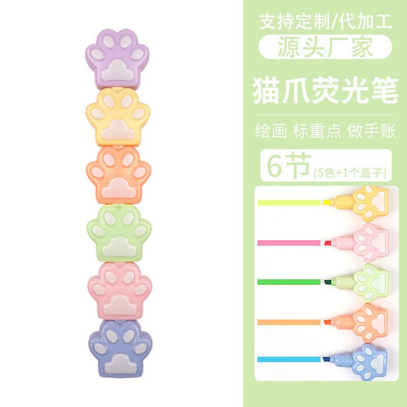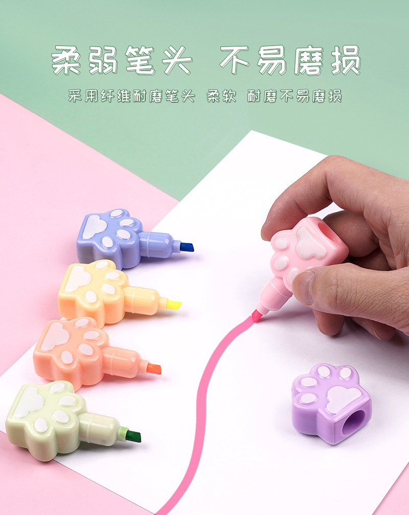 Fabricantes lindos y super lindos pince de resaltador de garra de gato se pueden empalmar y marcar trazos clave de color pálido de dibujos animados de color acuarela