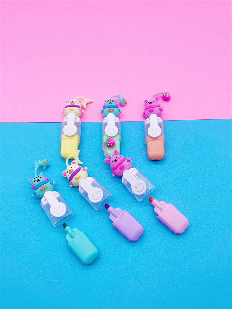 Mayorista transfronteriza multicolor resaltador mini fruta encantador resaltador multicolor conjunto de dibujo puntero marcador pluma
