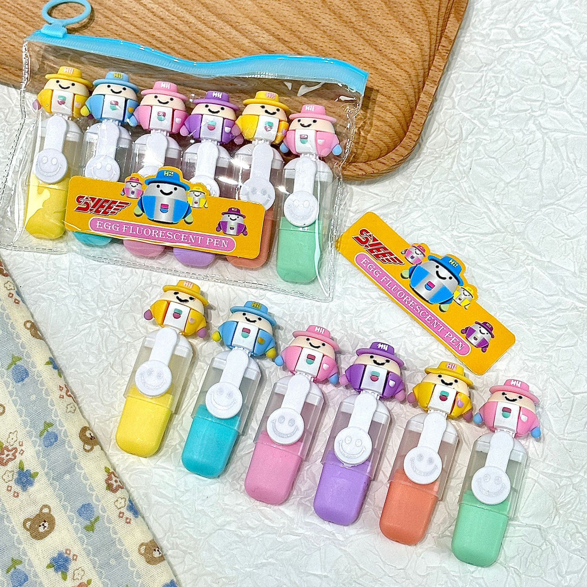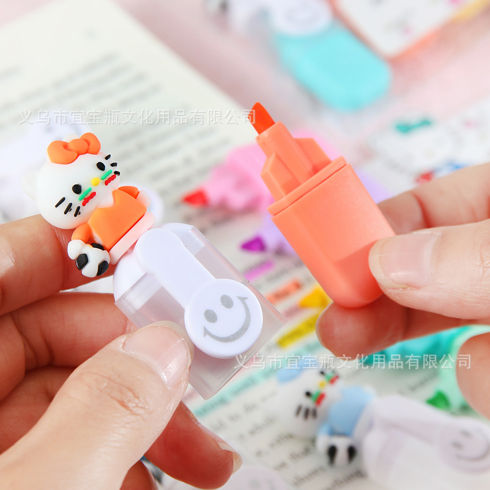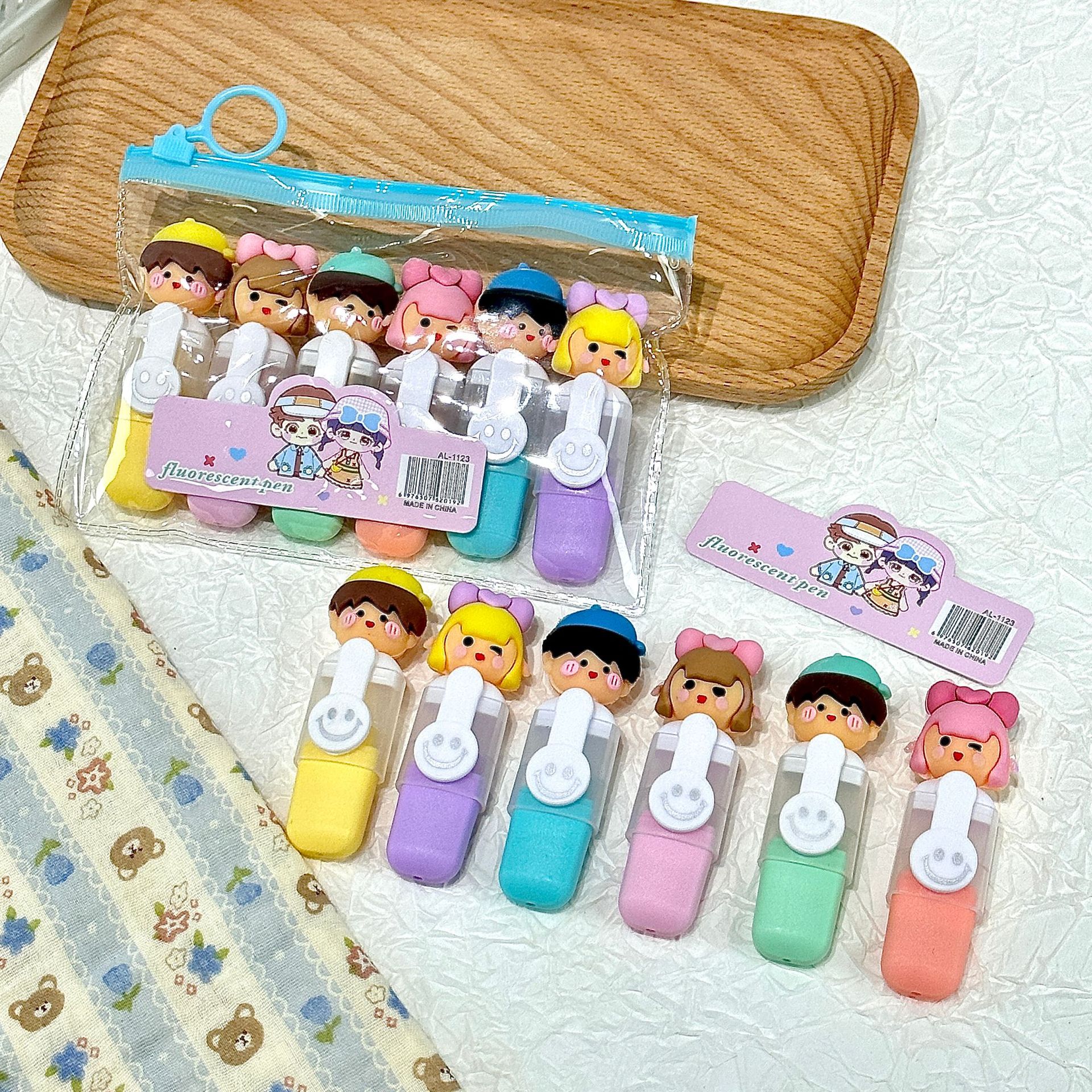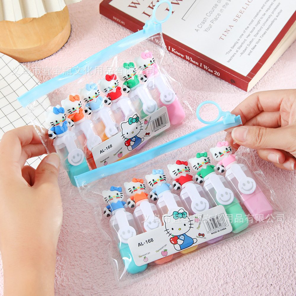 Mini bolsa de dibujos animados resaltador ins de marcado clave de alto valor 6 color juego de bricolaje lindo bolígrafo de color de graffiti