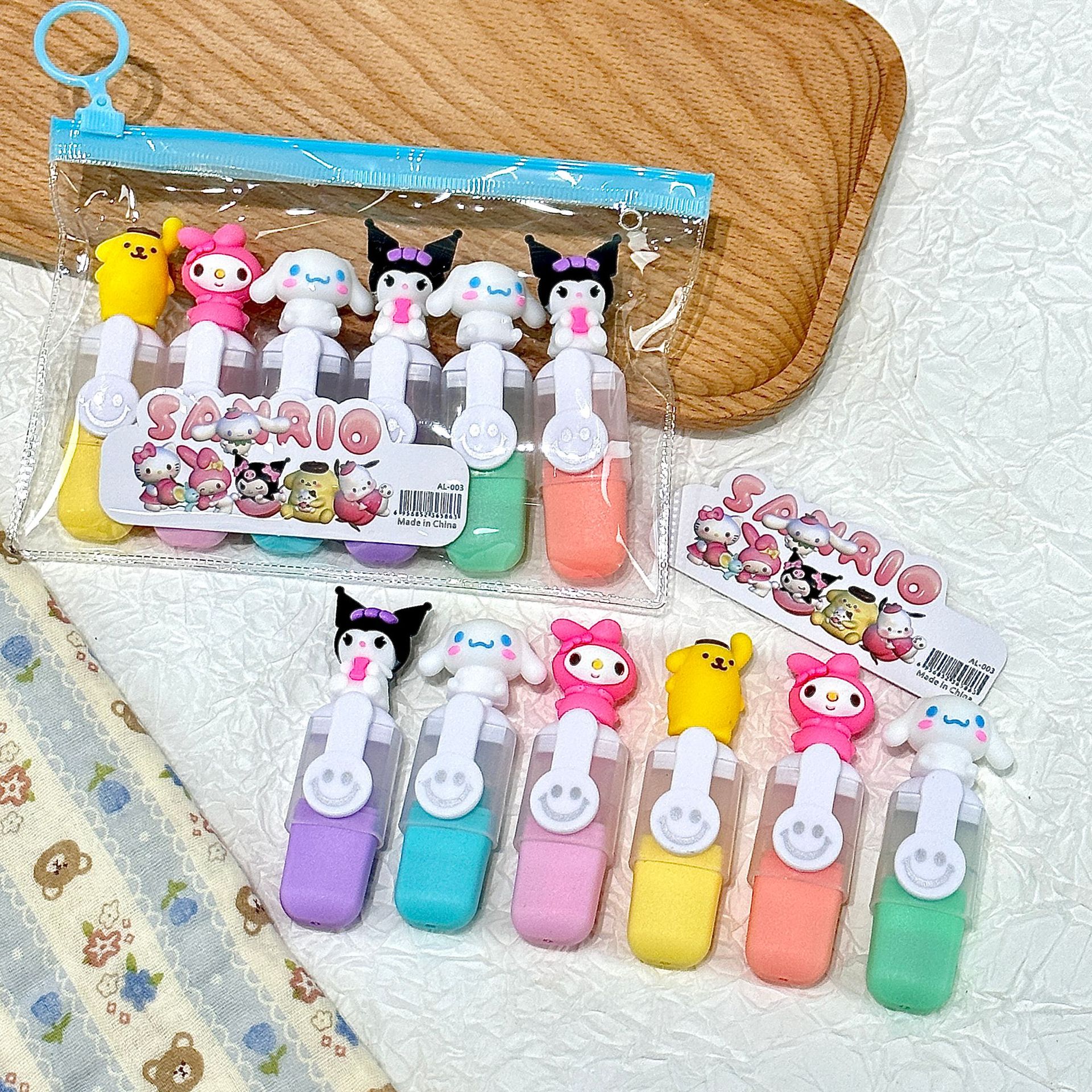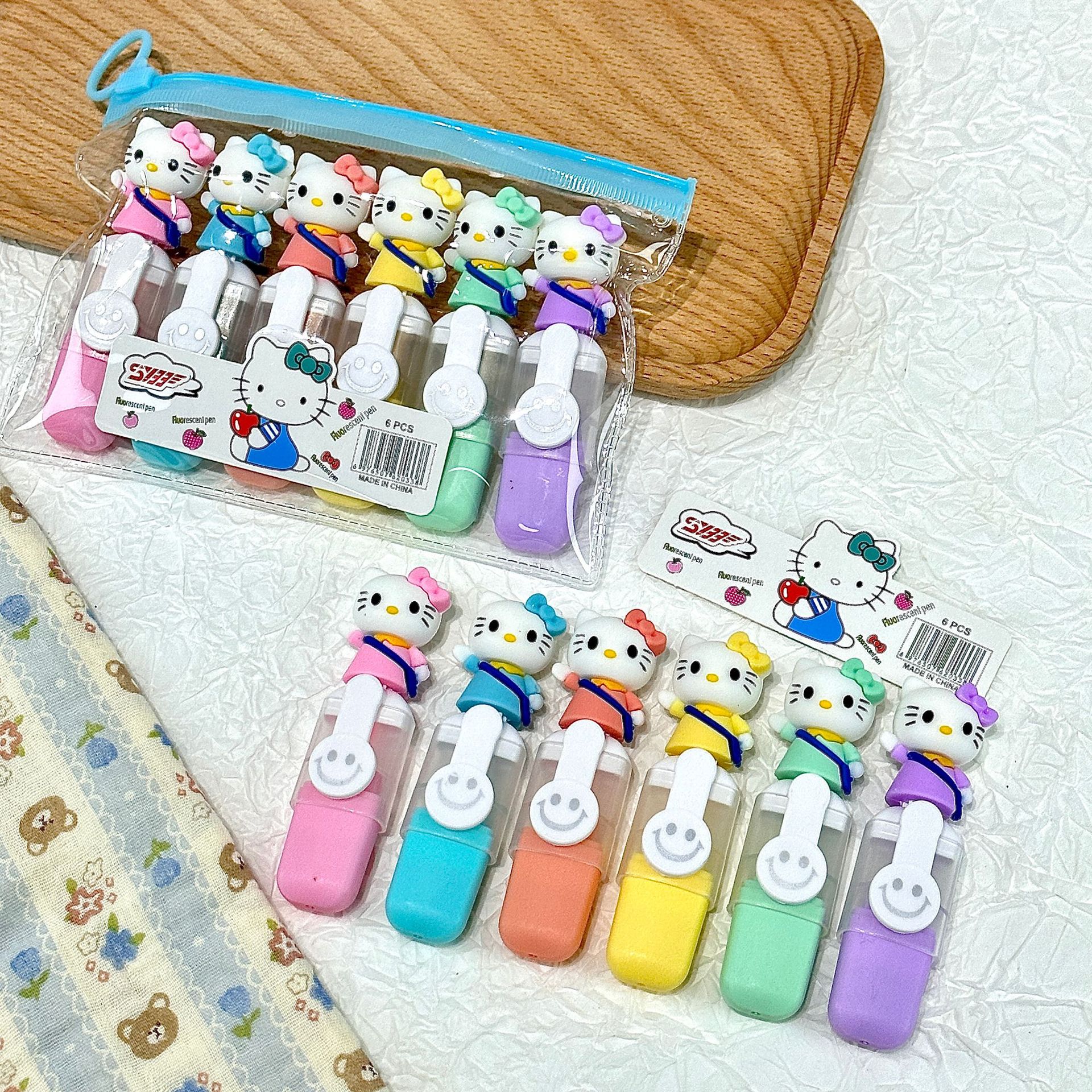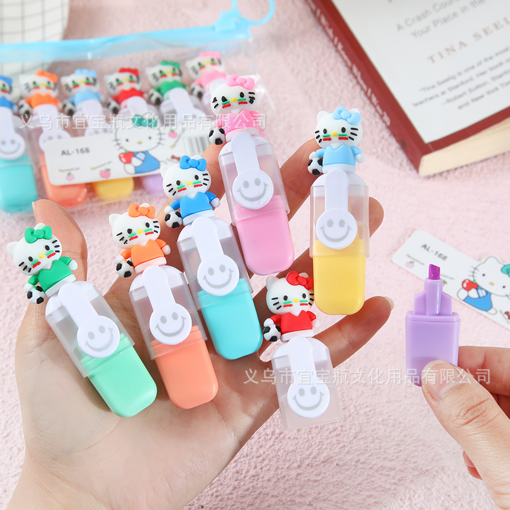 Mini bolsa de dibujos animados resaltador ins de marcado clave de alto valor 6 color juego de bricolaje lindo bolígrafo de color de graffiti