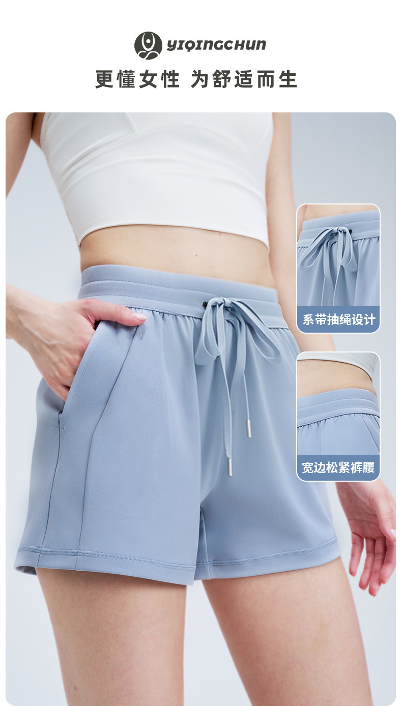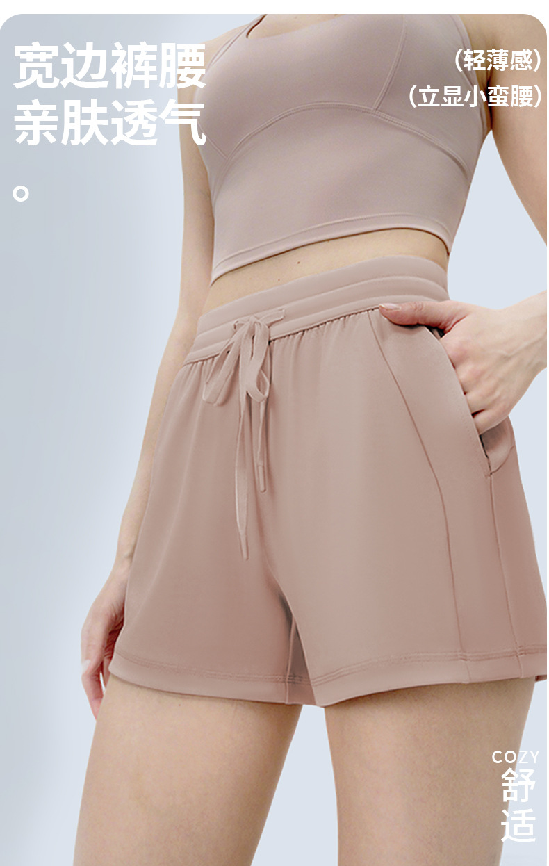 Verano nuevo estilo levantamiento de cadera pantalones cortos de yoga sueltos y simples mujeres pantalones de cuatro puntos delgados con cordón pantalones deportivos para correr