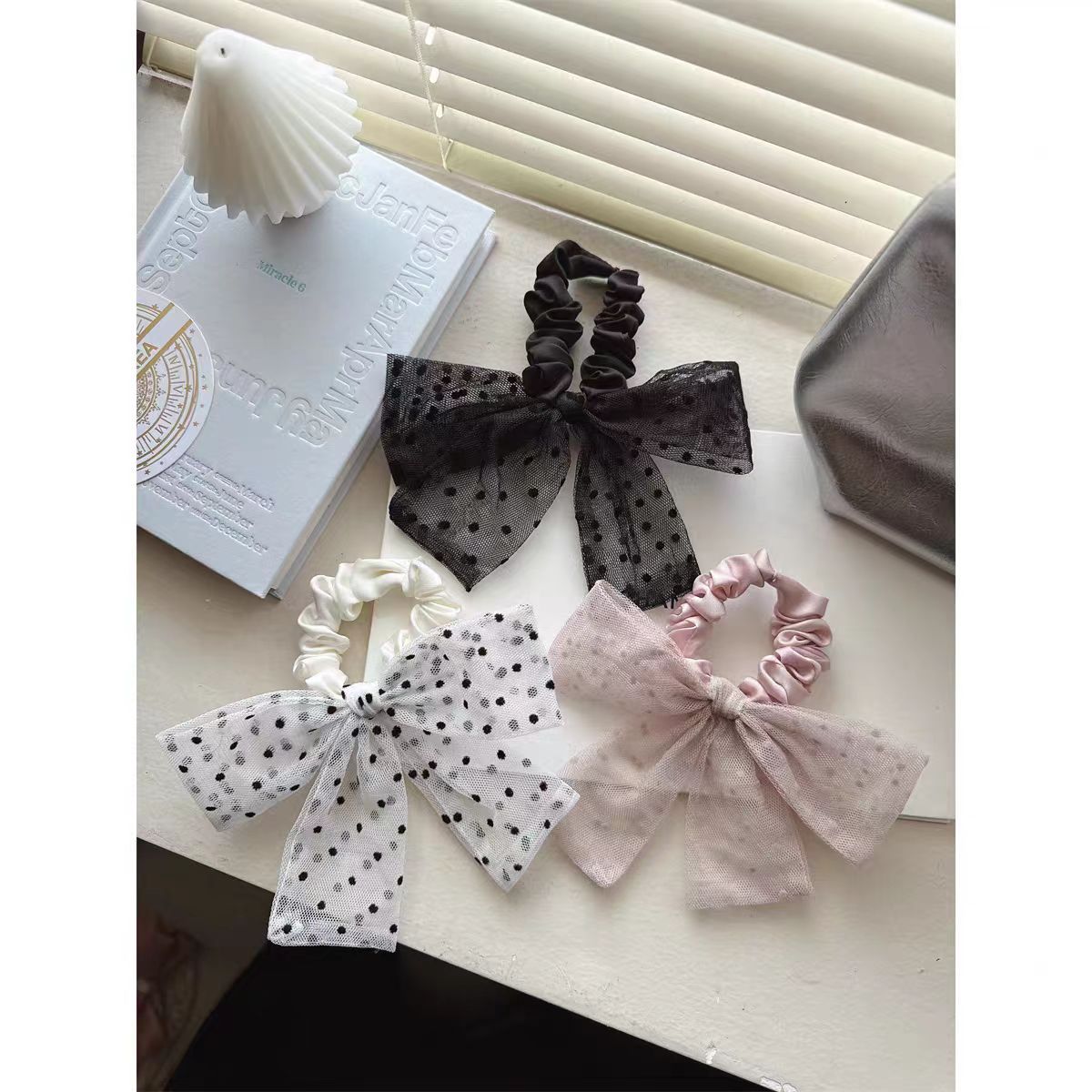 Joyería coreana 2025 nuevo estilo malla lunares encaje lazo grueso lazo para el cabello cuerda para el cabello francés accesorios para el cabello mujeres