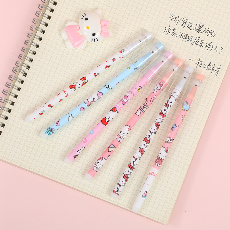 Creativo de dibujos animados KT gato borrable recta pluma de gel estudiante lindo agua pluma de dibujos animados Sanrio estudiante papelería al por mayor