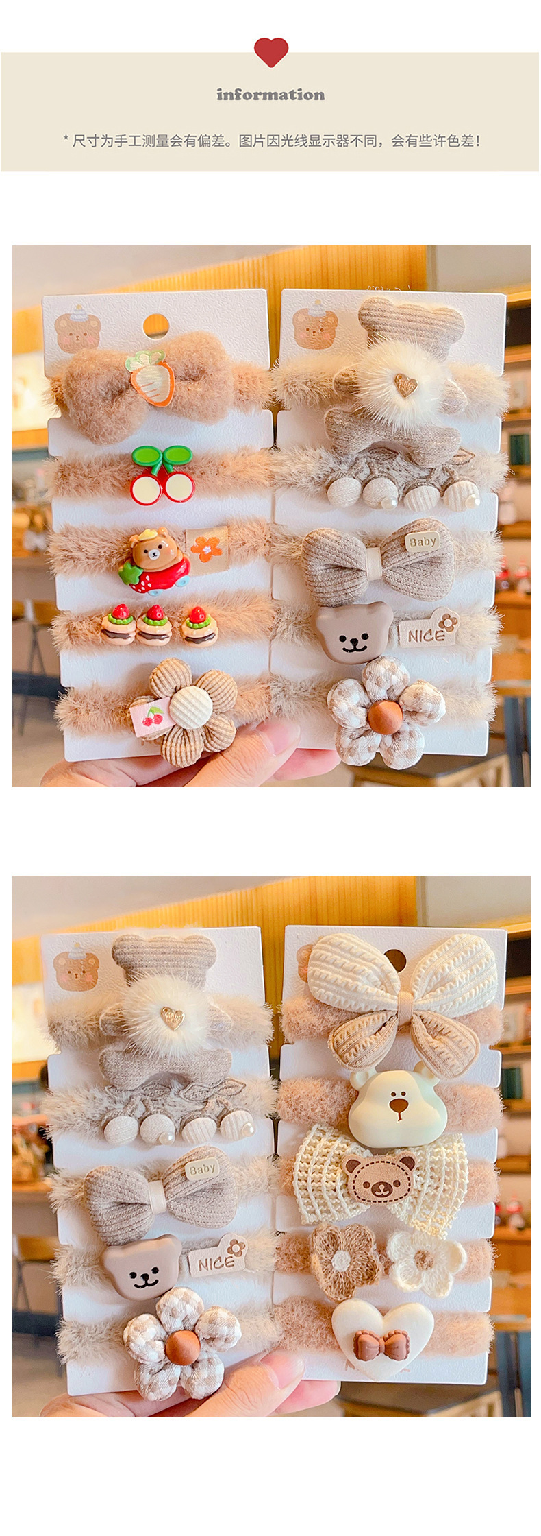 | Color | Oso marrón,Cereza marrón,Arco marrón,Oso rayado,Flor púrpura,Arco rosa,Cerdo rosa |