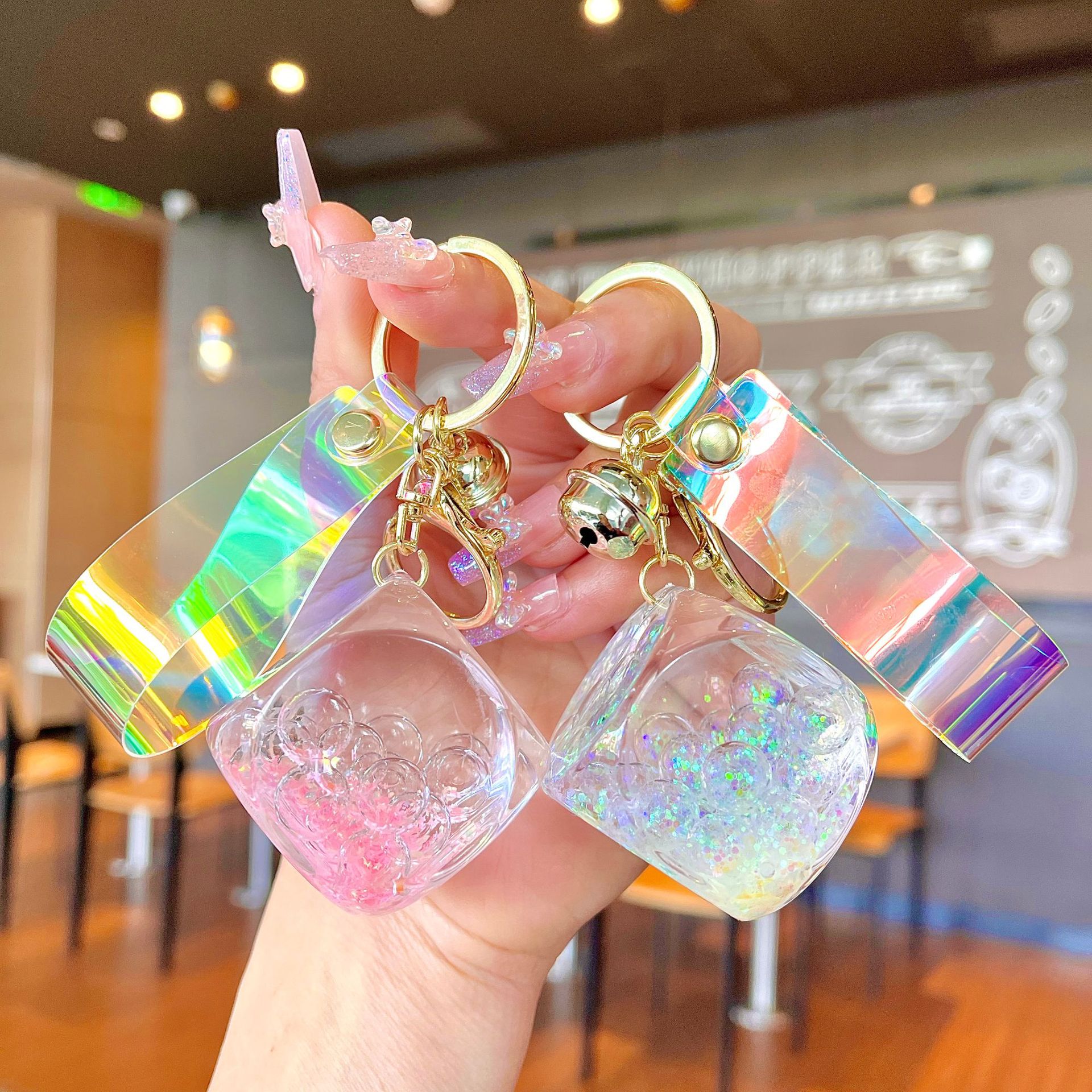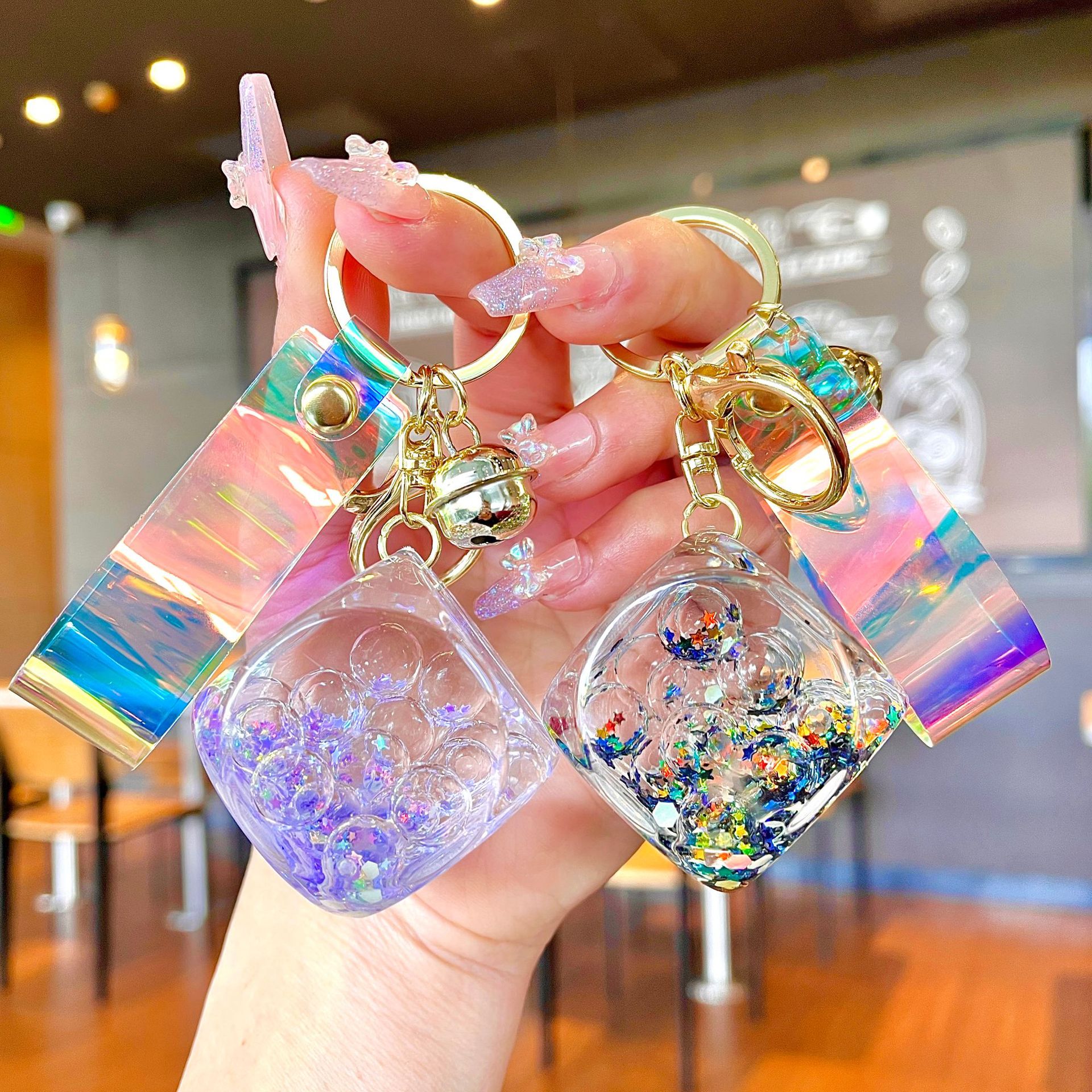 Nuevo llavero de dados luminosos con aceite, cuentas de burbujas, dados, colgantes de botella de arena de cristal, colgantes de bolsas al por mayor