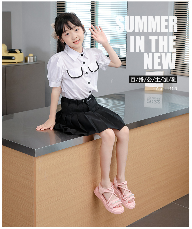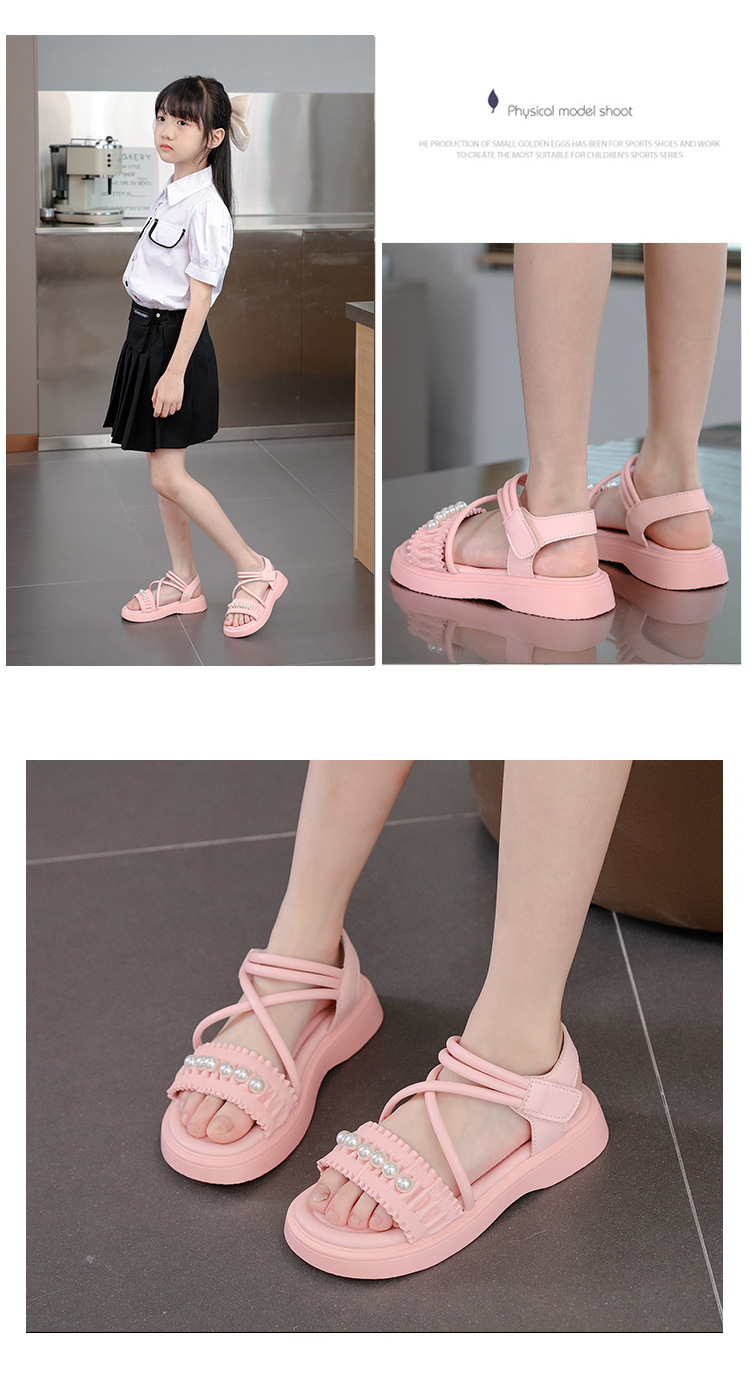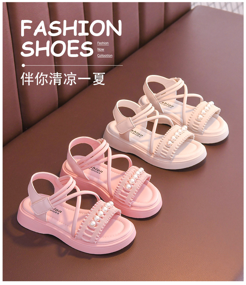 Sandalias para niñas 2025 verano nuevo estilo zapatos de princesa para niños zapatos de playa de suela suave antideslizante de suela suave zapatos para niñas de mediana edad
