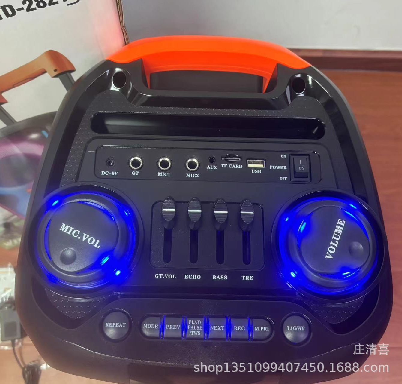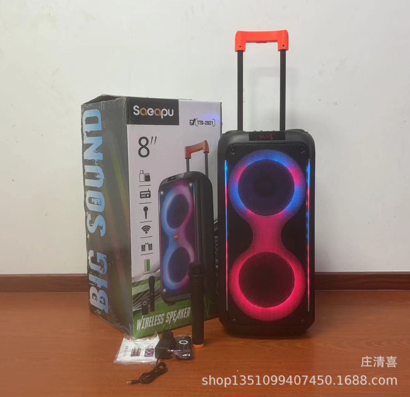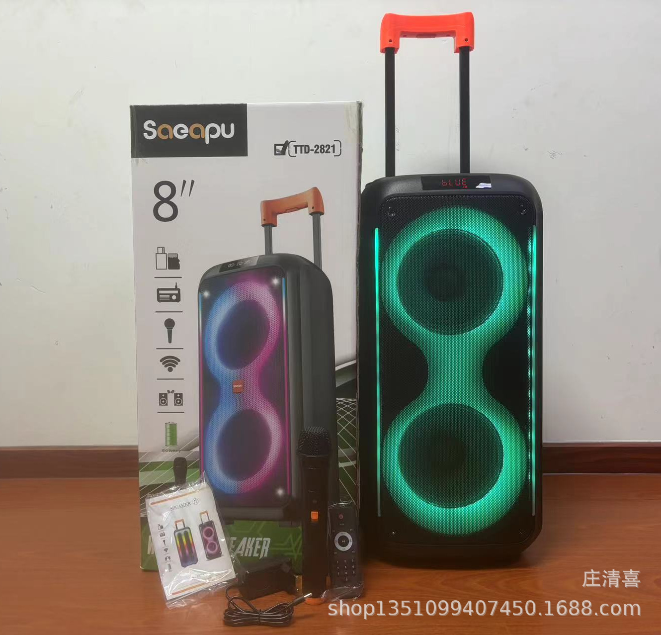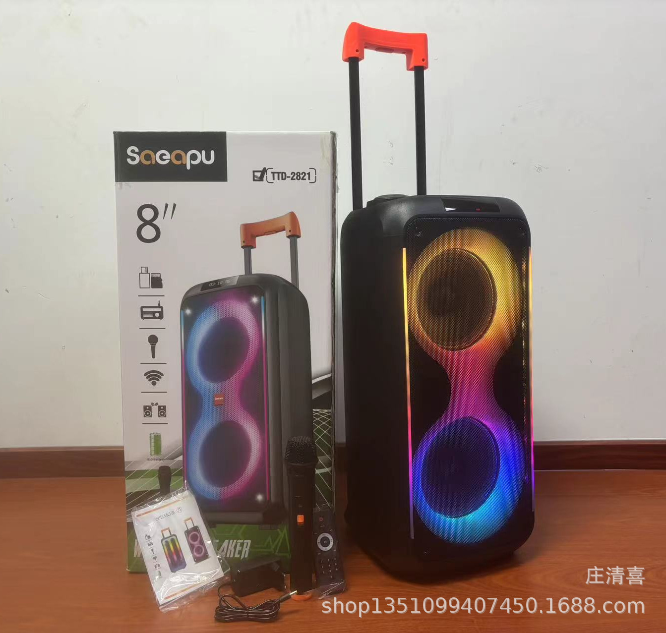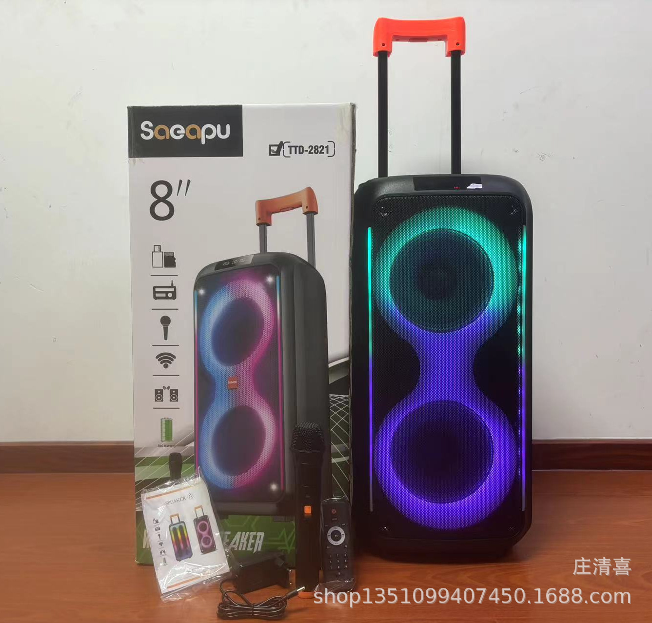 Fabricante de 8 pulgadas de alta potencia 40w altavoz Bluetooth para exteriores baile cuadrado barra de tracción altavoz doble altavoz portátil anillo de luz RGB