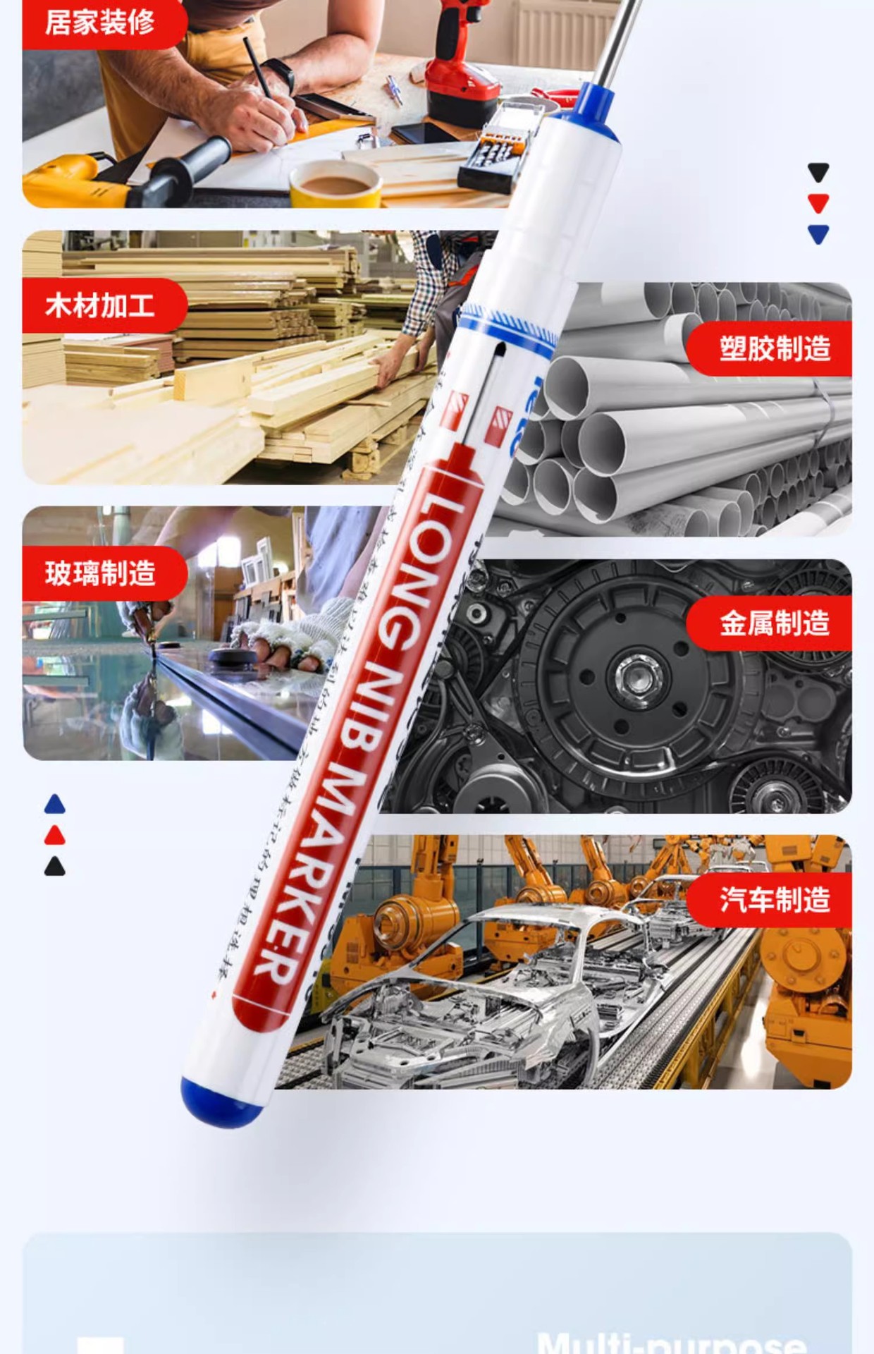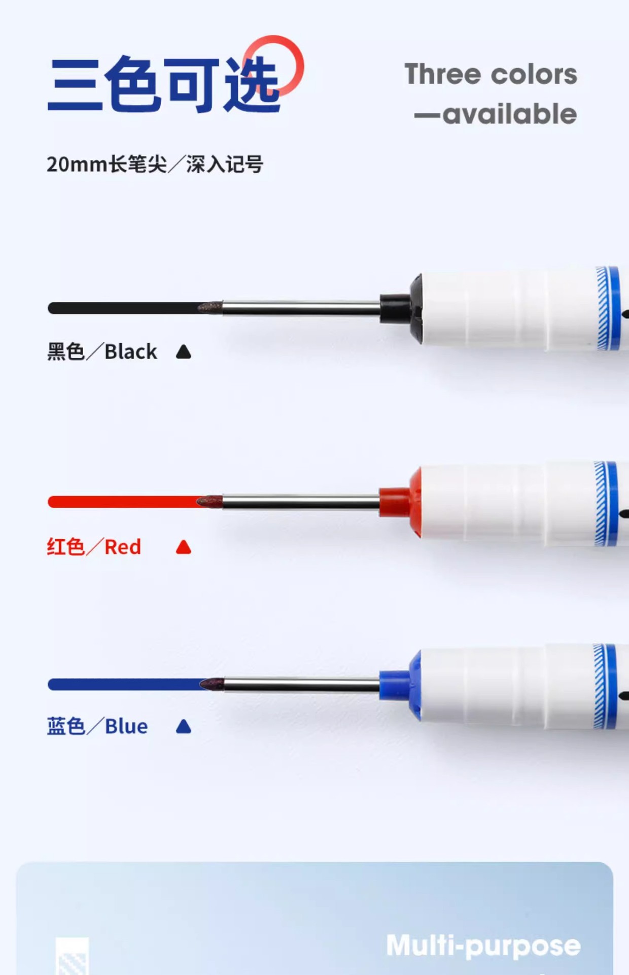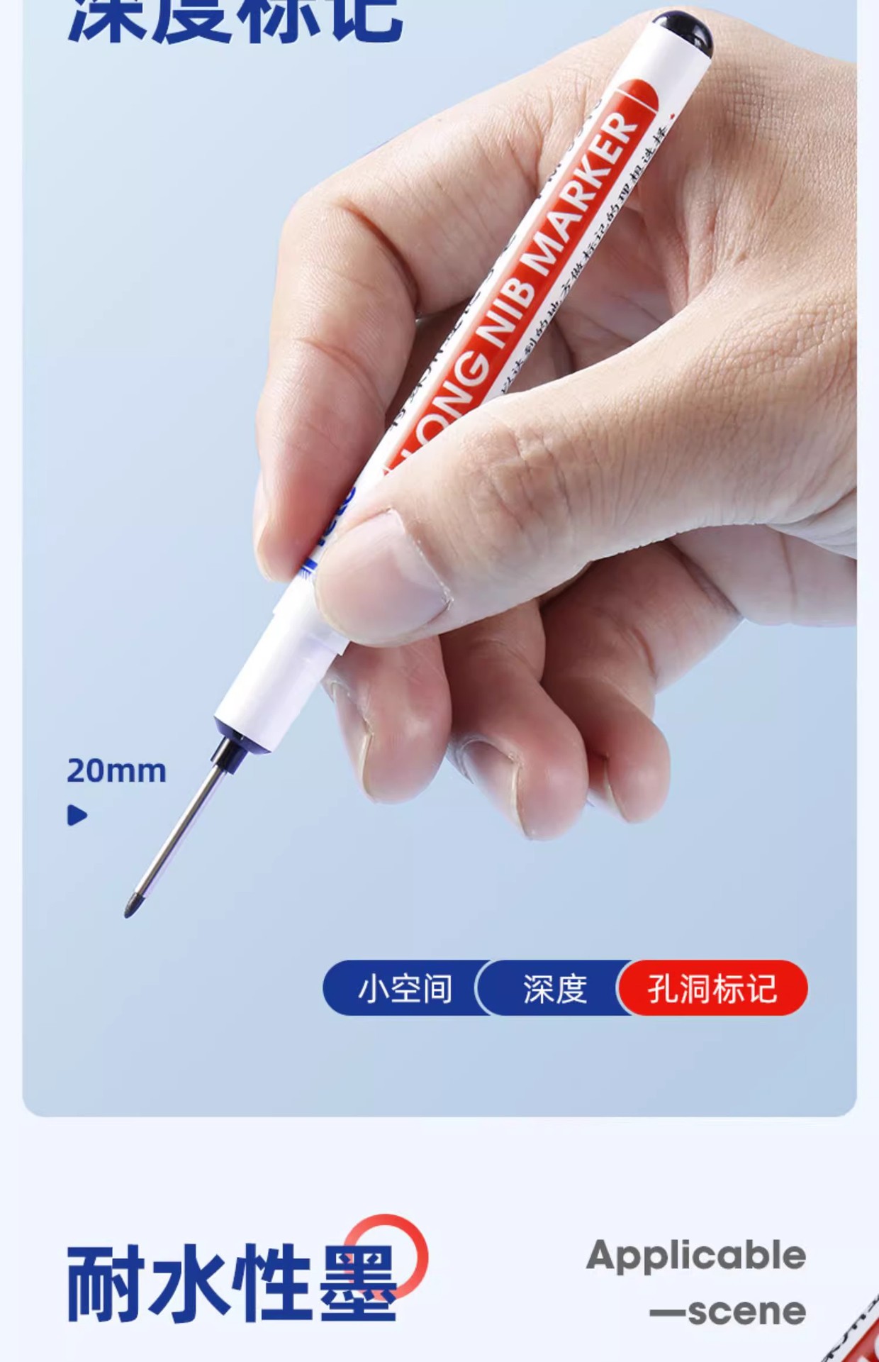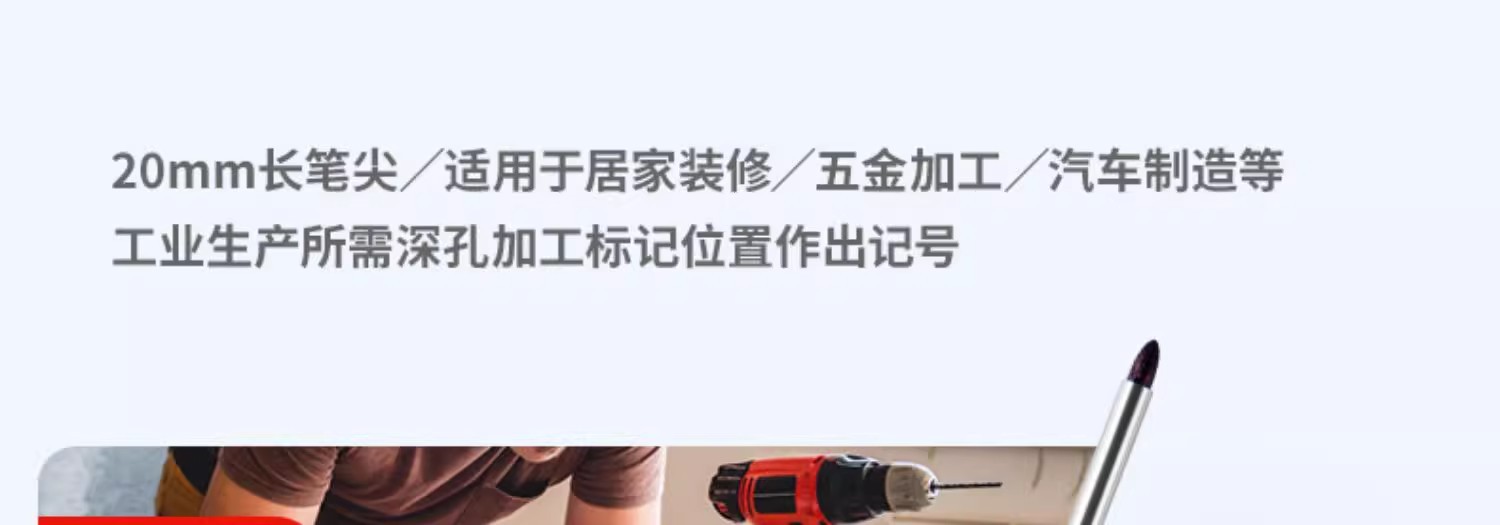 Bolígrafo de punta larga de 20mm de agujero profundo para carpintería de baldosas de cerámica, bolígrafo de marcado y marcado, a prueba de agua, bolígrafo a base de aceite de secado rápido al por mayor
