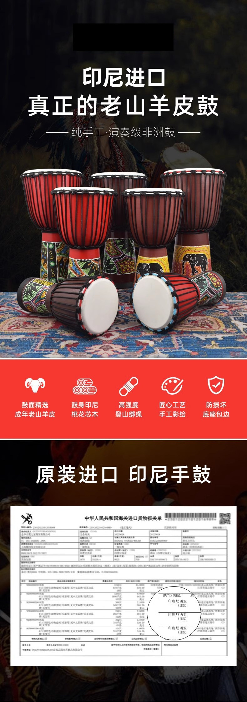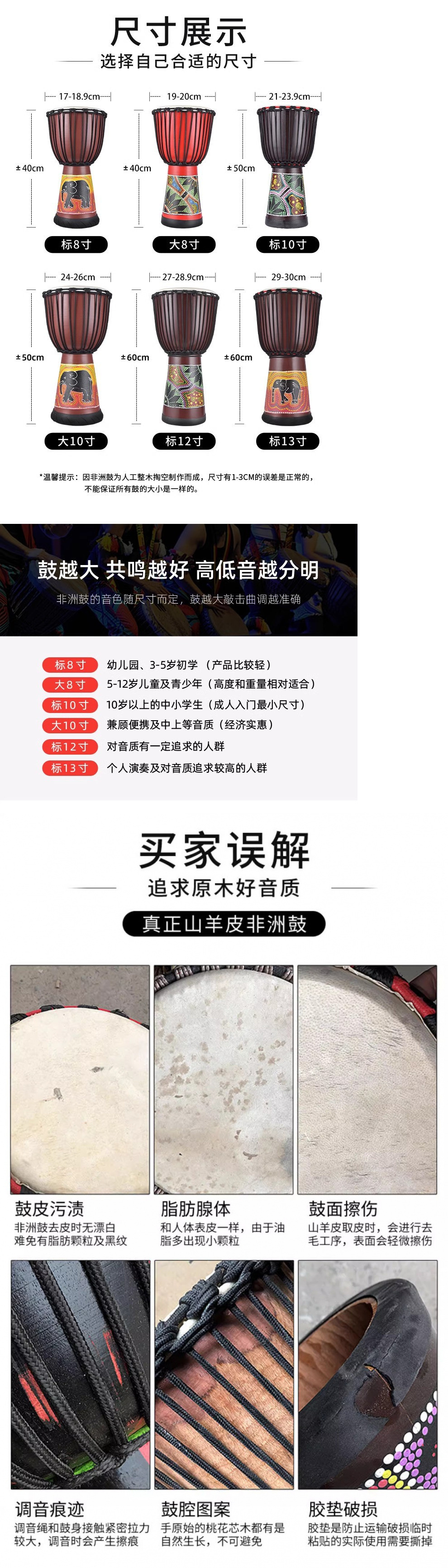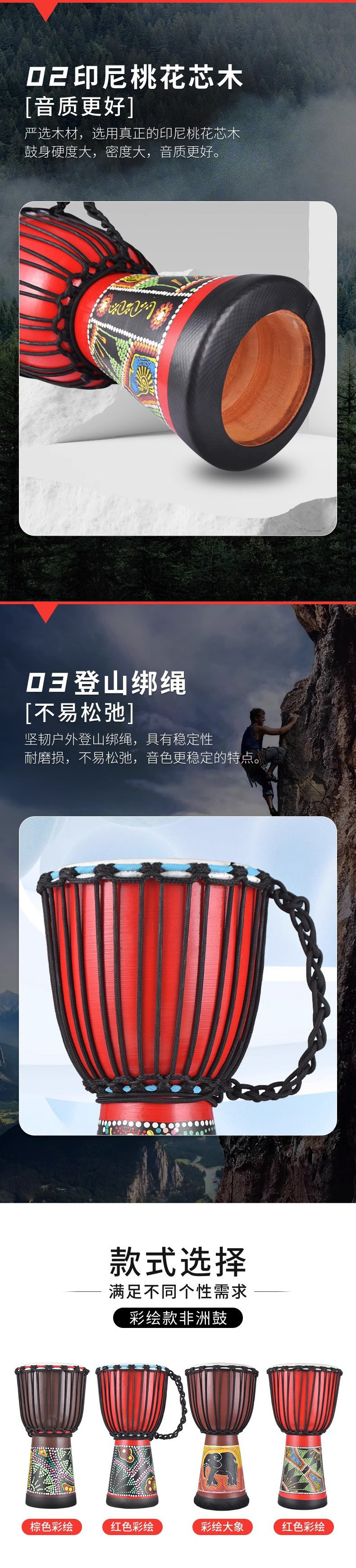 Tambor africano pintado para niños adultos Lijiang tambor de mano 8 pulgadas 10 pulgadas 12 pulgadas 13 pulgadas tambor de mano jardín de infantes