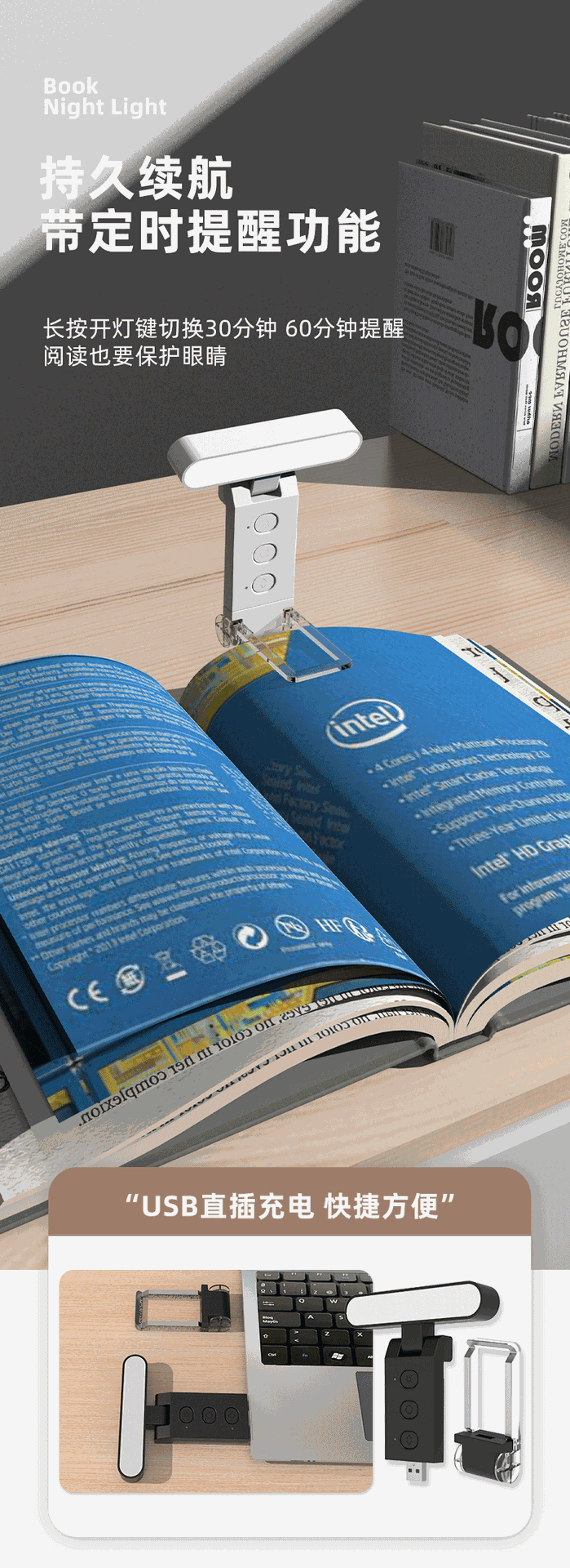 2024 cross-border USB clip luz de lectura luz de marcadores plegable de doble propósito led luz de lectura carga portátil luz de bookholder