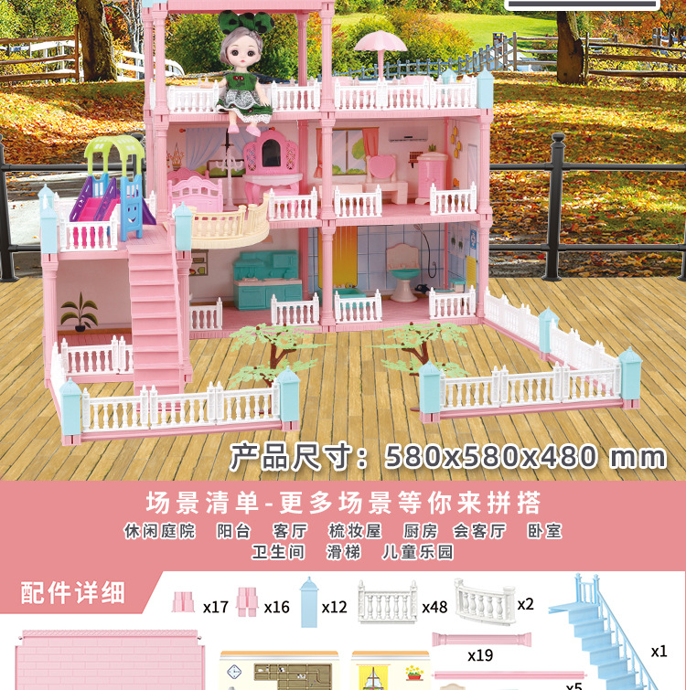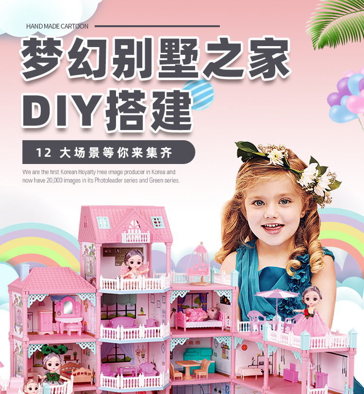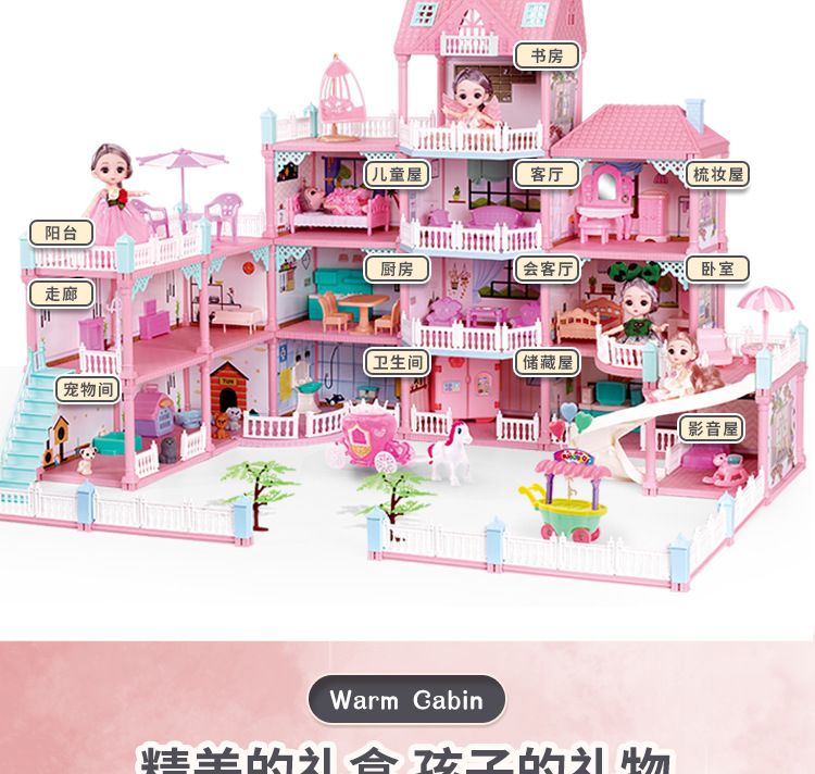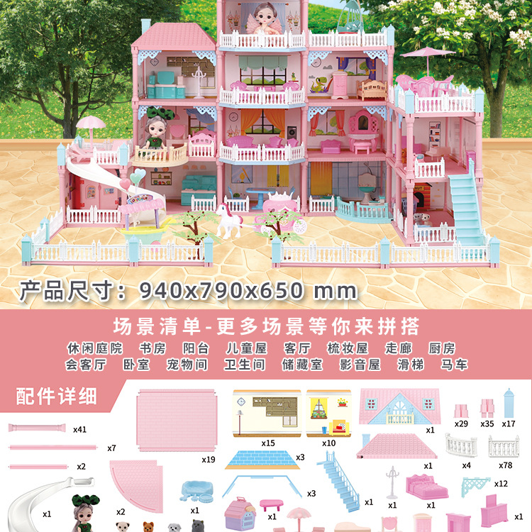 Los niños transfronterizos juegan casa juguete niña simulación muñeca casa princesa Castillo Villa Casa montado juguete al por mayor