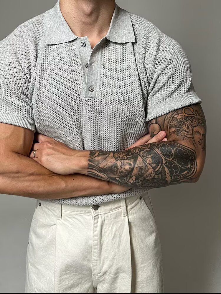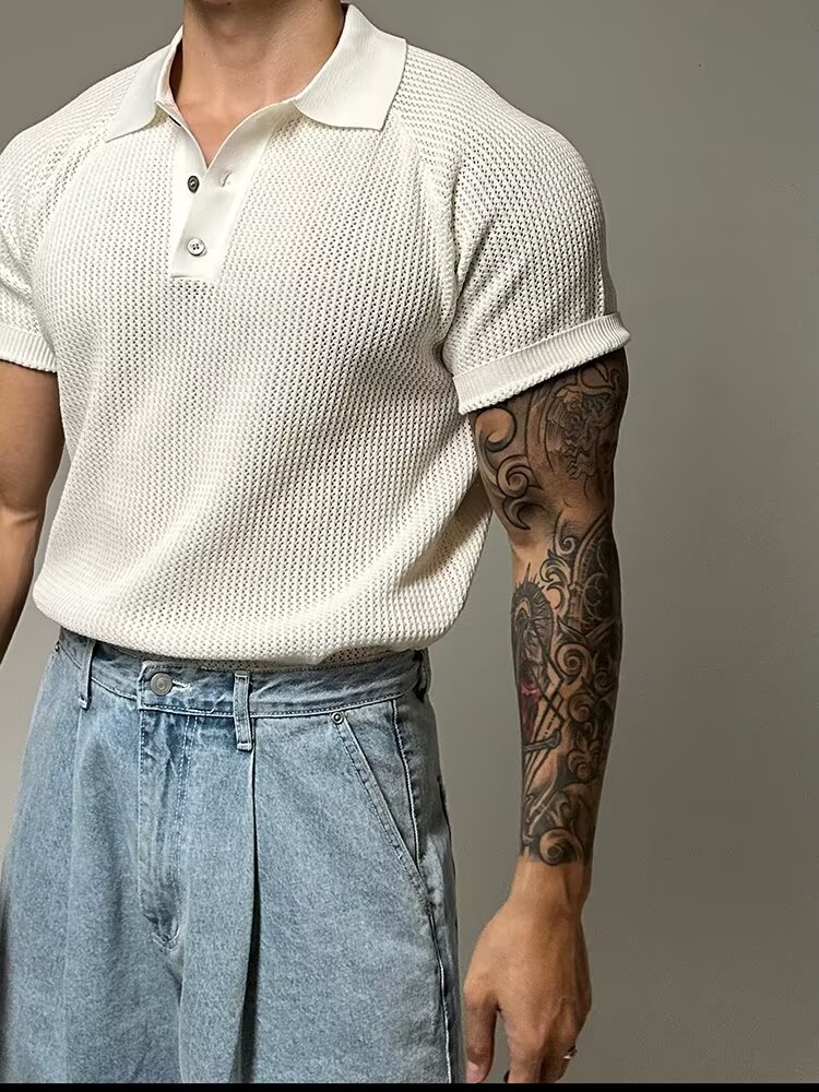 Verano nuevo estilo suéter de manga corta hombre panal hueco camisa POLO cuello de camisa camiseta de negocios comercio exterior transfronterizo al por mayor