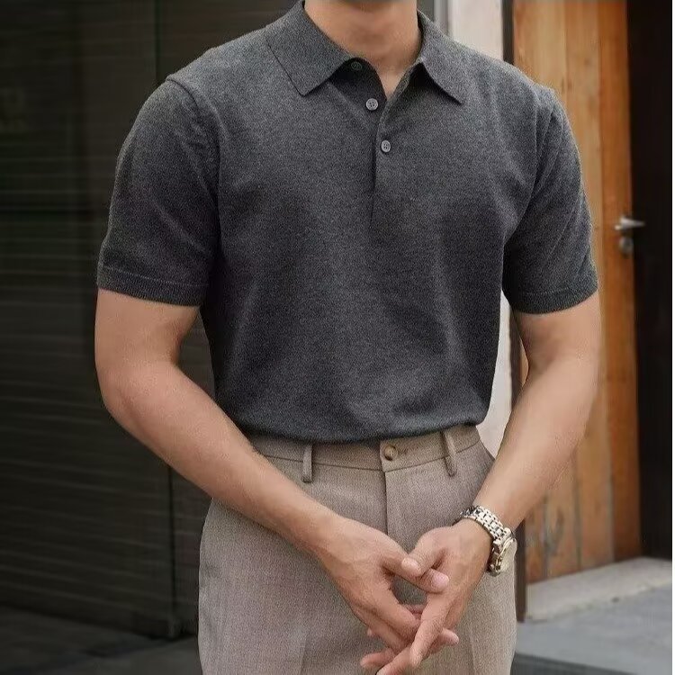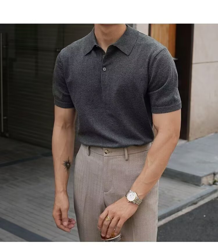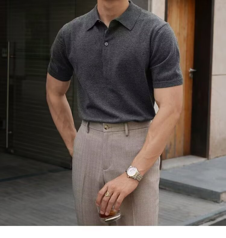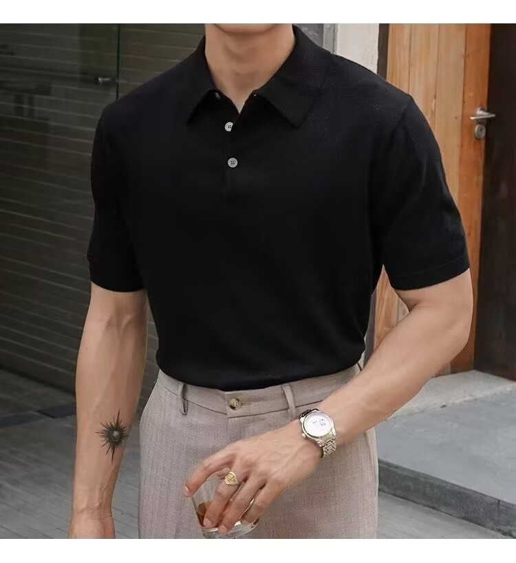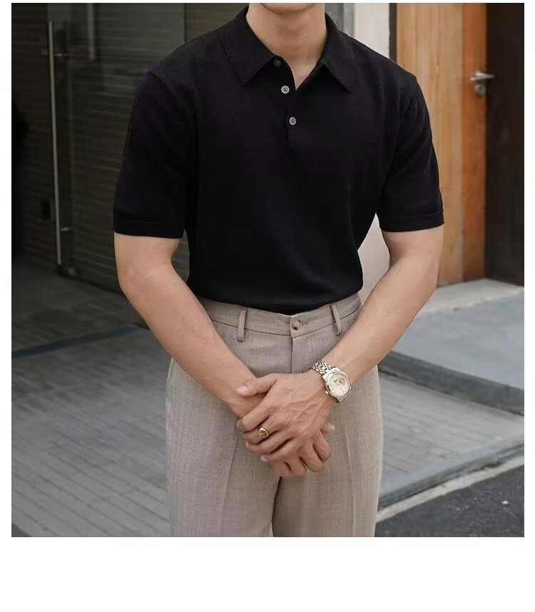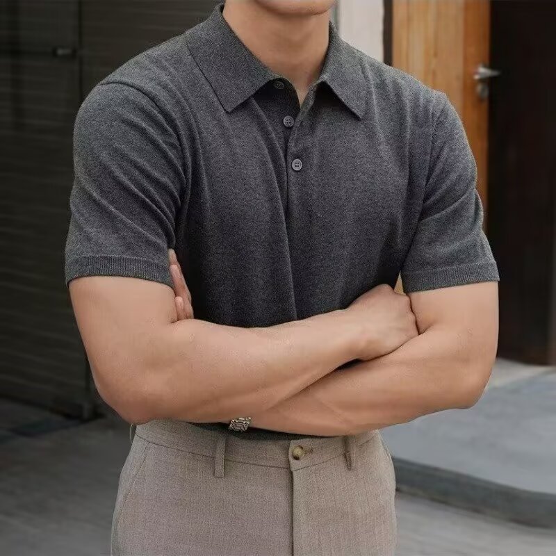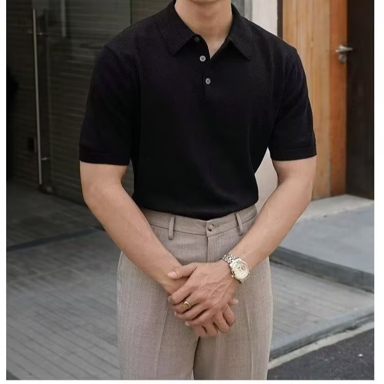 Ins Trend Harajuku Art Japanese New 2025 Summer Manga corta Moda Casual Color sólido Punto Polo Camisa Hombre