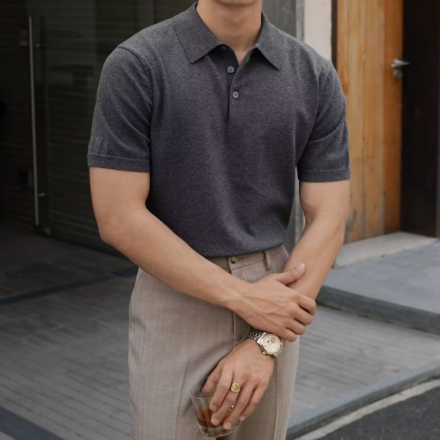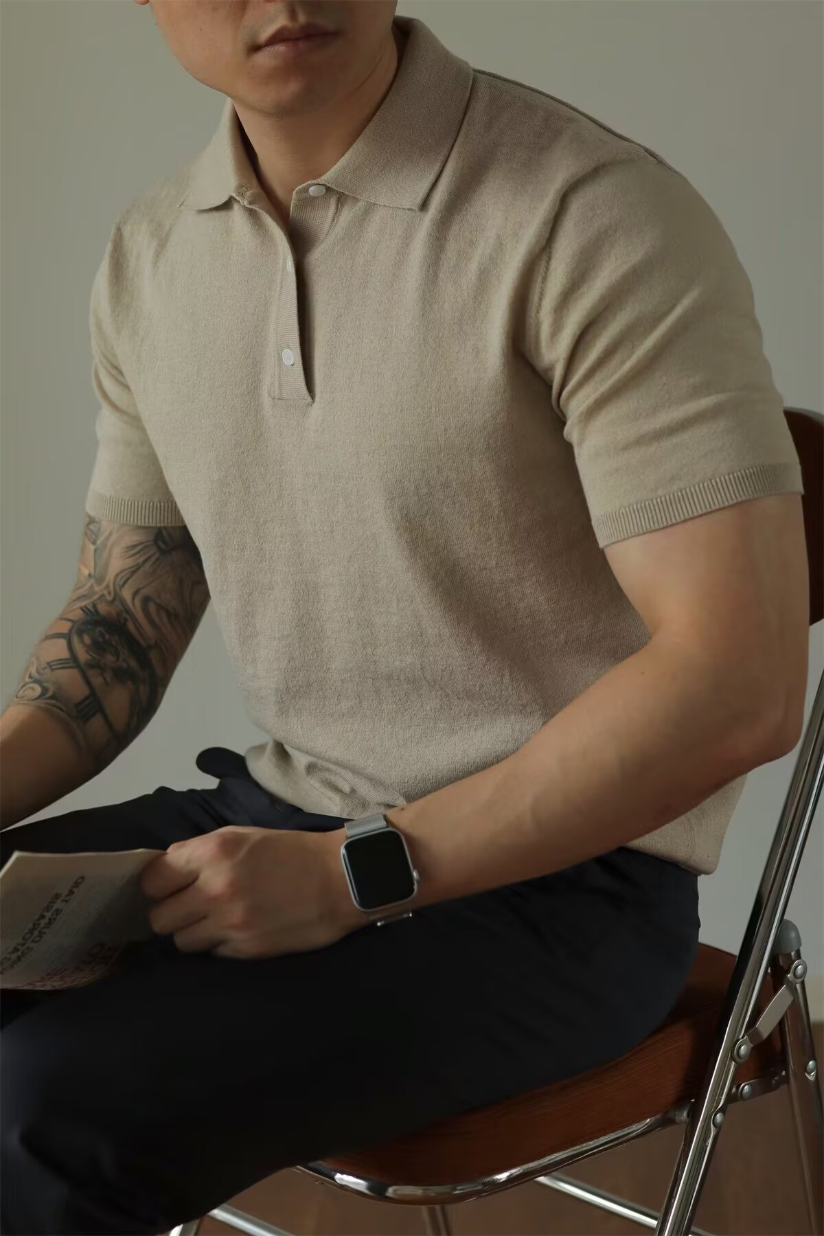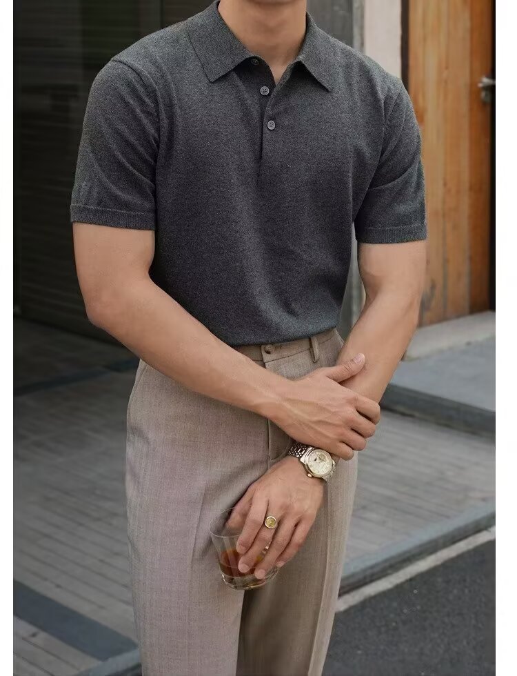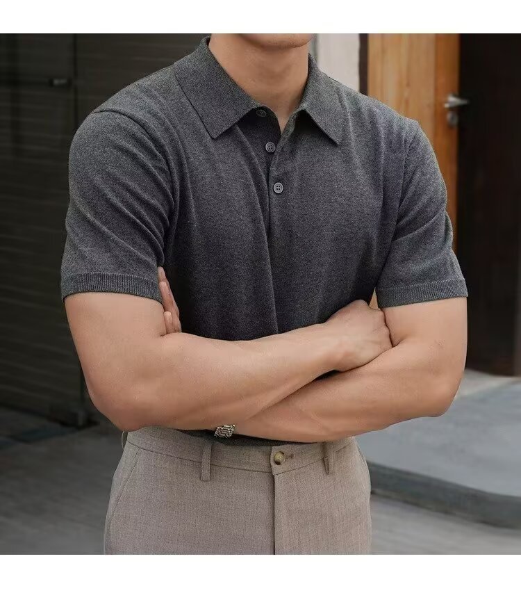 Ins Trend Harajuku Art Japanese New 2025 Summer Manga corta Moda Casual Color sólido Punto Polo Camisa Hombre