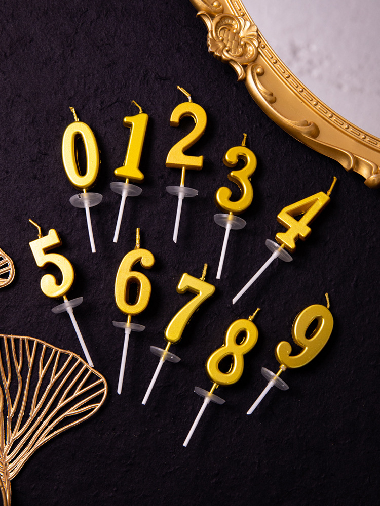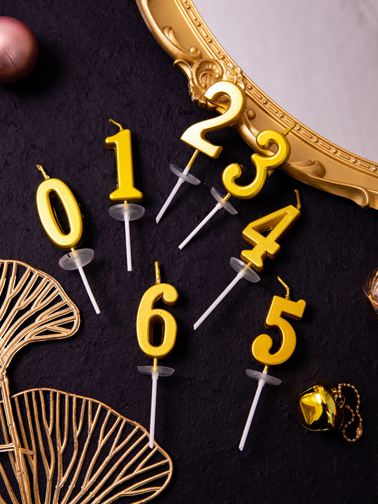Vela de cumpleaños digital dorada, decoración de pasteles de cumpleaños para niños, decoración de postres de fiesta de celebridades de Internet, complemento de mesa