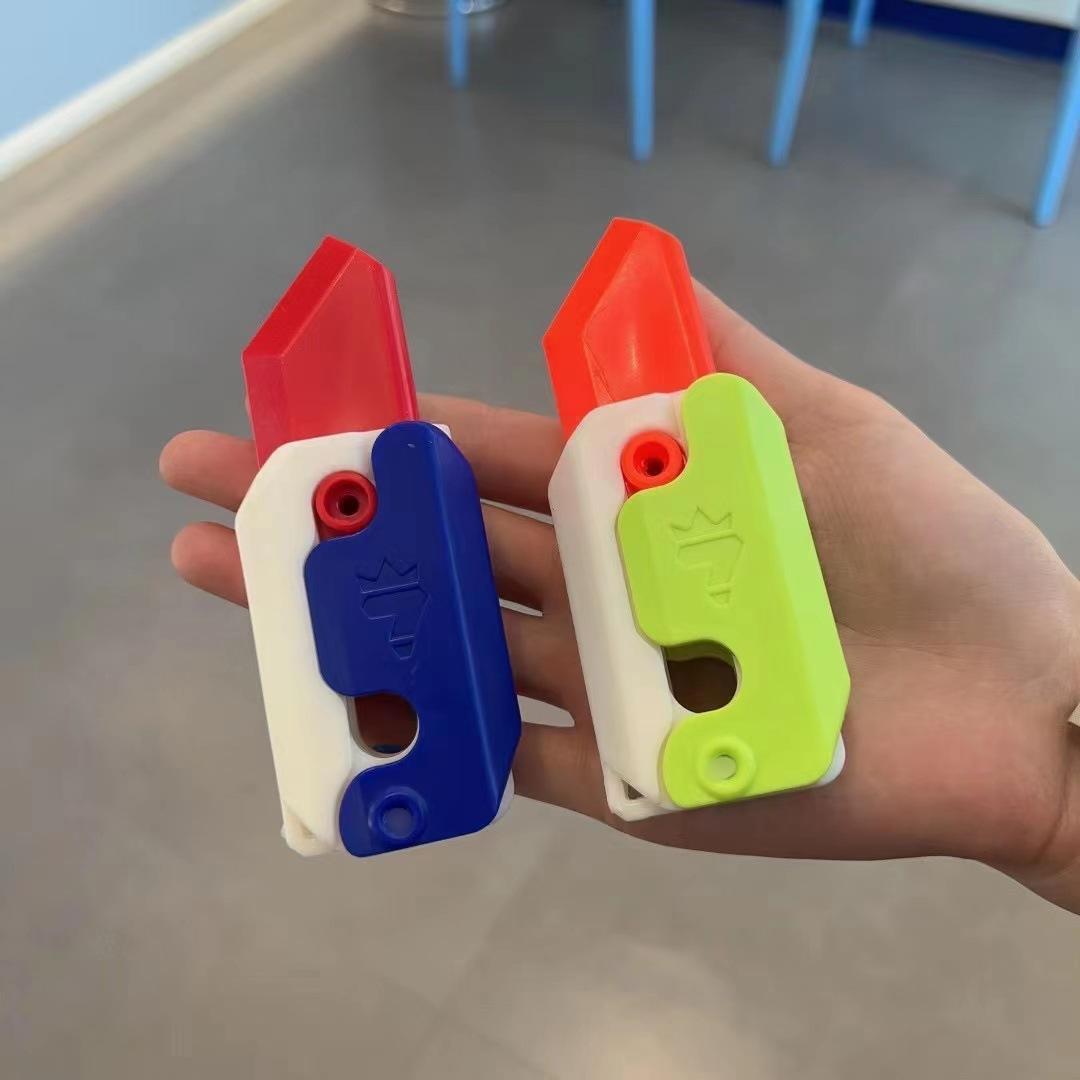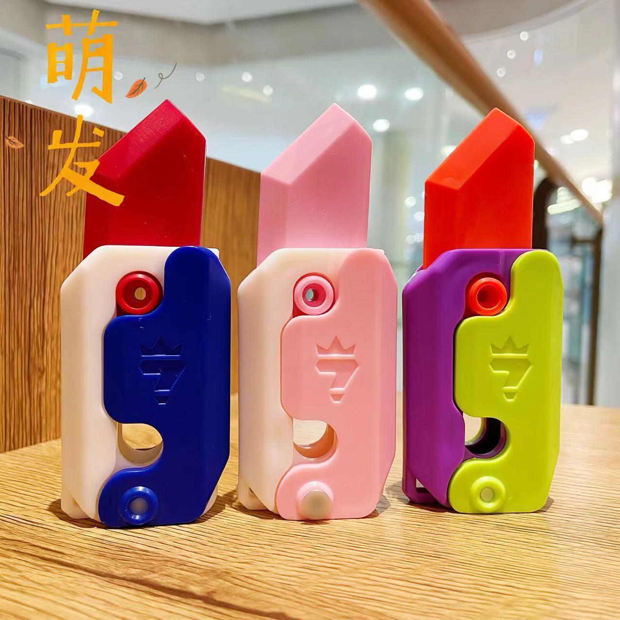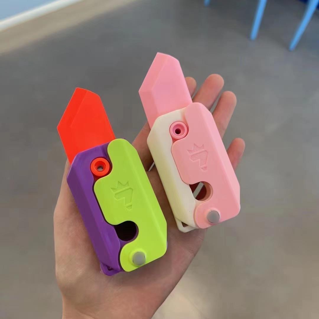 Cuchillo de rábano luminoso cuchillo de zanahoria luminoso Internet celebridad fluorescente plegable mini impresión 3D gravedad directa saltar cuchillo juguete