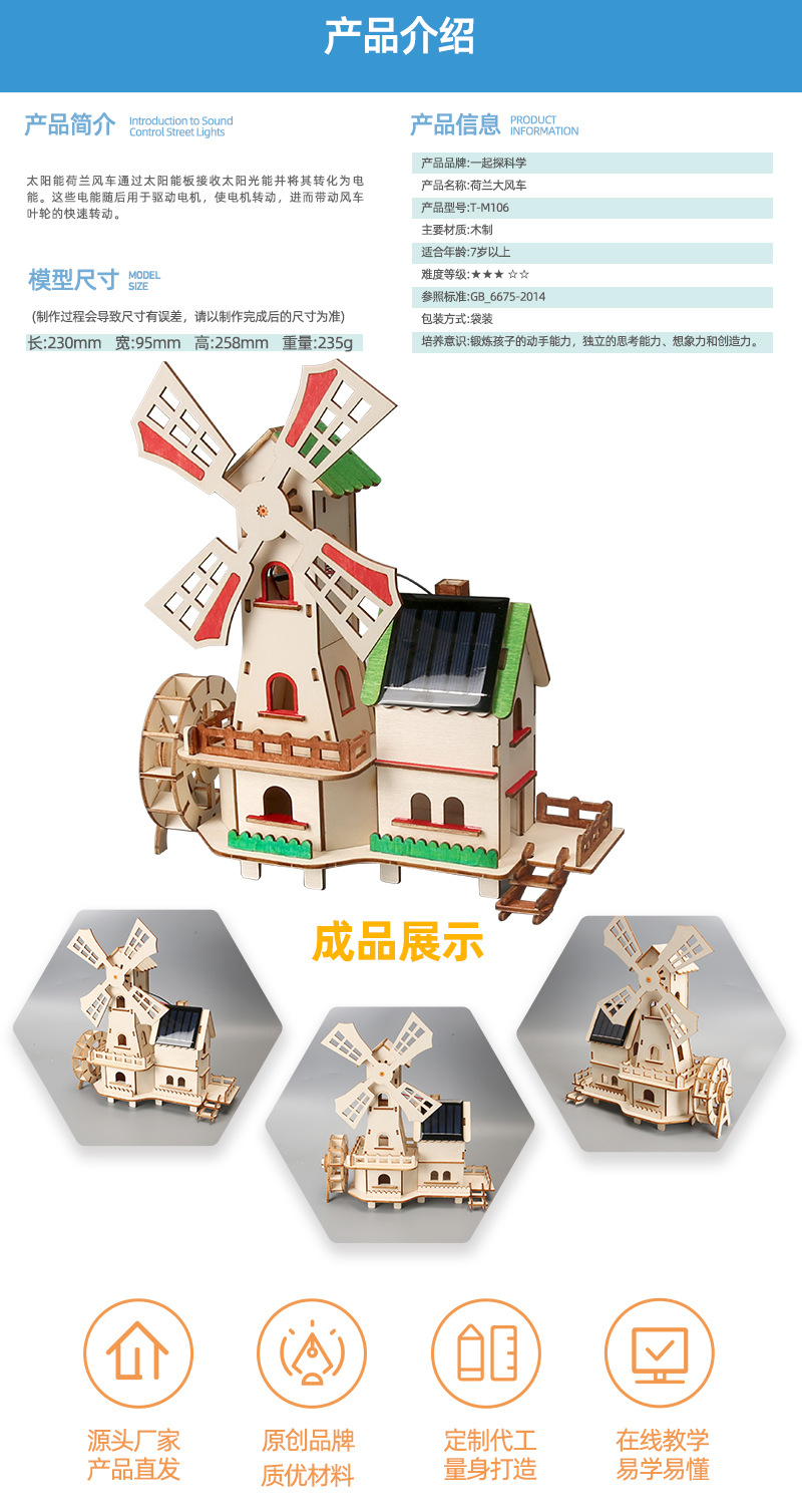 Casa solar Holanda gran molino de viento paquete de material científico tecnología de bricolaje pequeña producción steam material didáctico juguetes para niños
