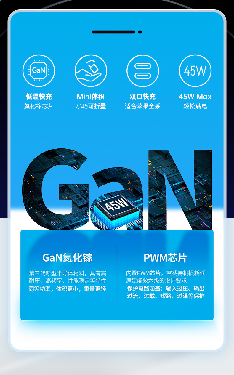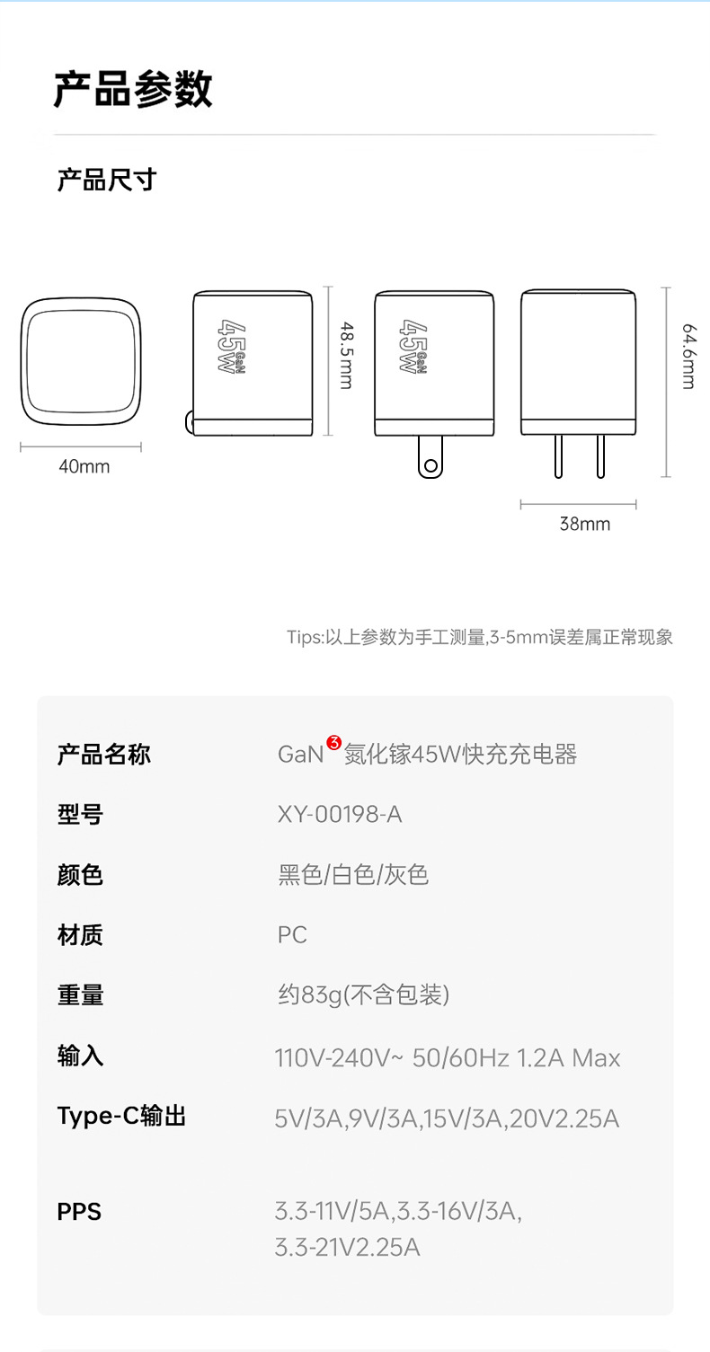 Cargador con certificación PD45WETL personalizado, cabezal de carga rápida de nitruro de galio GAN, adaptación de la fuente de alimentación de la tableta del teléfono móvil