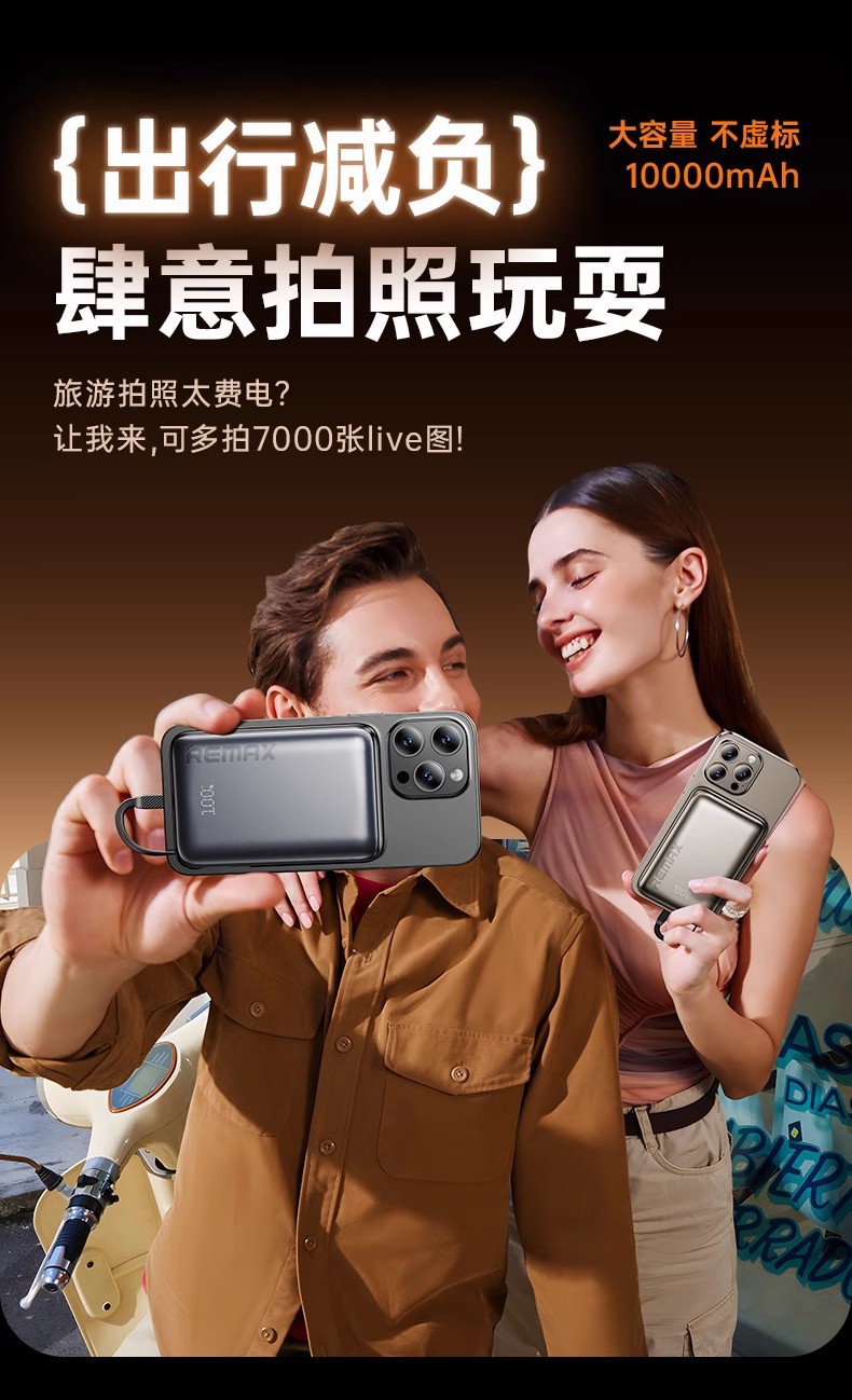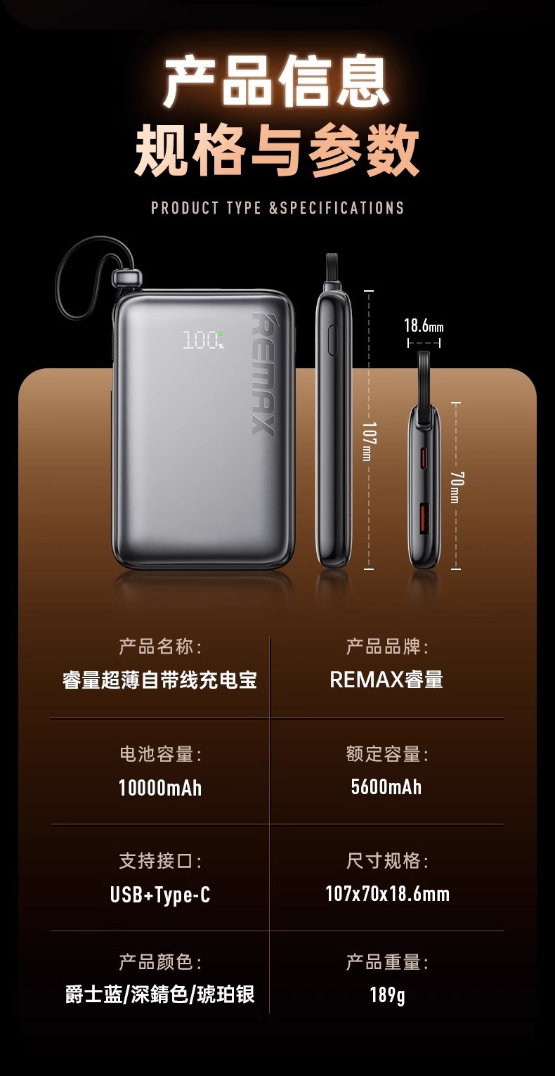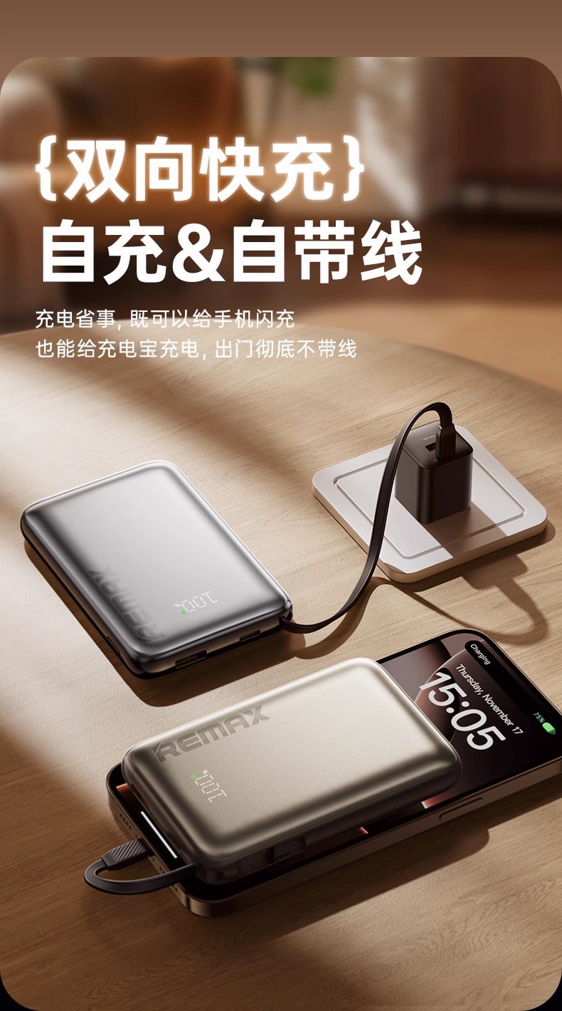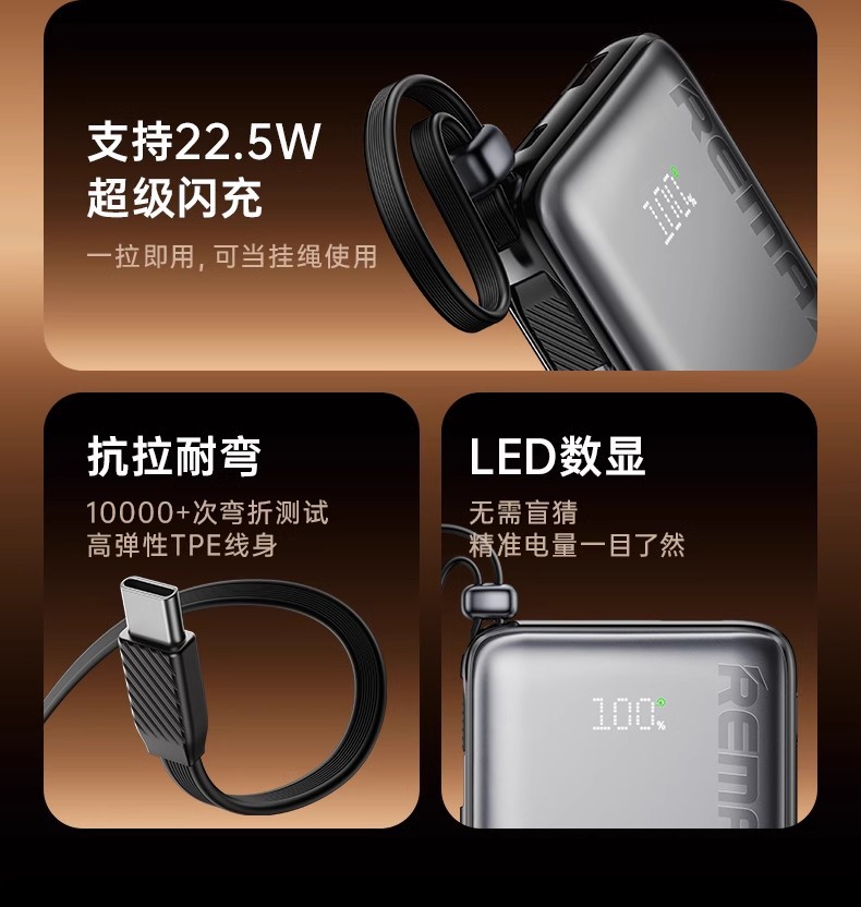 Remax con cable de carga rápida 10000mAh teléfono móvil pantalla digital fuente de alimentación móvil para Android Apple 3c