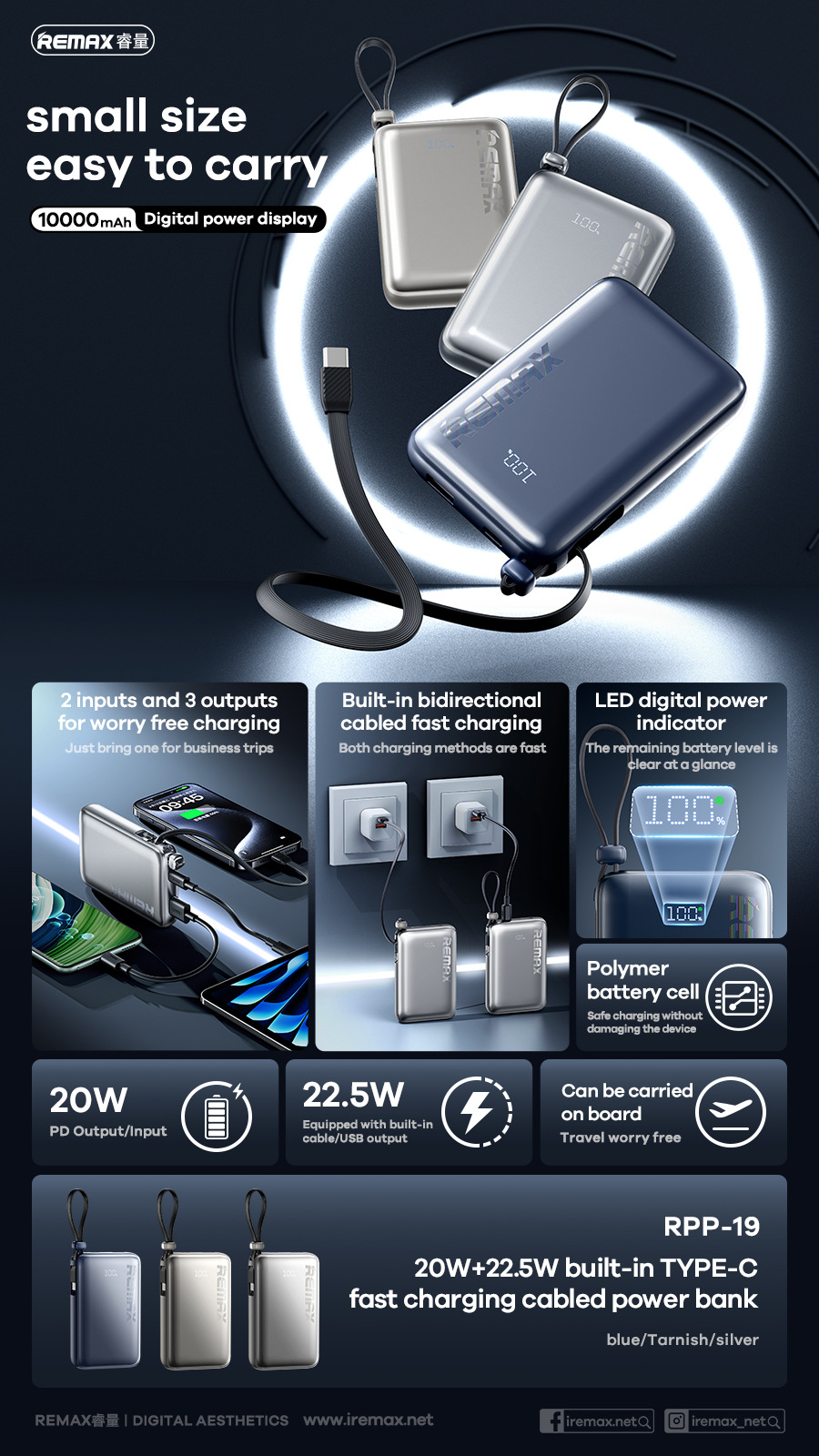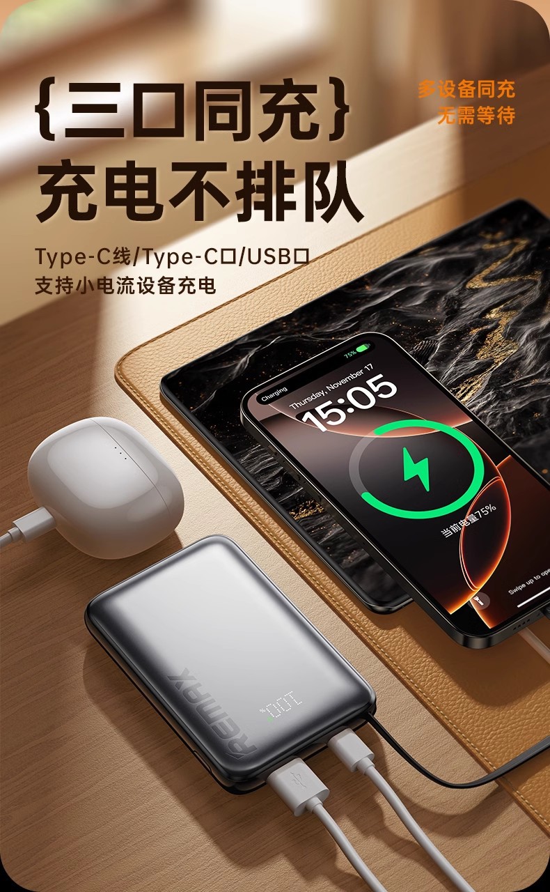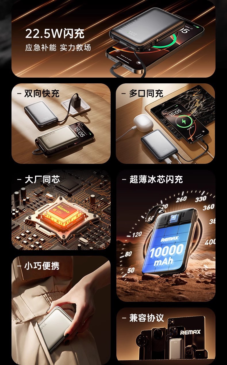 Remax con cable de carga rápida 10000mAh teléfono móvil pantalla digital fuente de alimentación móvil para Android Apple 3c