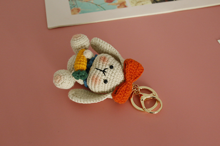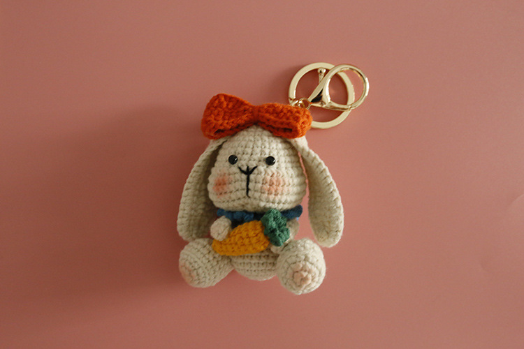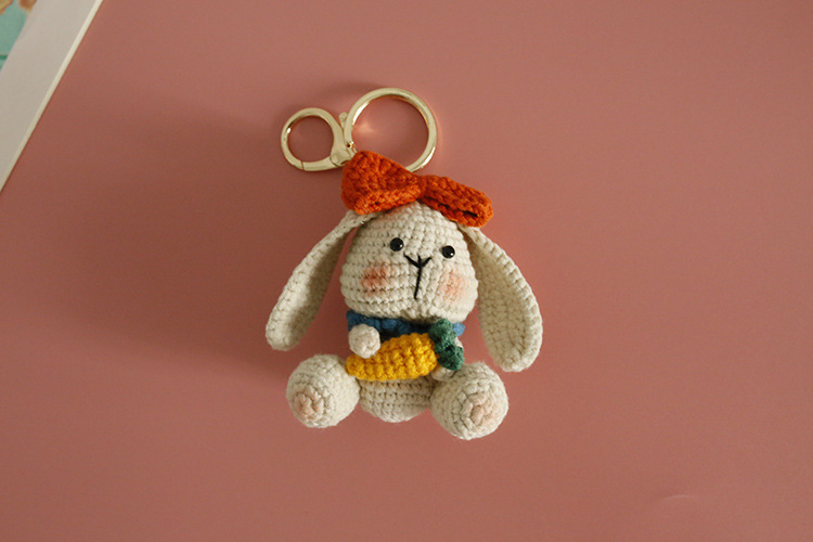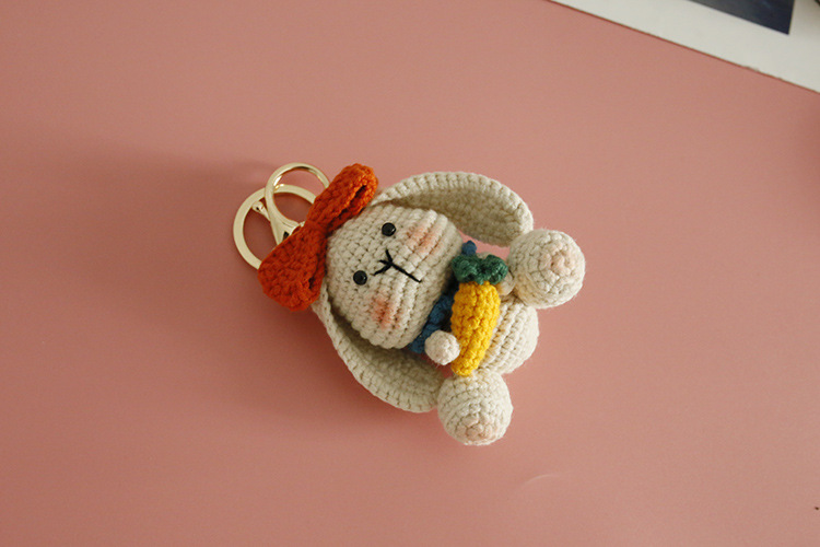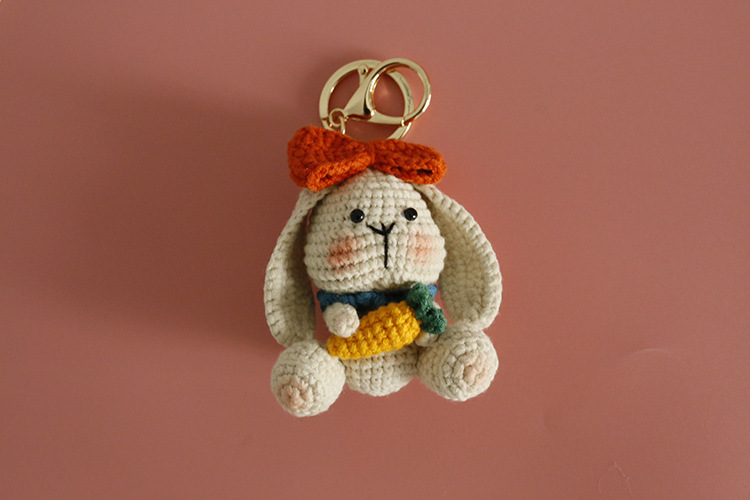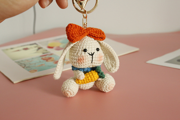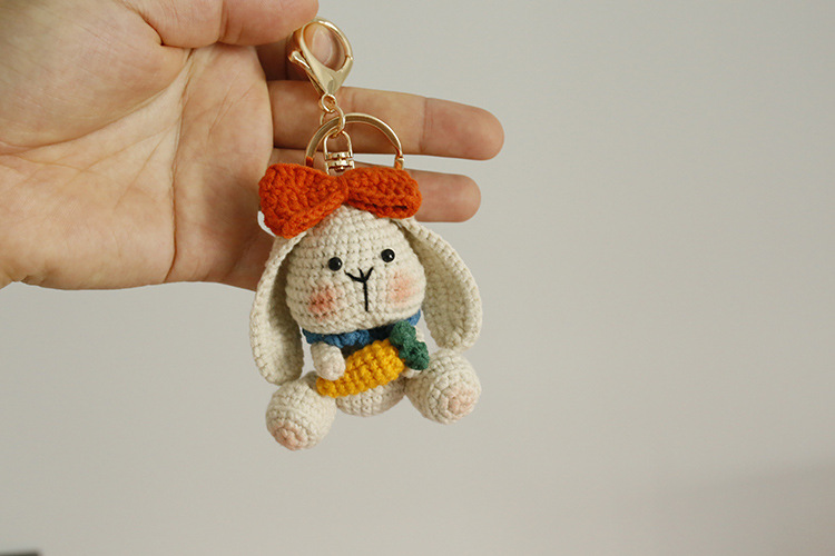 Nueva muñeca de conejo oreja tejida a mano exquisita lana ganchillo conejo colgante estilo retro adornos hechos a mano