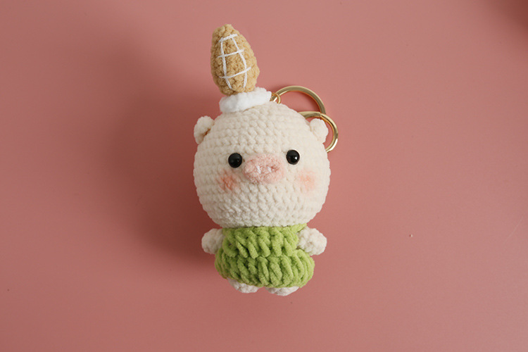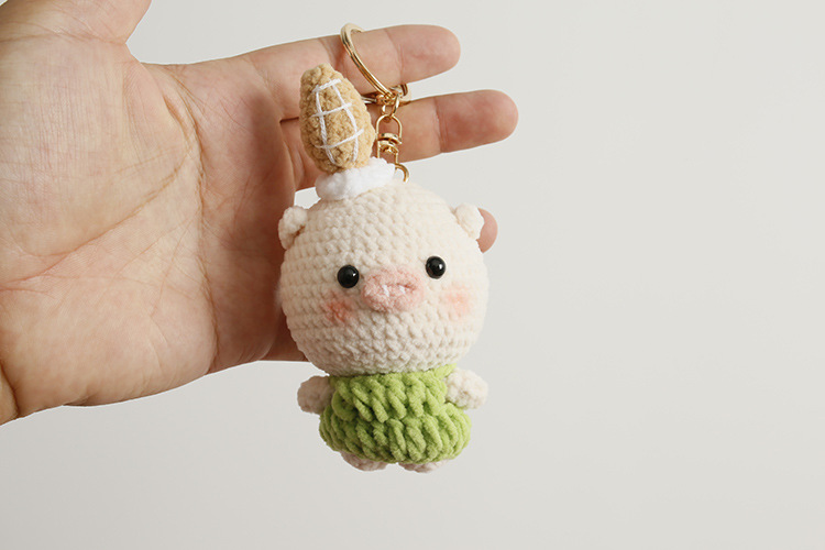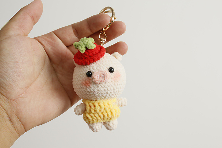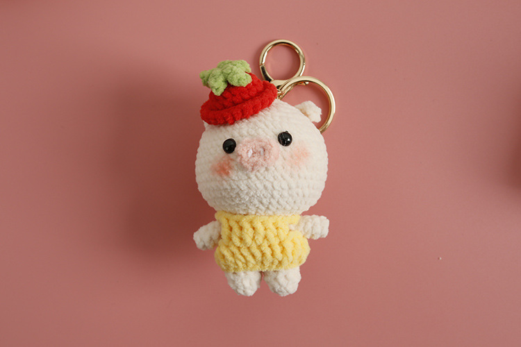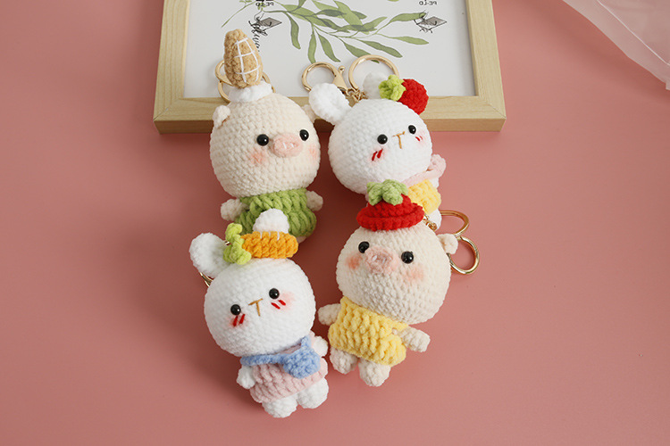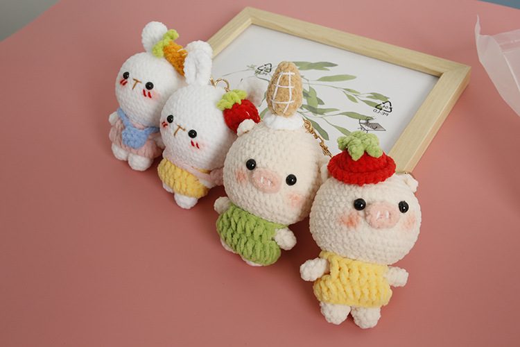 Caricatura encantadora tejida a mano conejo colgante lindo pequeño animal hermoso colgante gancho tejido cerdo grande