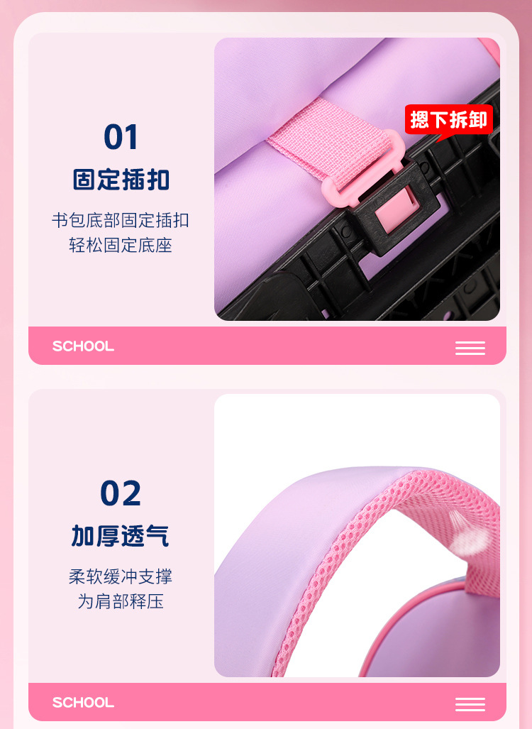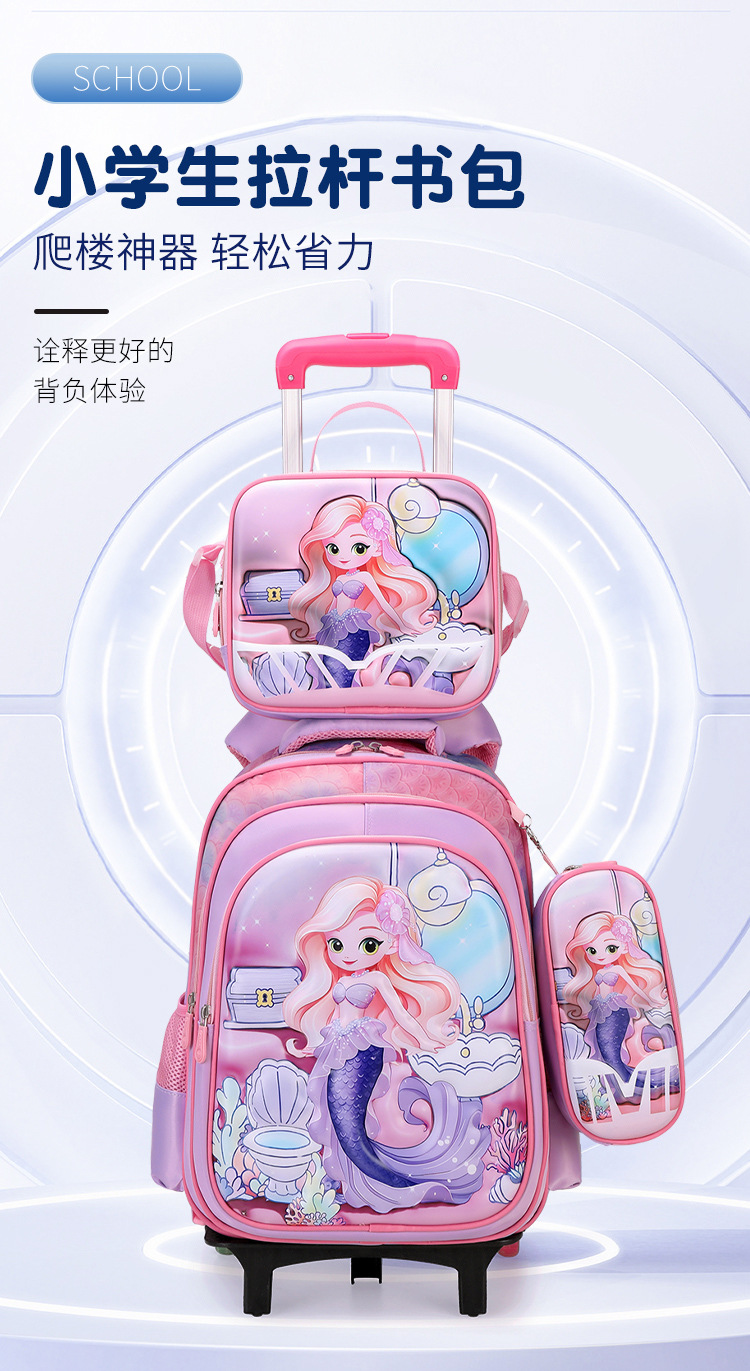 Fábrica de almacenamiento de estudiantes de primaria ligeros pueden cargar mochila de tirón cóncava mochila de cuero de dibujos animados de tres piezas conjunto de mochila