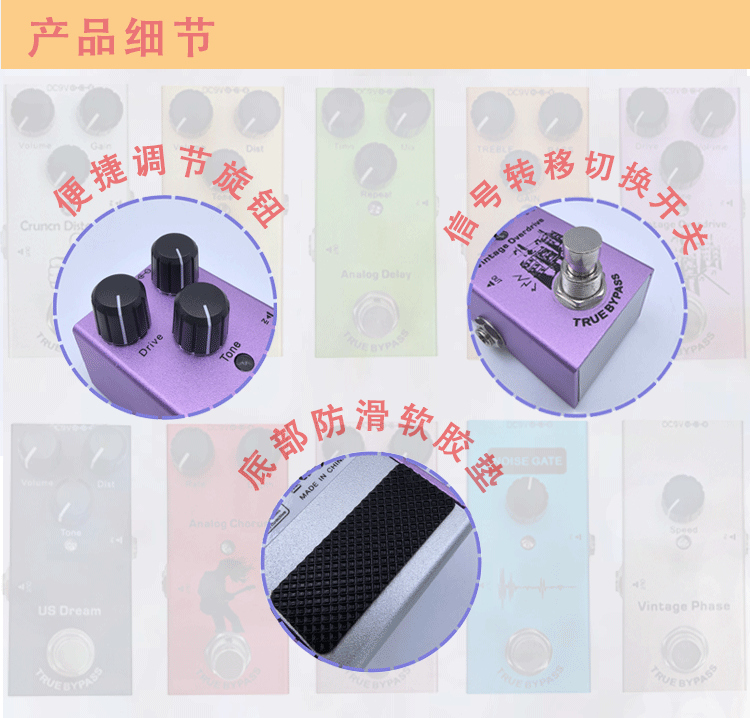 Guitarra eléctrica de un solo bloque de efecto al por mayor spot profesional personalizado de distorsión de sobrecarga de retardo coro reducción de ruido instrumento analógico