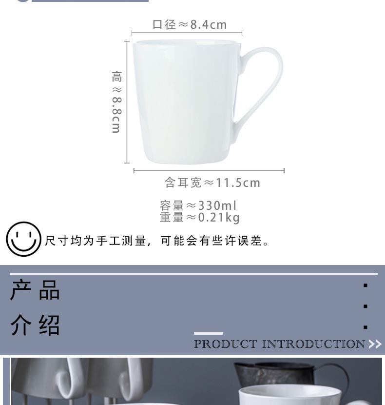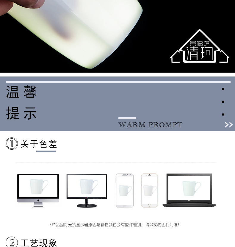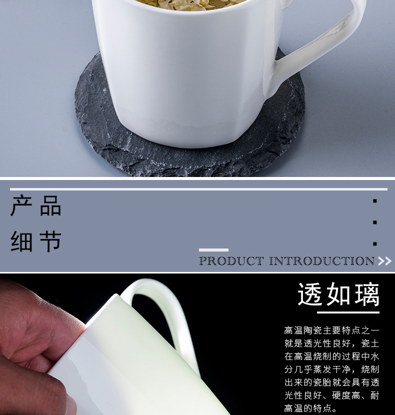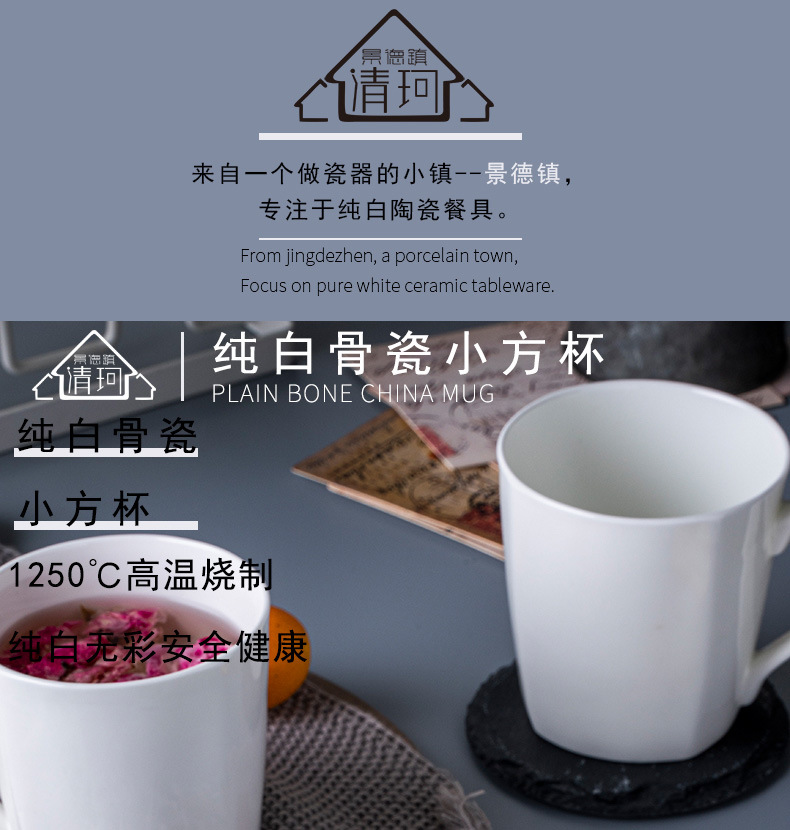 Jingdezhen marca taza de agua taza de óseo de porcelana blanca taza de agua fría de cerámica de oficina esmaltada taza de té de color taza de hotel
