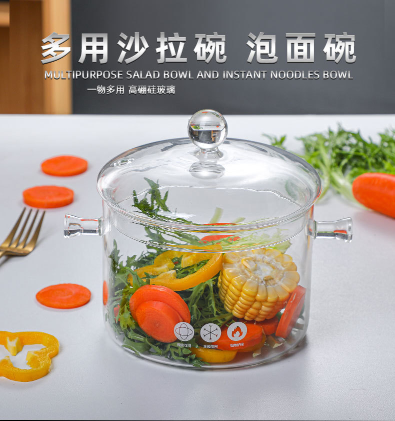 Olla de vidrio en nombre de la olla de salud con alto contenido de boro, vidrio grueso resistente al calor, olla de sopa guisada con tapa, café, olla de vino caliente