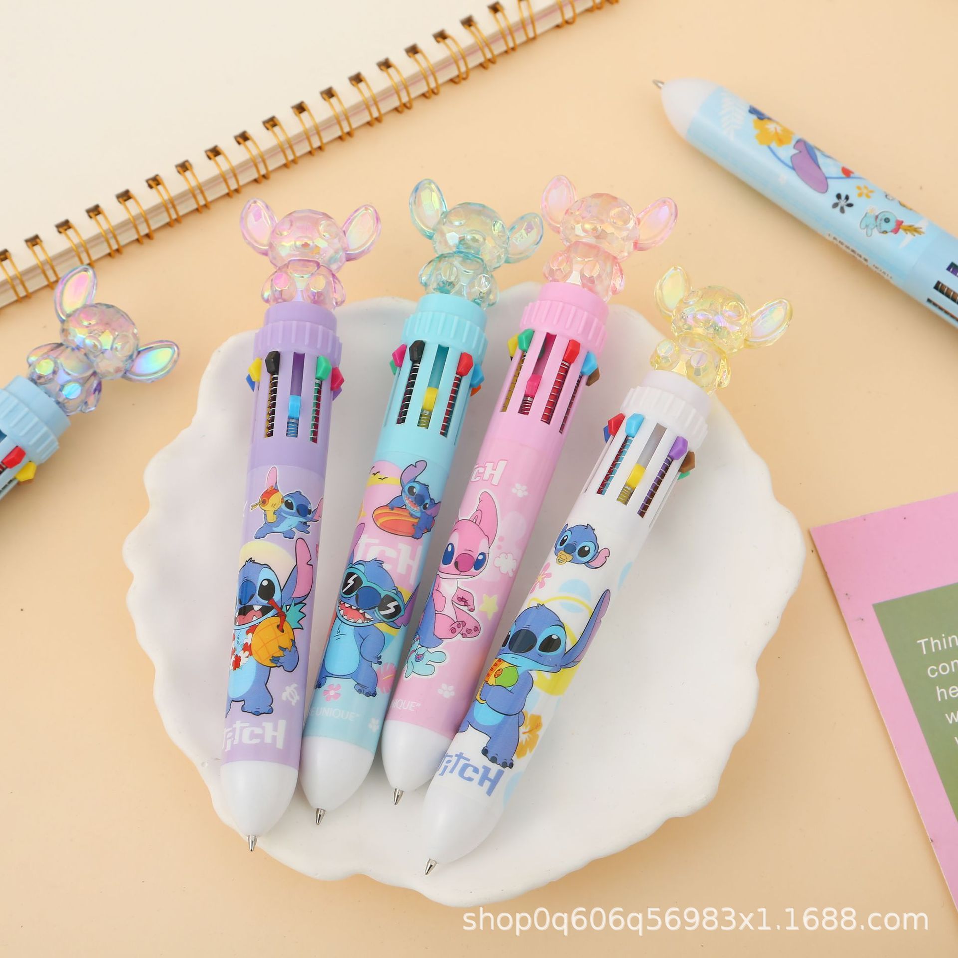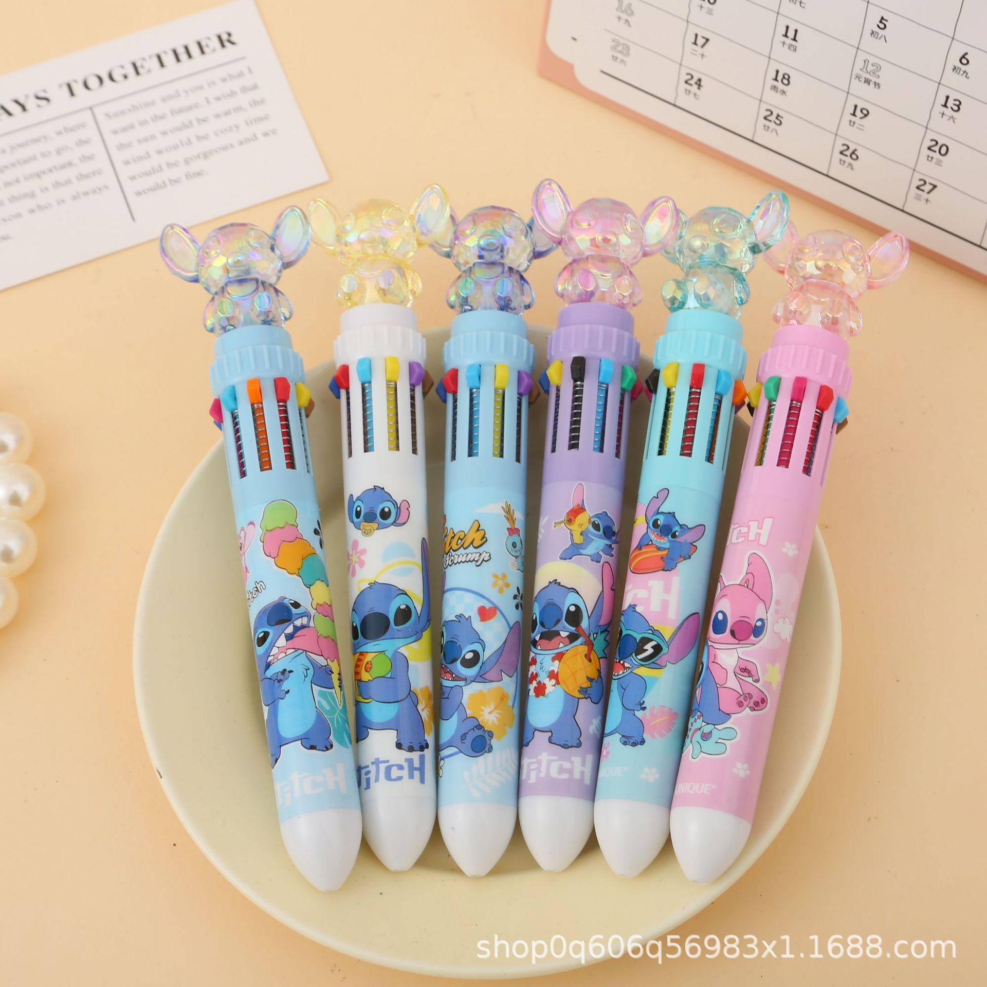 Crystal Stitch presiona el bolígrafo multicolor en uno, los estudiantes de primaria hacen dibujos animados lindos para marcar el color de la cuenta a mano