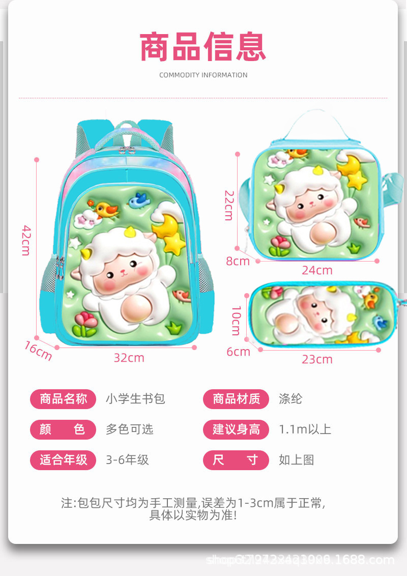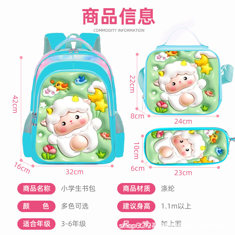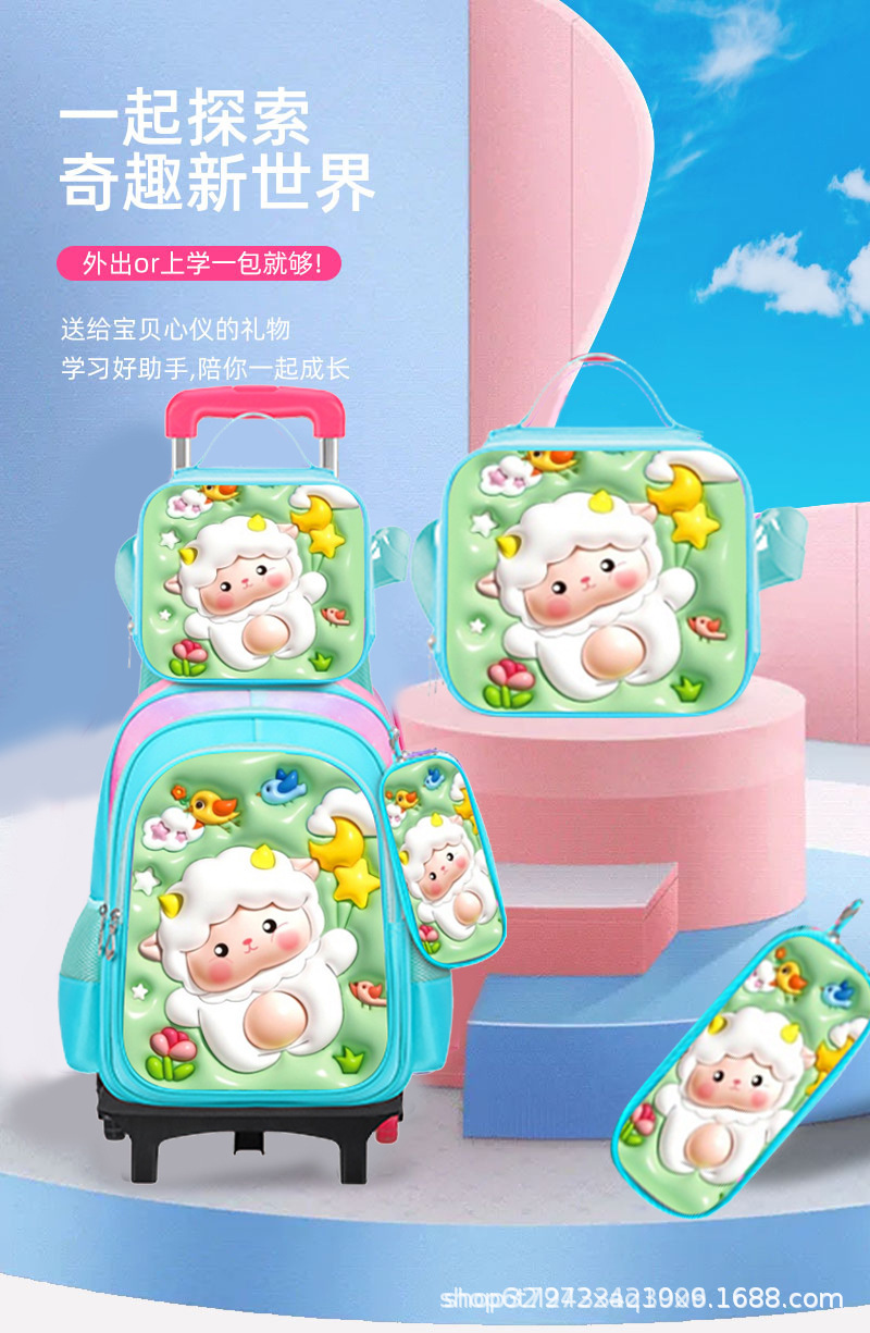 Nuevo bolso escolar impermeable de cuero brillante expandido para niños transfronterizos, carrito, bolso escolar de tres piezas para estudiantes, mochila de dibujos animados