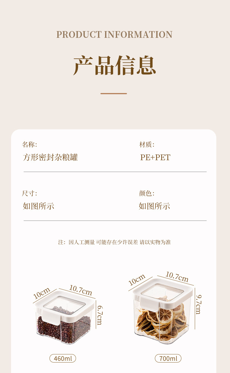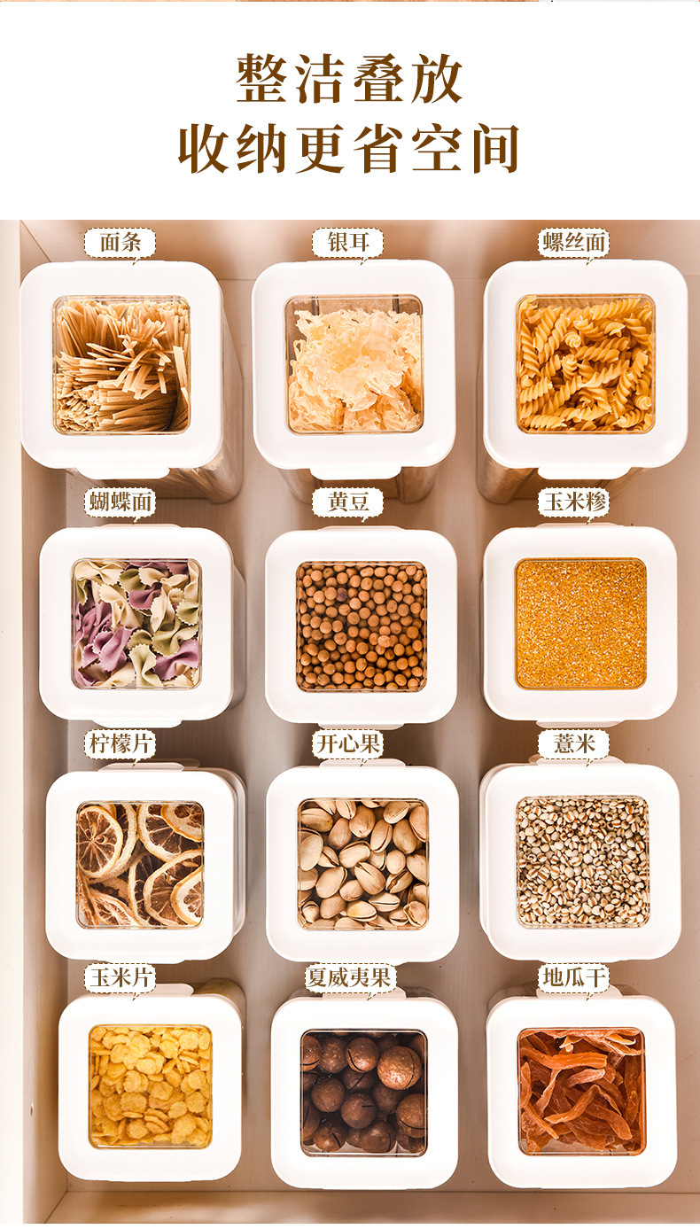 Tarro sellado Caja de almacenamiento de granos integrales Cocina doméstica Productos alimenticios Nueces de grado alimenticio Frijoles Almacenamiento de plástico Tanque de almacenamiento
