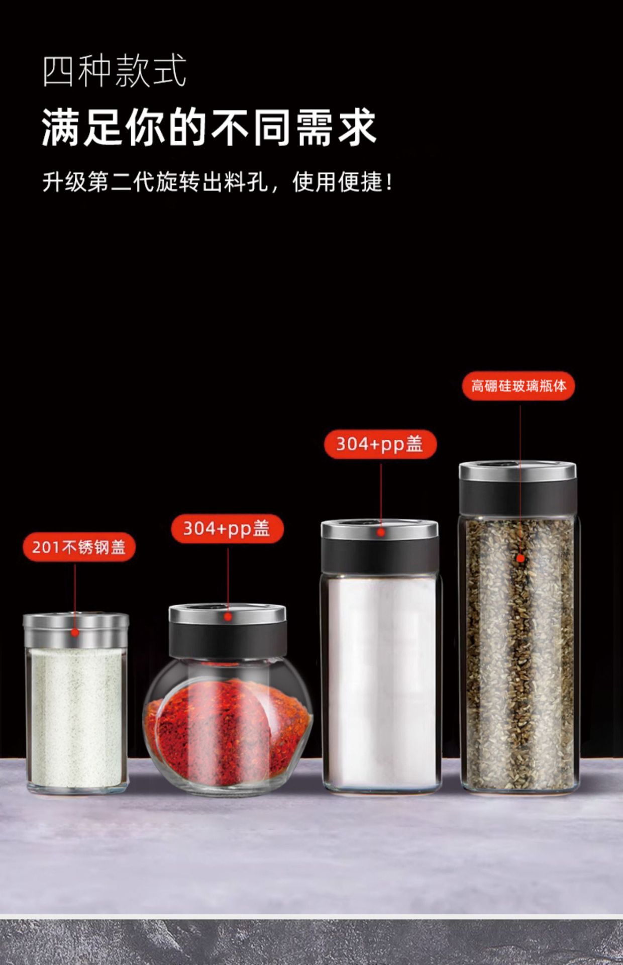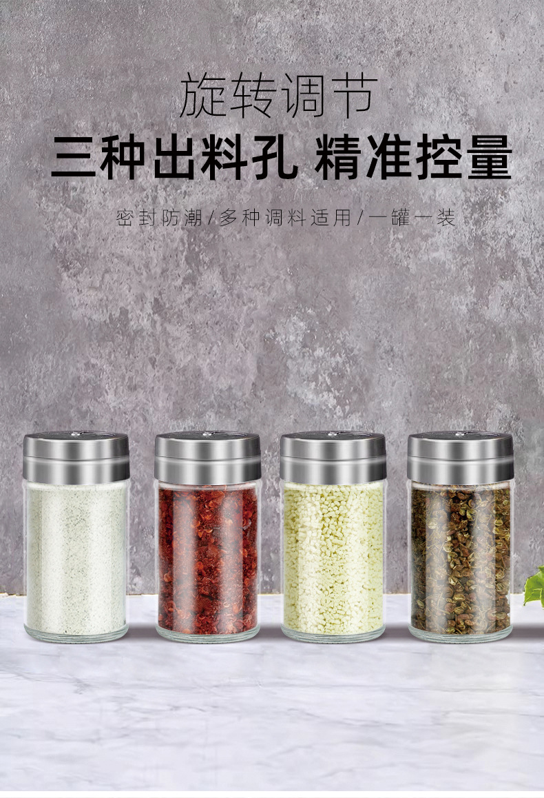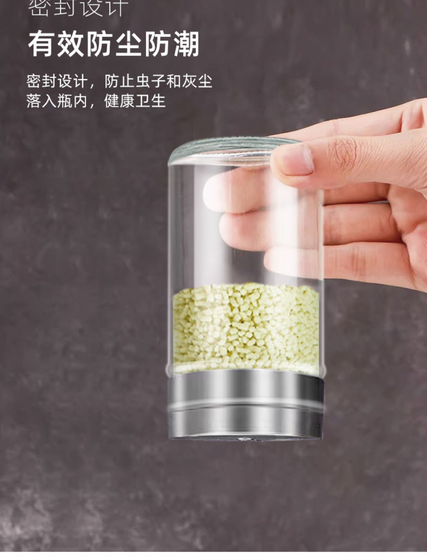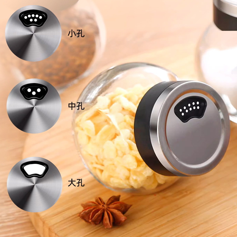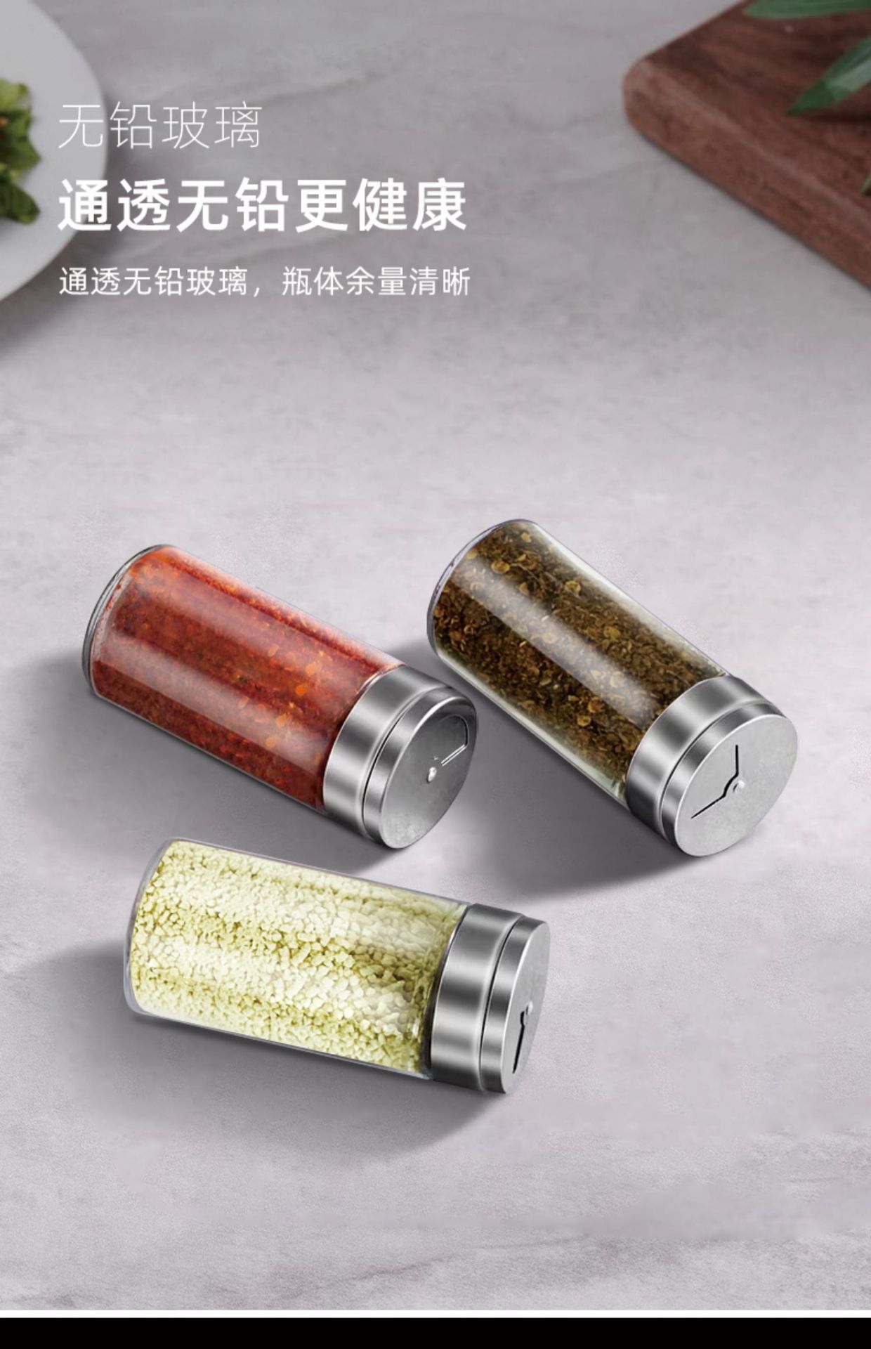 Botella de espolvorín de vidrio sin plomo de cocina, tapa porosa giratoria, botella de condimento especial para barbacoa, tubo de polvo de pimienta, tubo de caja de palillo de dientes
