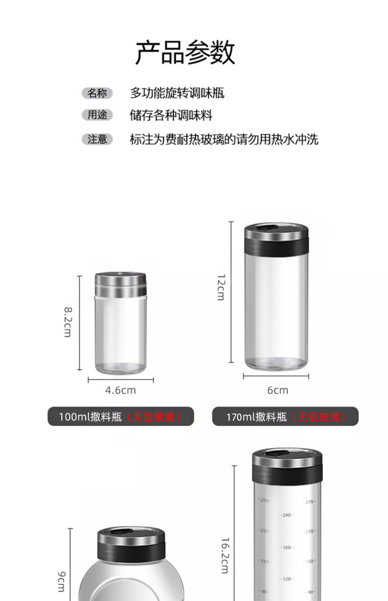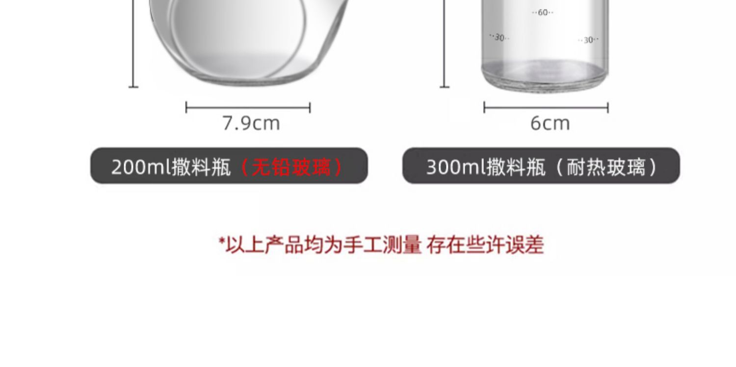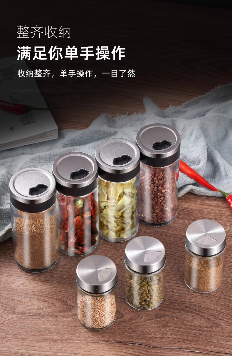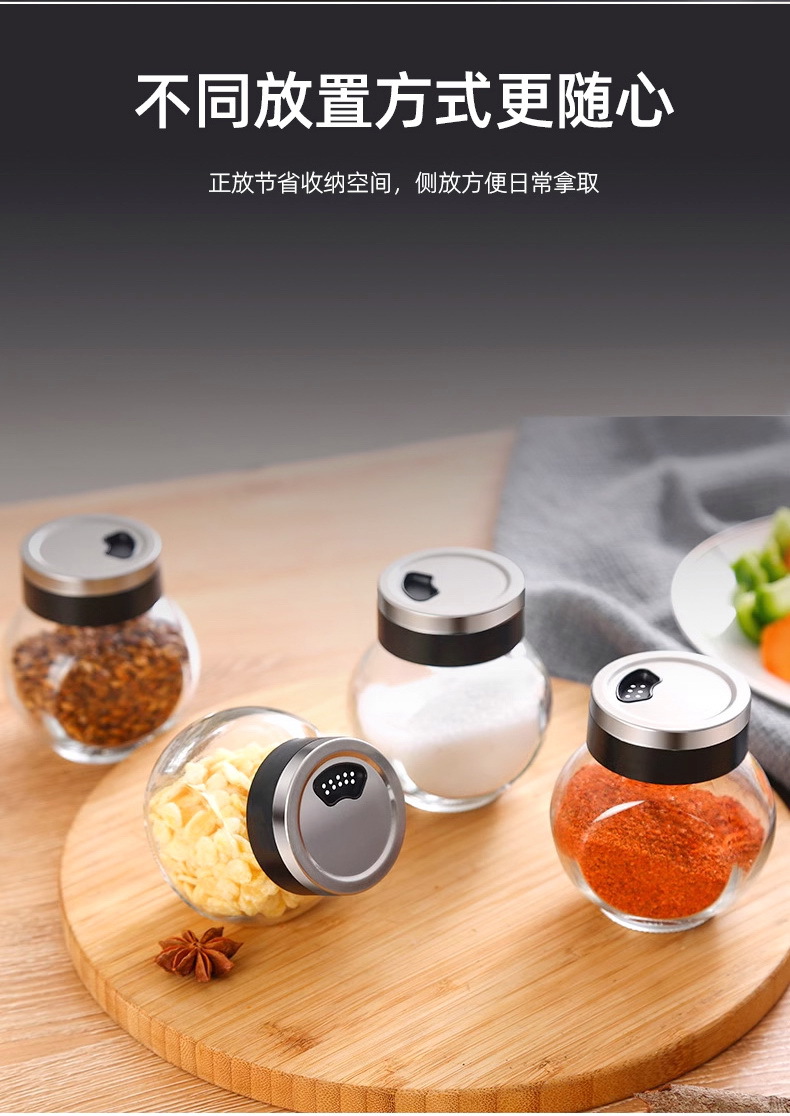Botella de espolvorín de vidrio sin plomo de cocina, tapa porosa giratoria, botella de condimento especial para barbacoa, tubo de polvo de pimienta, tubo de caja de palillo de dientes