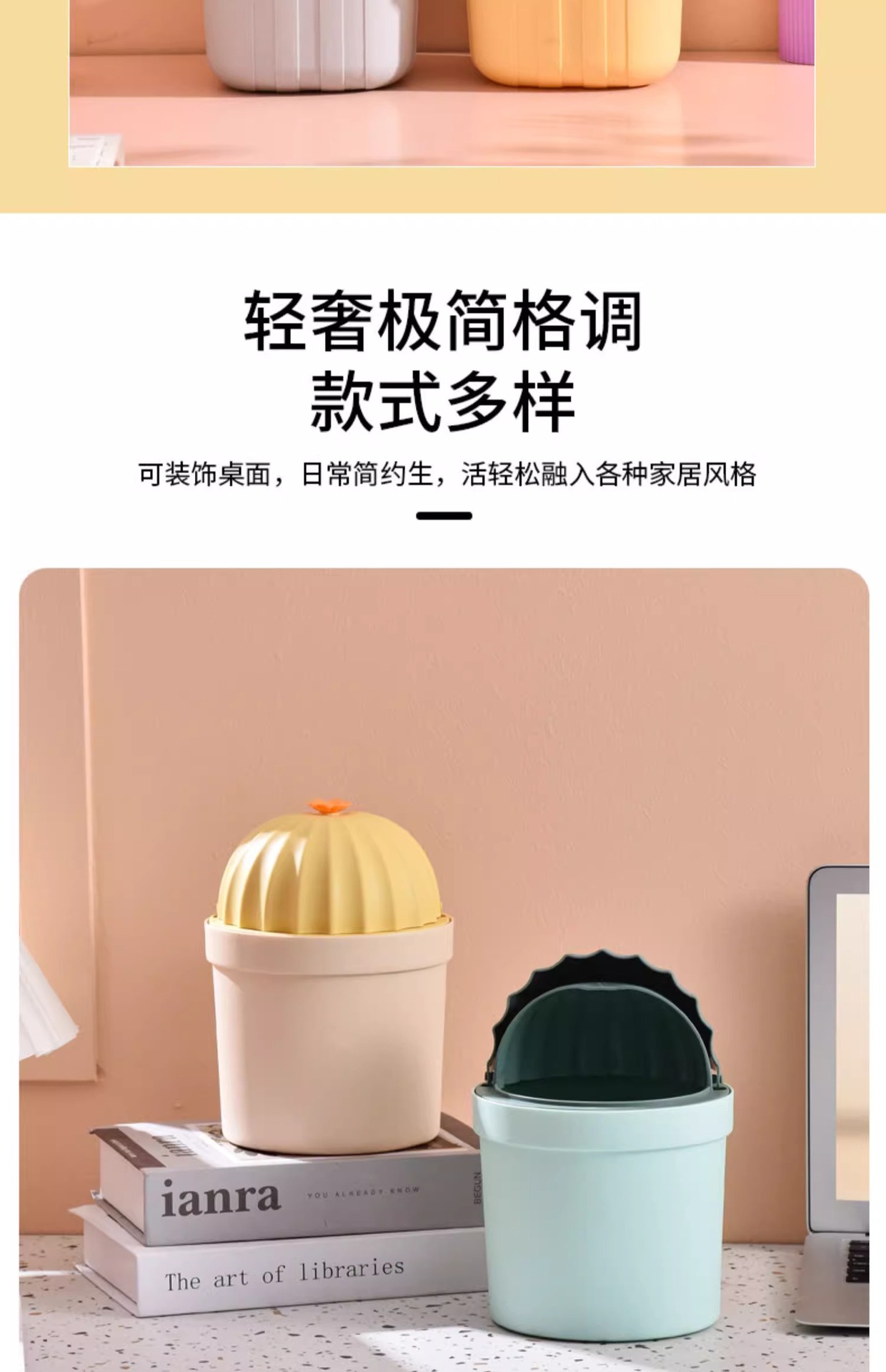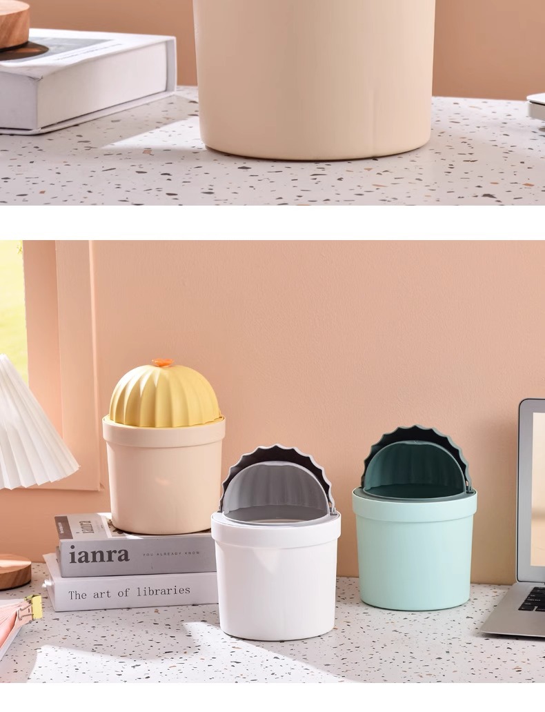 Desktop Bote de basura Oficina creativa con tapa Hogar Dormitorio Sala de estar Cocina Barril de basura Barril sanitario Cesta de papel de mesa