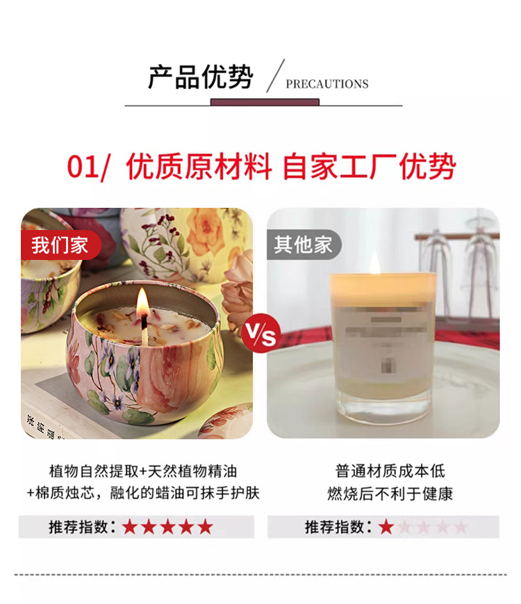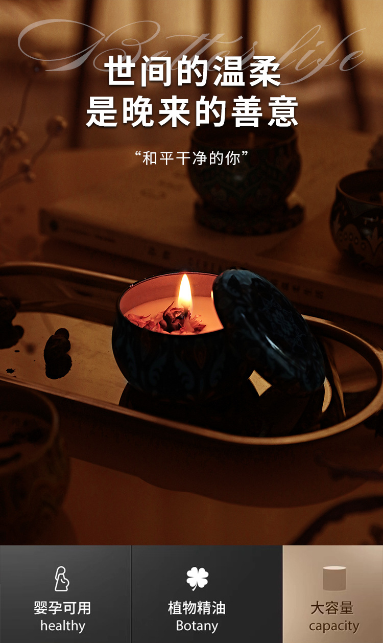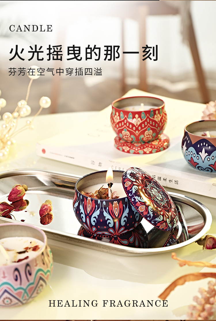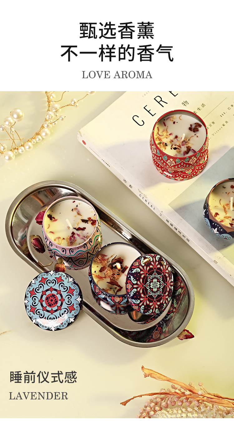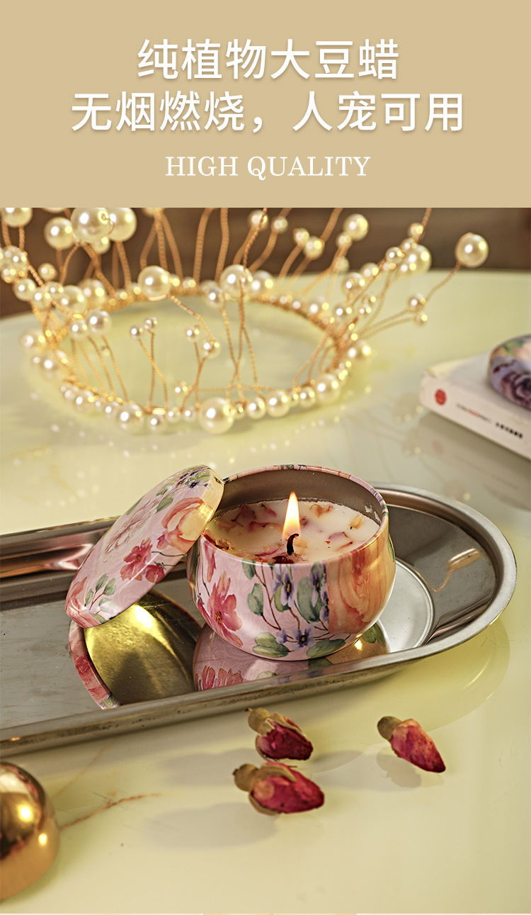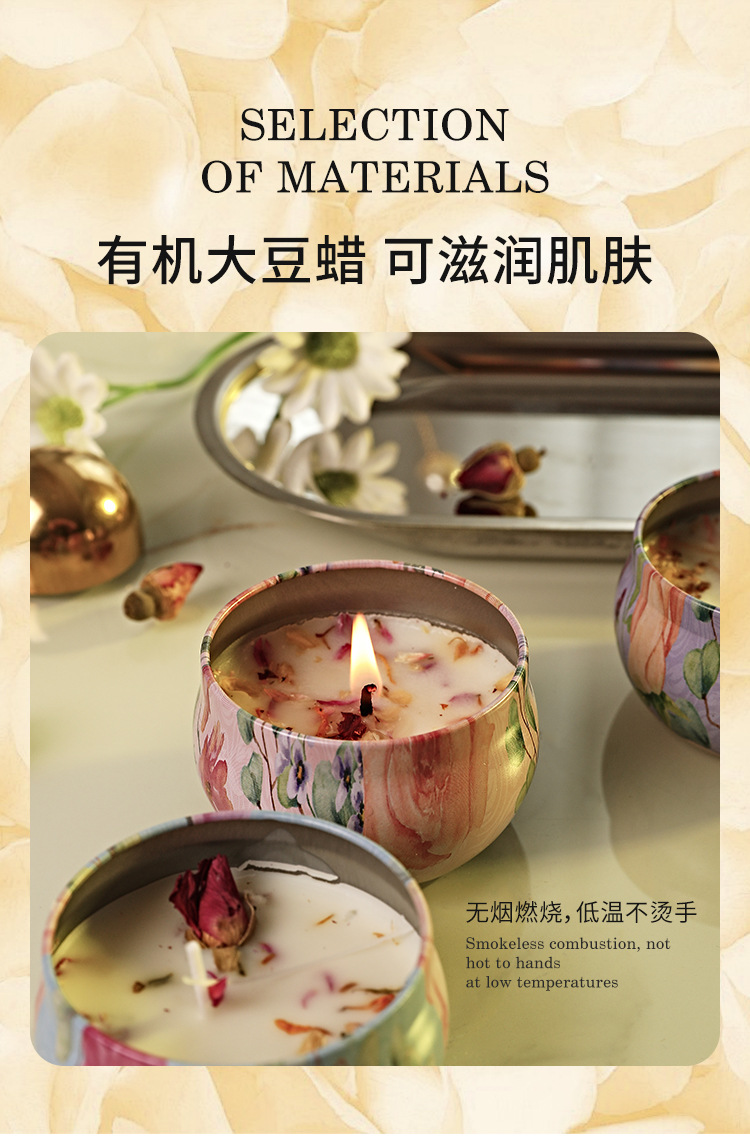 Caja de lata de vela perfumada de flores secas para un hogar seguro, dormitorio, cumpleaños, fragancia romántica, aceite esencial, atmósfera duradera, desodorización interior