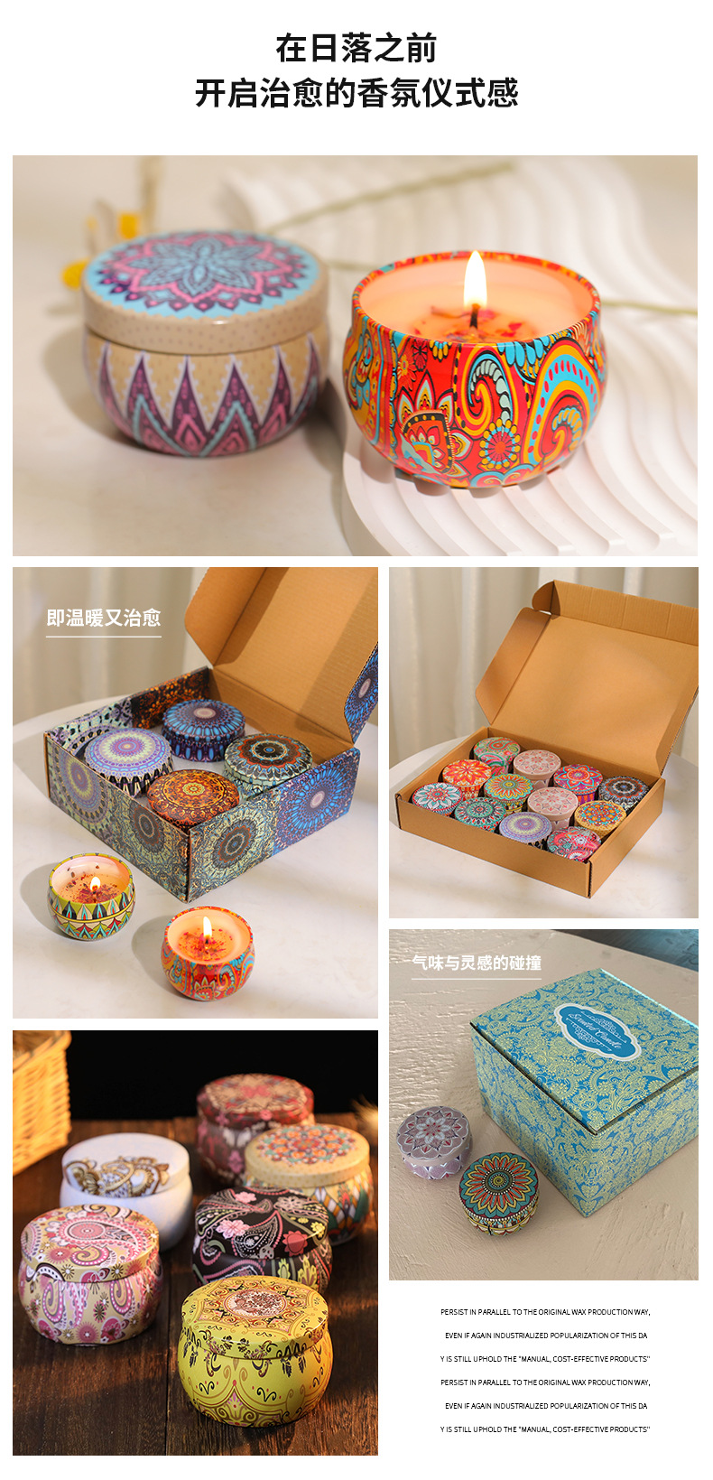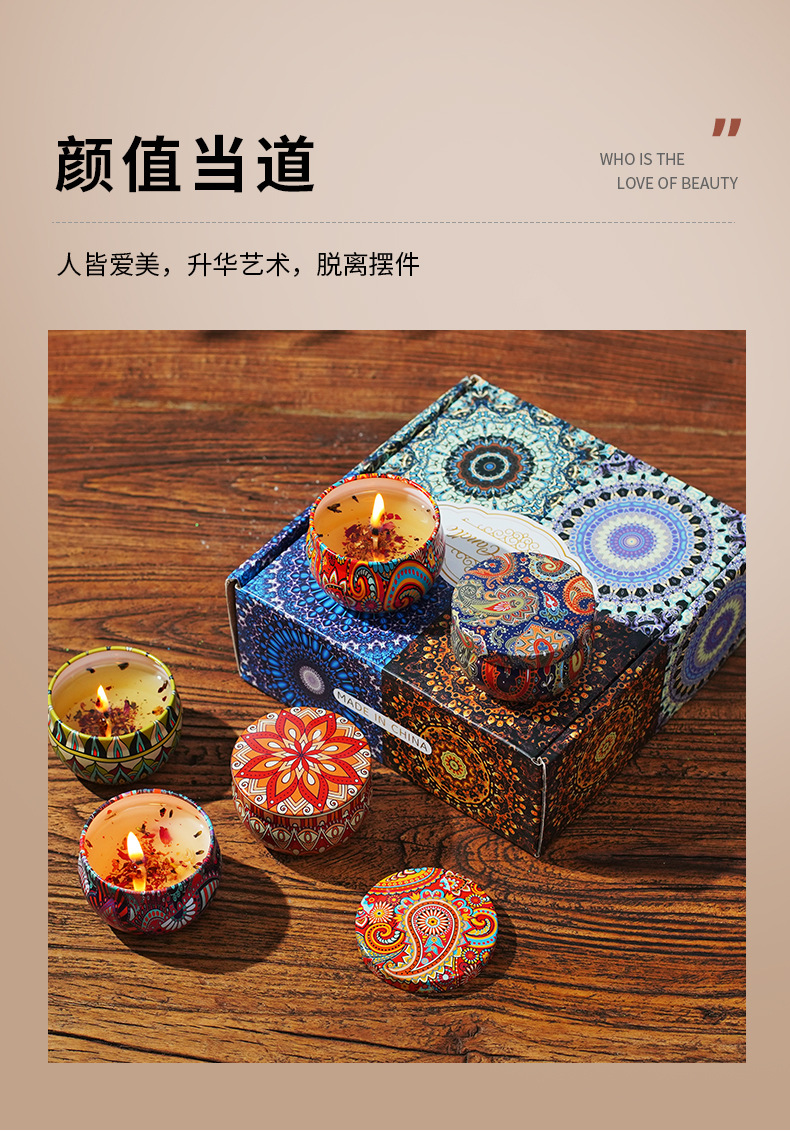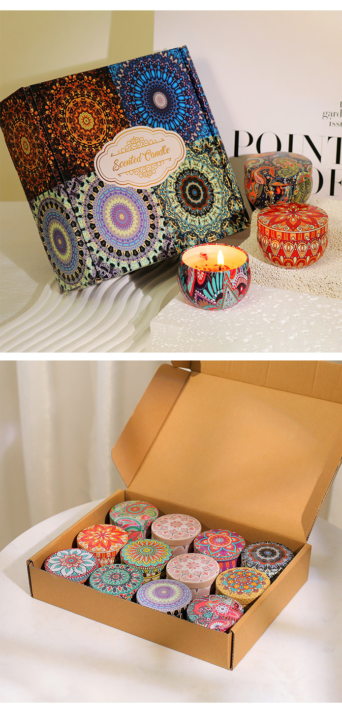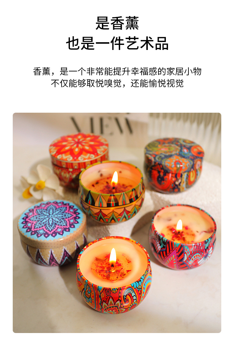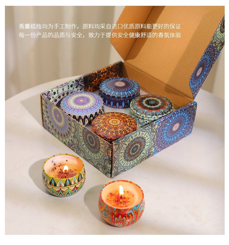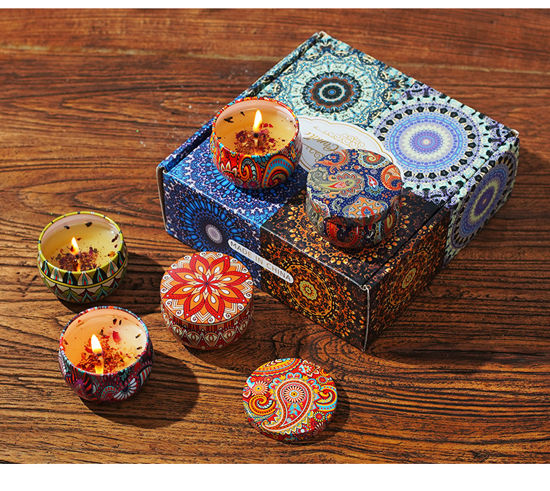 Étnico flor seca aromaterapia vela caja de hierro Regalo de Cumpleaños dormitorio decoración dormir fragancia vela caja de regalo al por mayor