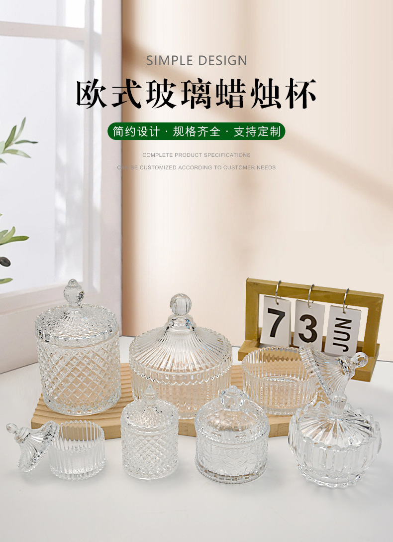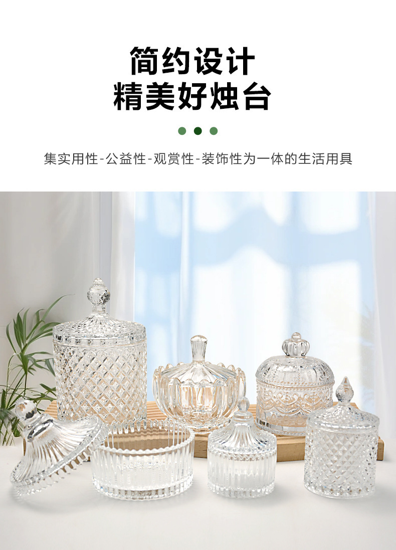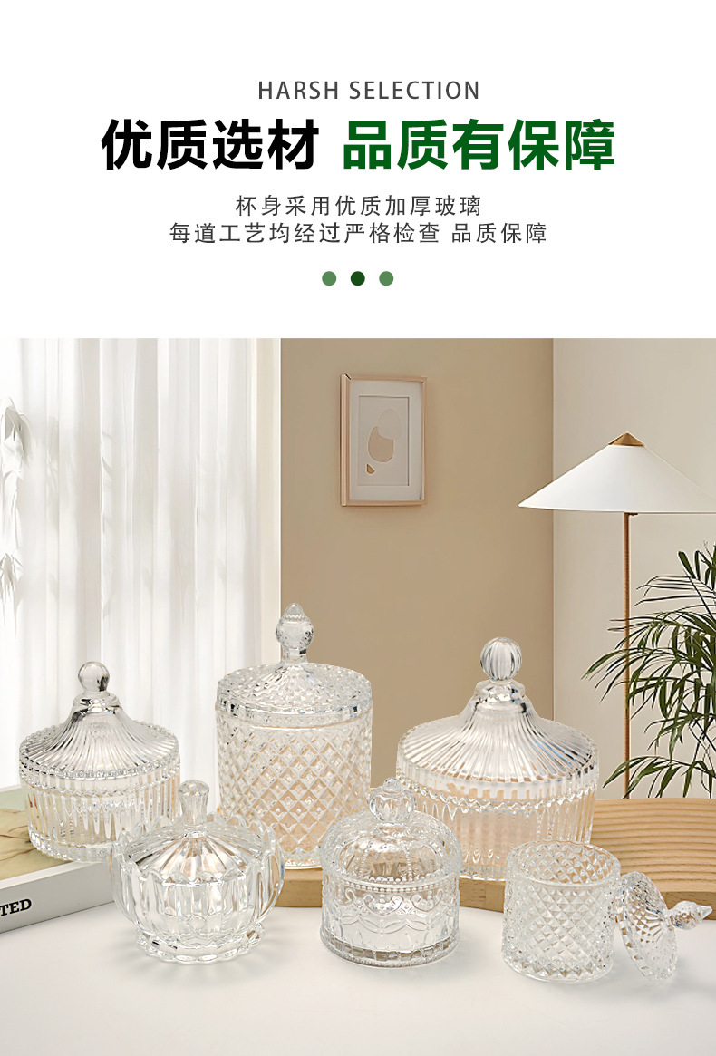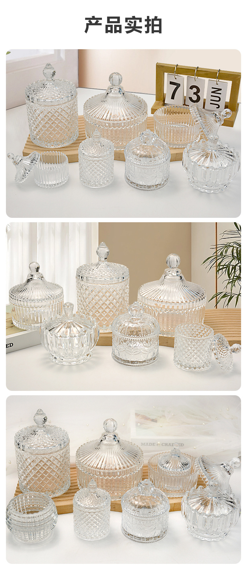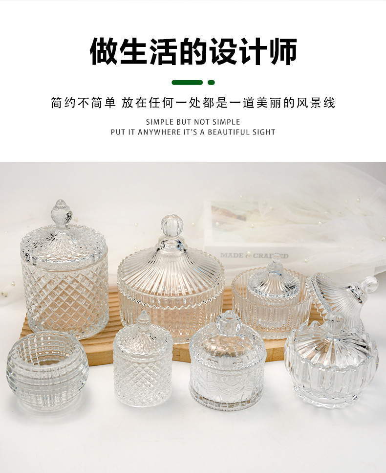 Creativa europea de alto valor visual, latas de vidrio transparente, latas de dulces con tapa, latas de azúcar cúbico, latas de almacenamiento de algodón domésticas, tazón desmagnetizante