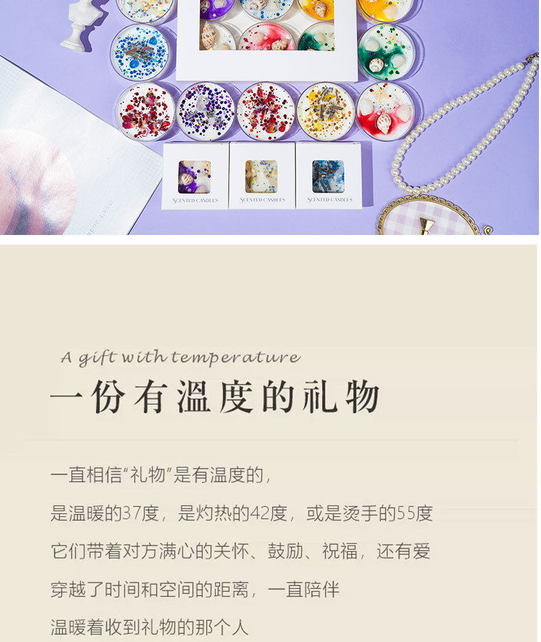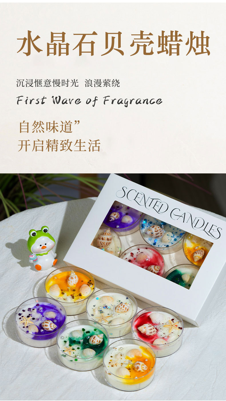 Conchas de cera de banana concha de color cera de soja cera de flores secas 6 tazas de vela caja de regalo