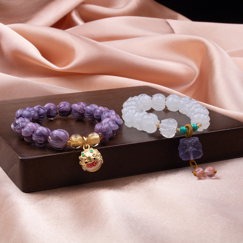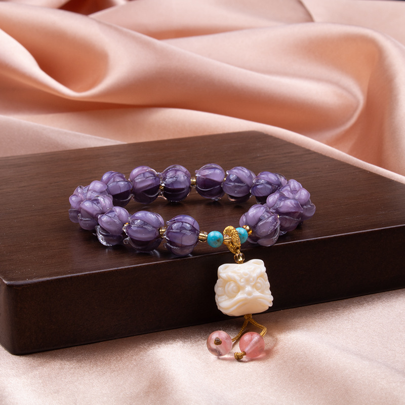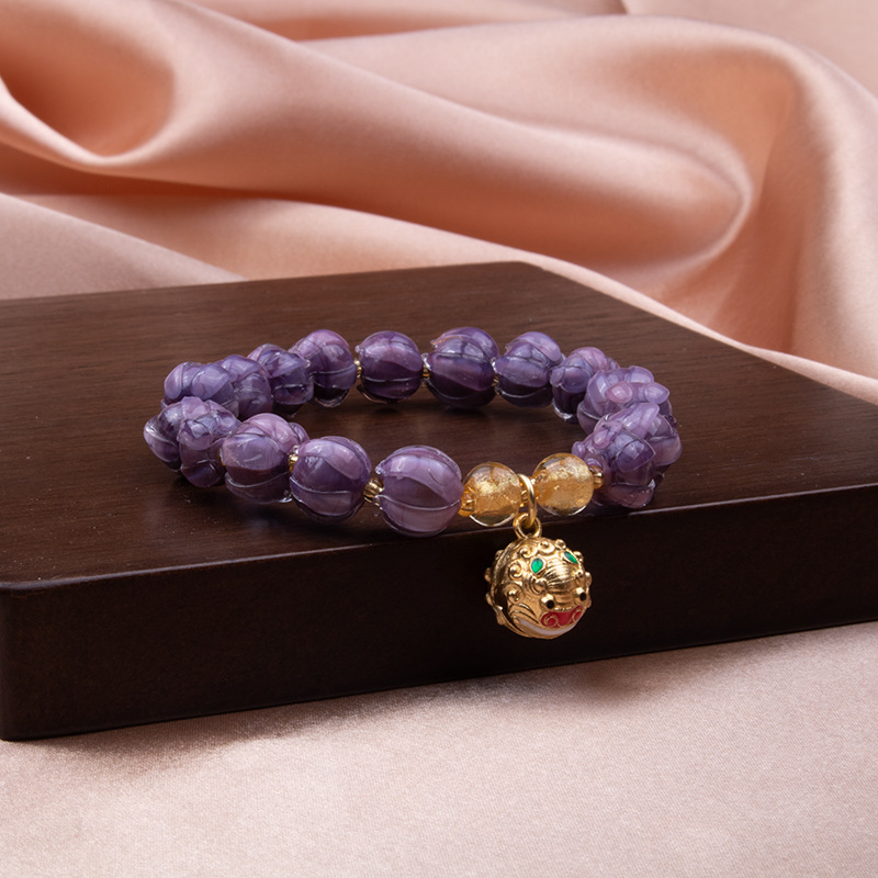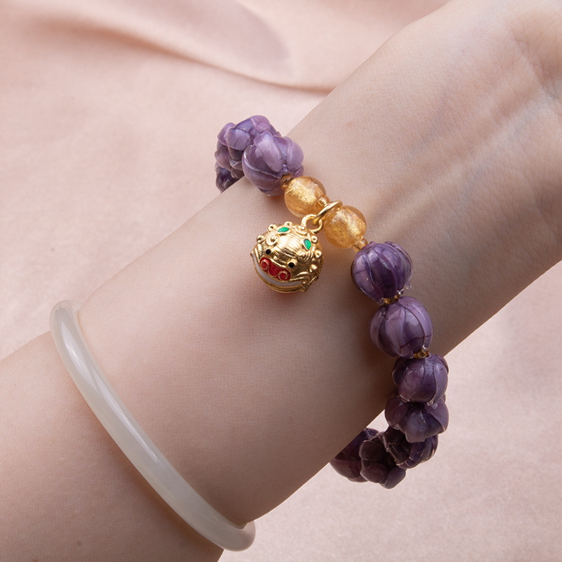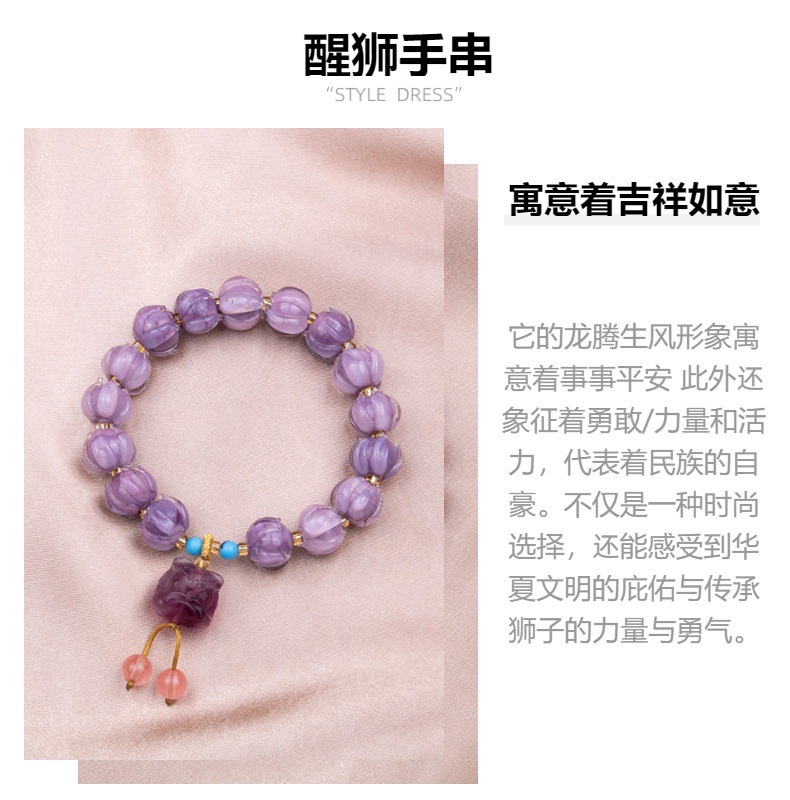 El año del dragón nueve templos de fuego púrpura con la misma pulsera de loto púrpura crepúsculo despierta león brazalete jugar joyerías al por mayor león campana