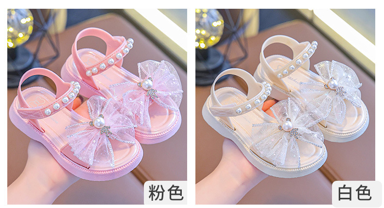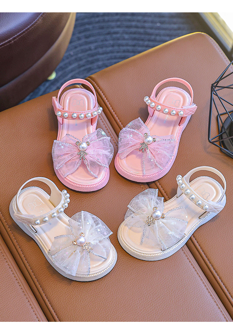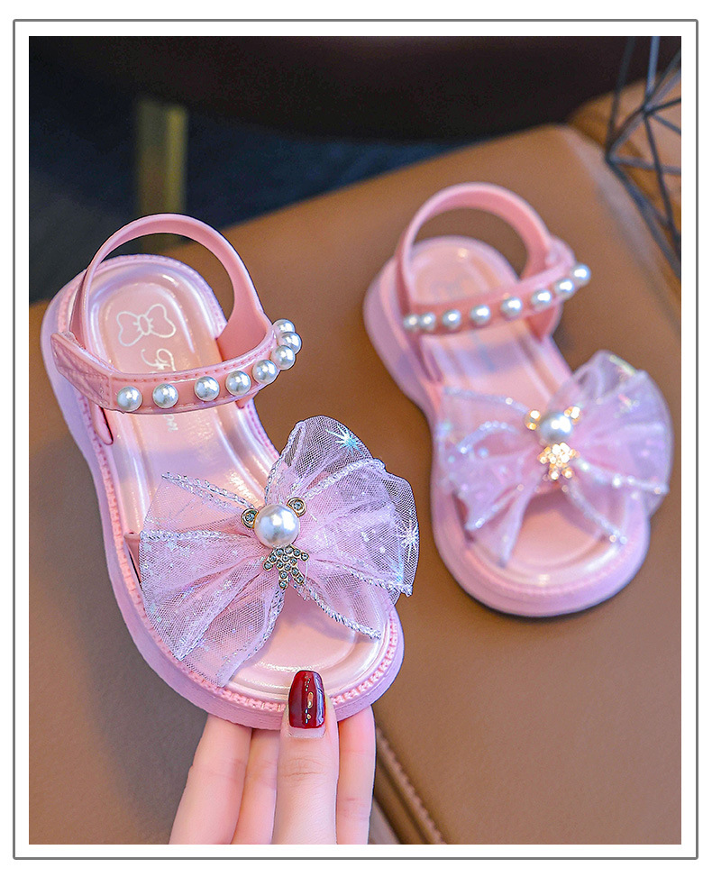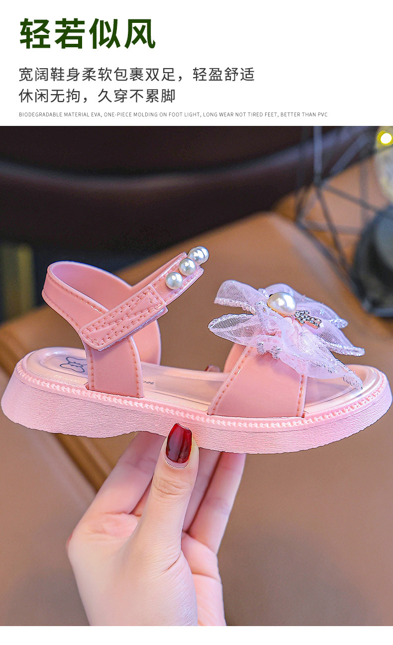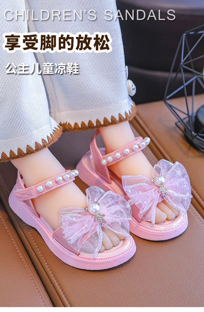Nuevas sandalias de niñas de verano 2024 niños velcro de base suave zapatos princesa arco pequeño, mediano y grande niña de verano