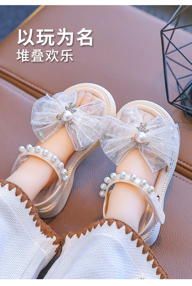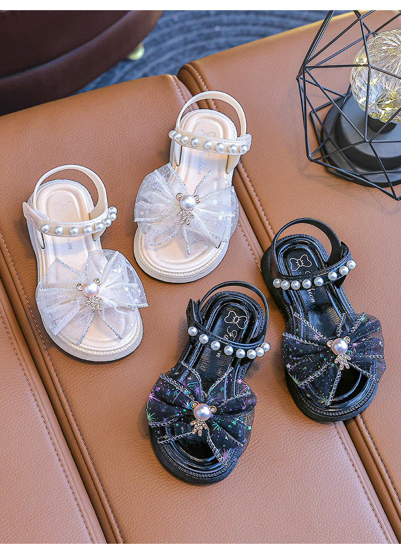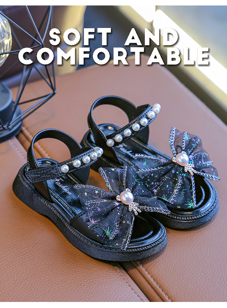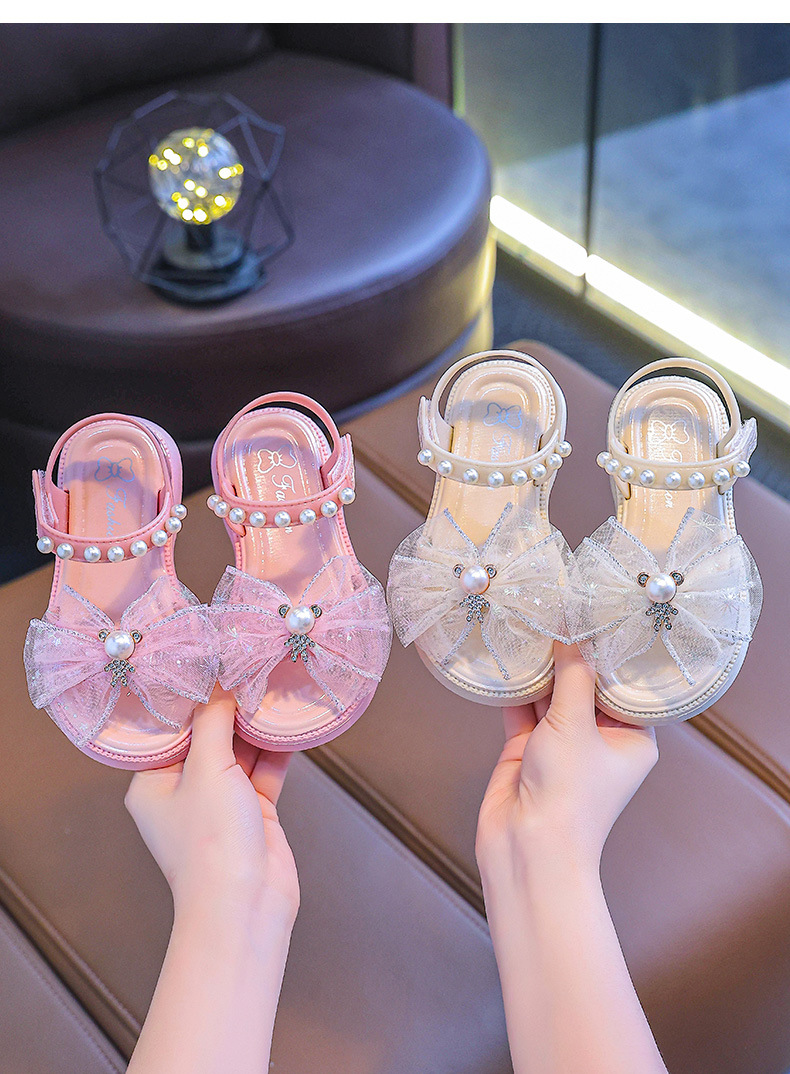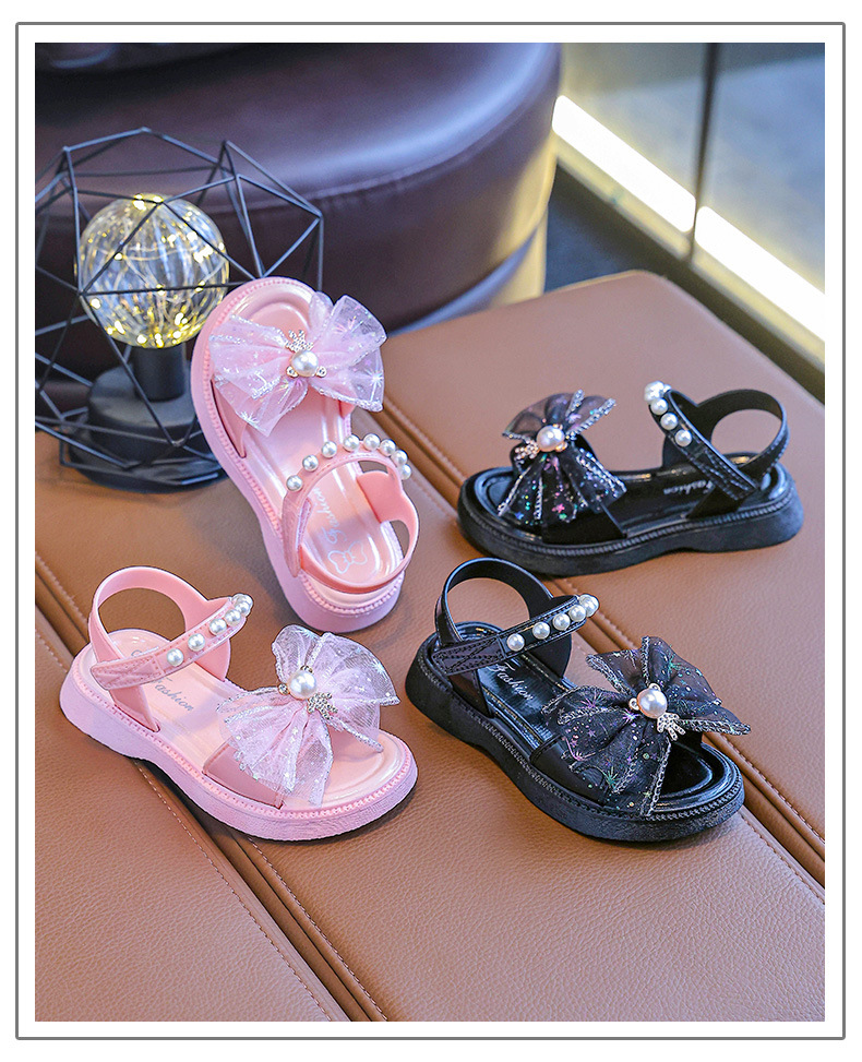 Nuevas sandalias de niñas de verano 2024 niños velcro de base suave zapatos princesa arco pequeño, mediano y grande niña de verano