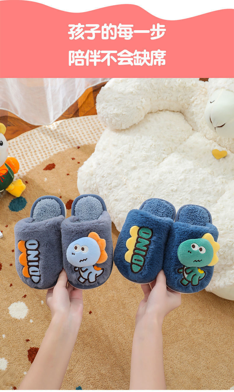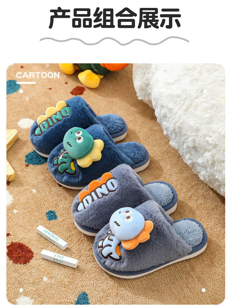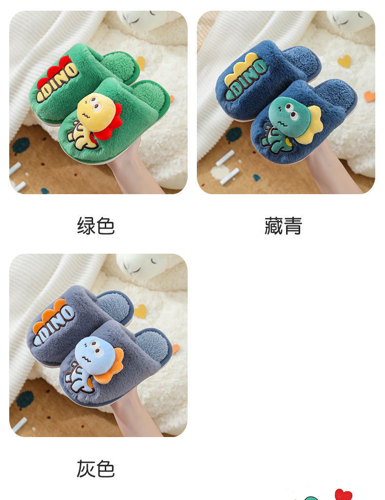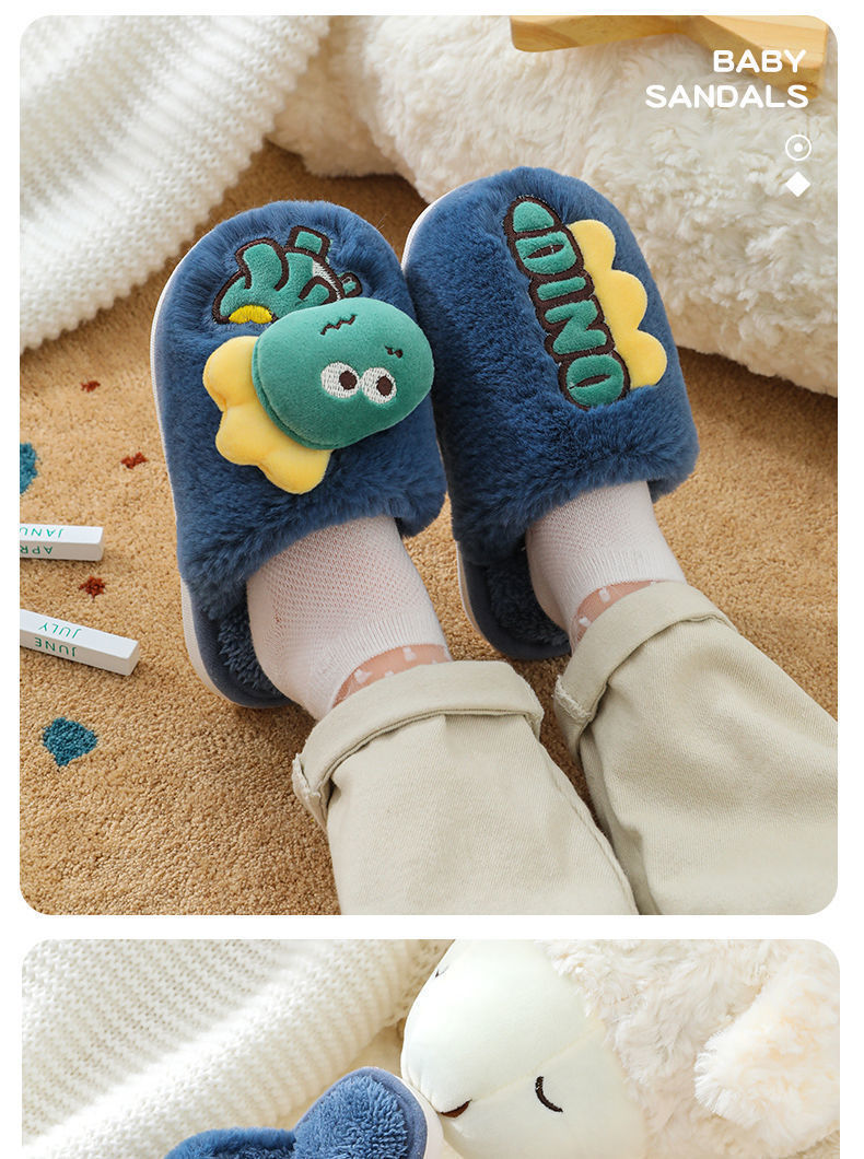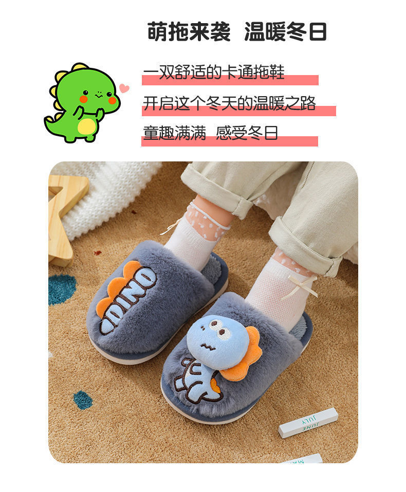 Zapatillas de piso de invierno para niños de dibujos animados de fondo suave casa lindo dinosaurio cálido peludo Grandes Medianas y pequeñas Zapatillas de algodón para bebés
