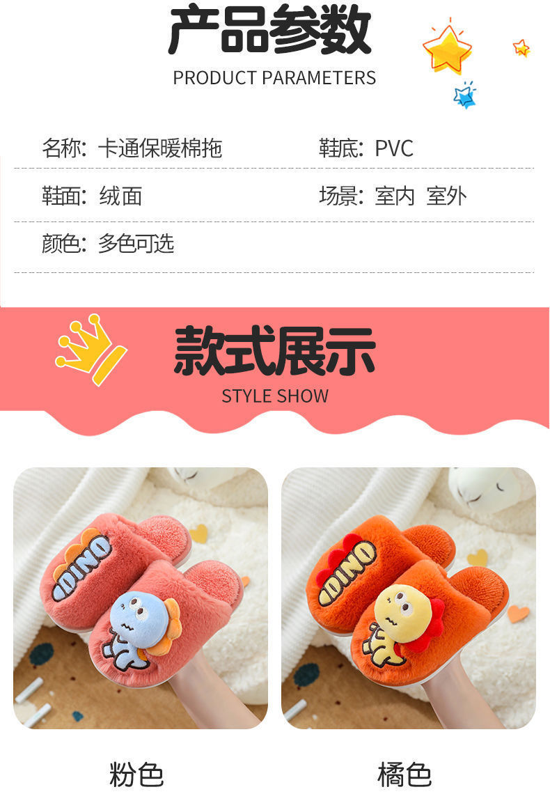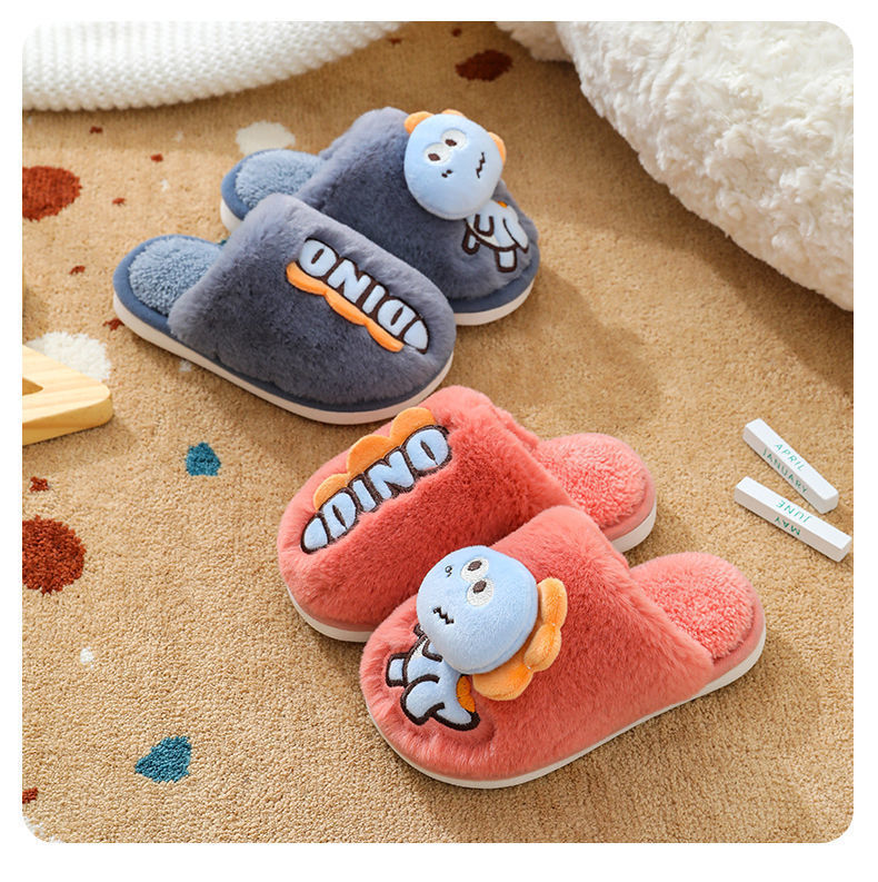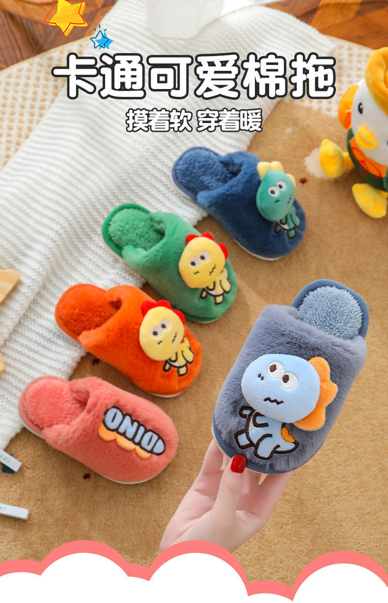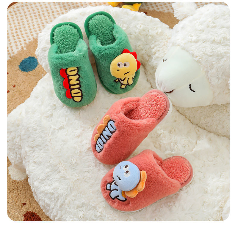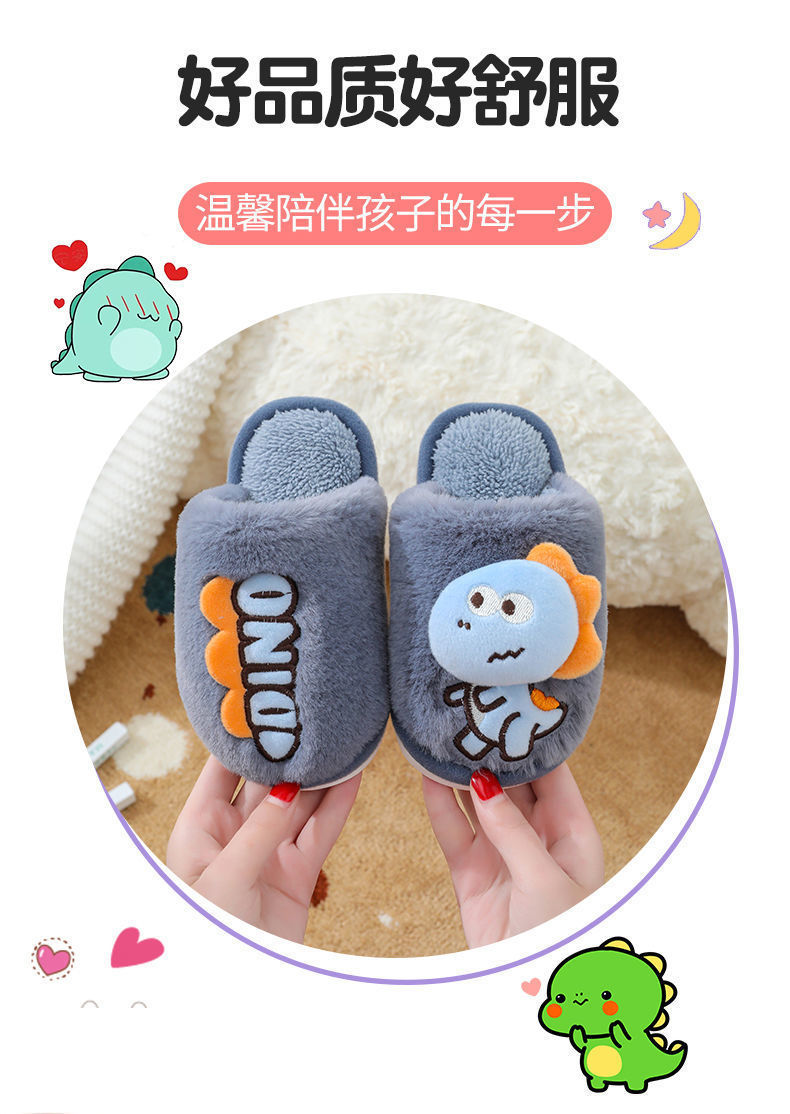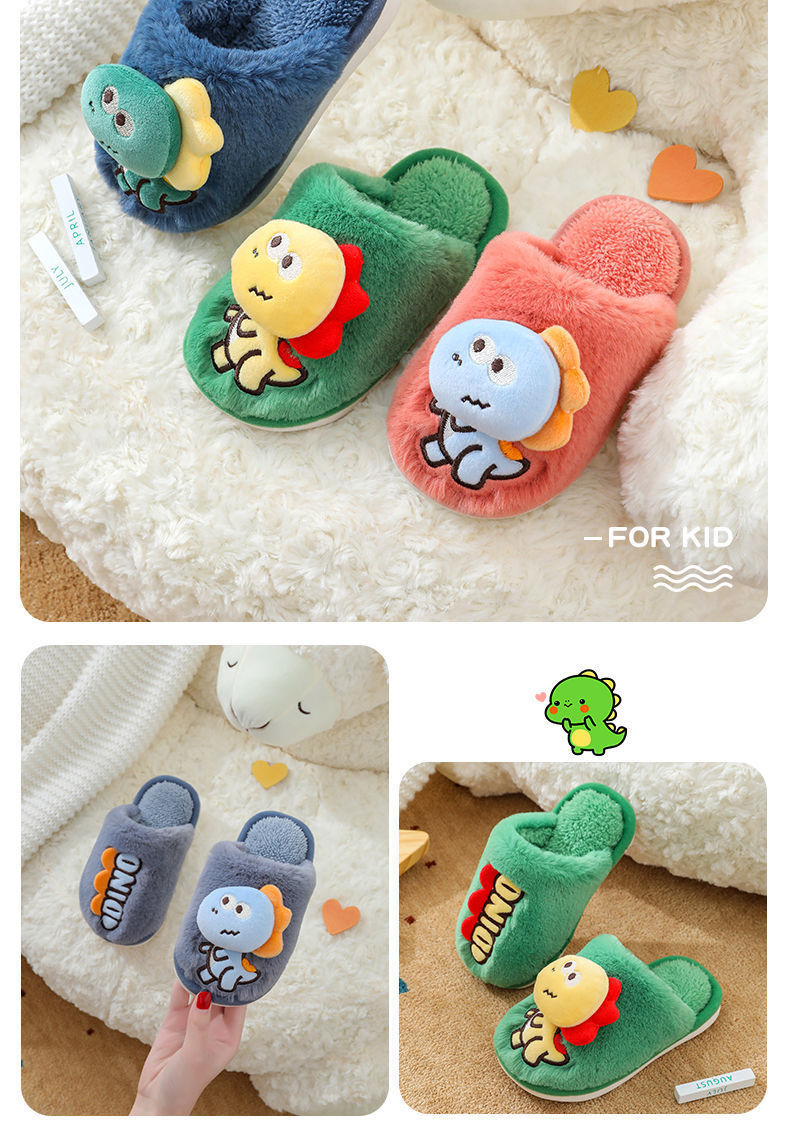 Zapatillas de piso de invierno para niños de dibujos animados de fondo suave casa lindo dinosaurio cálido peludo Grandes Medianas y pequeñas Zapatillas de algodón para bebés