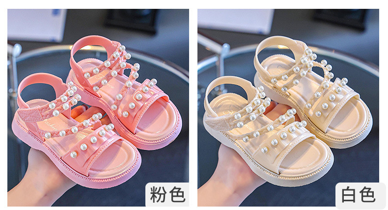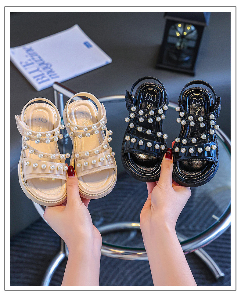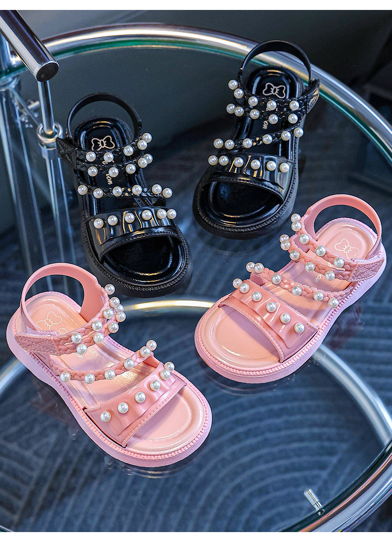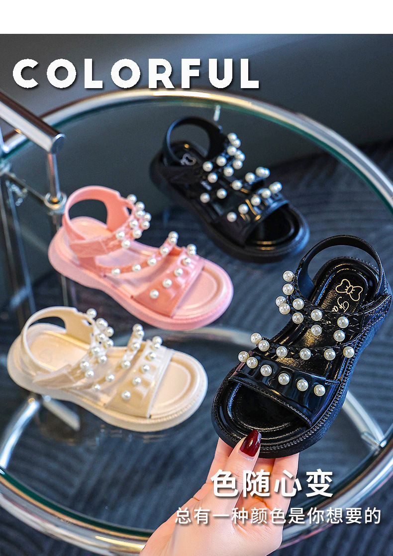 2024 Nuevas sandalias de las muchachas antideslizantes transpirables perla linda playa al aire libre Zapatos niños niñas princesa sandalias
